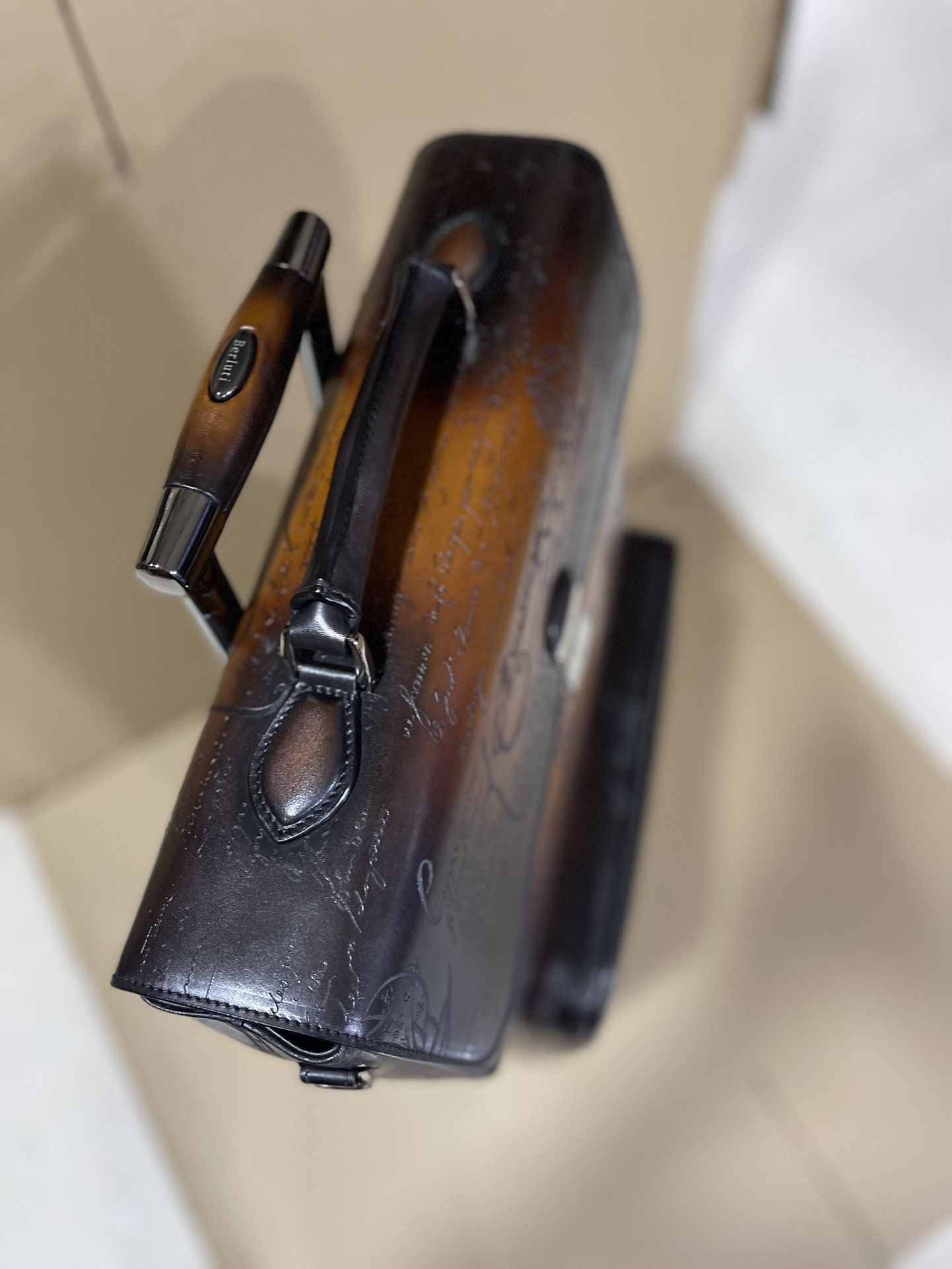 这款包包是AAAAA 1:1 质量 (非常棒). 使用了和原版一模一样的材料. 商标部分也保持了和Berluti一样. 图片拍摄是实物包包拍摄, 您所收到的实物保证和我们图片一模一样.