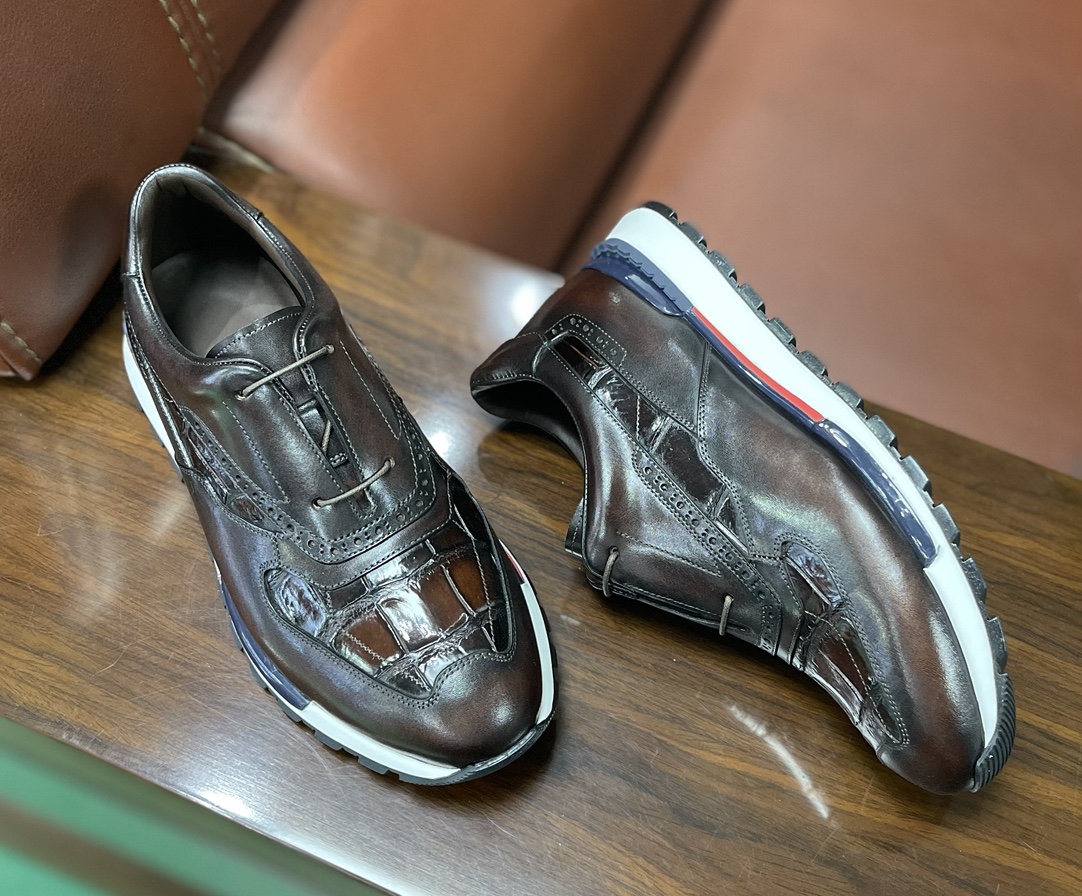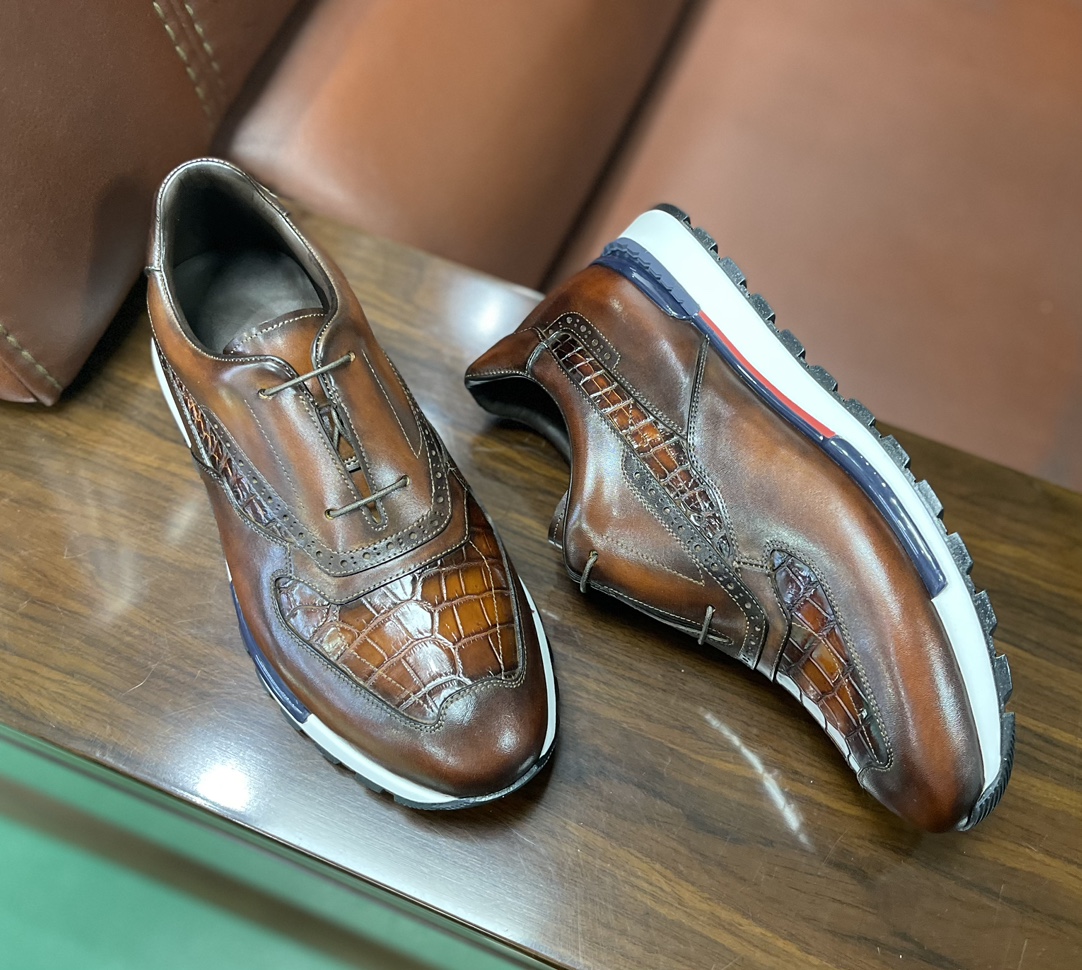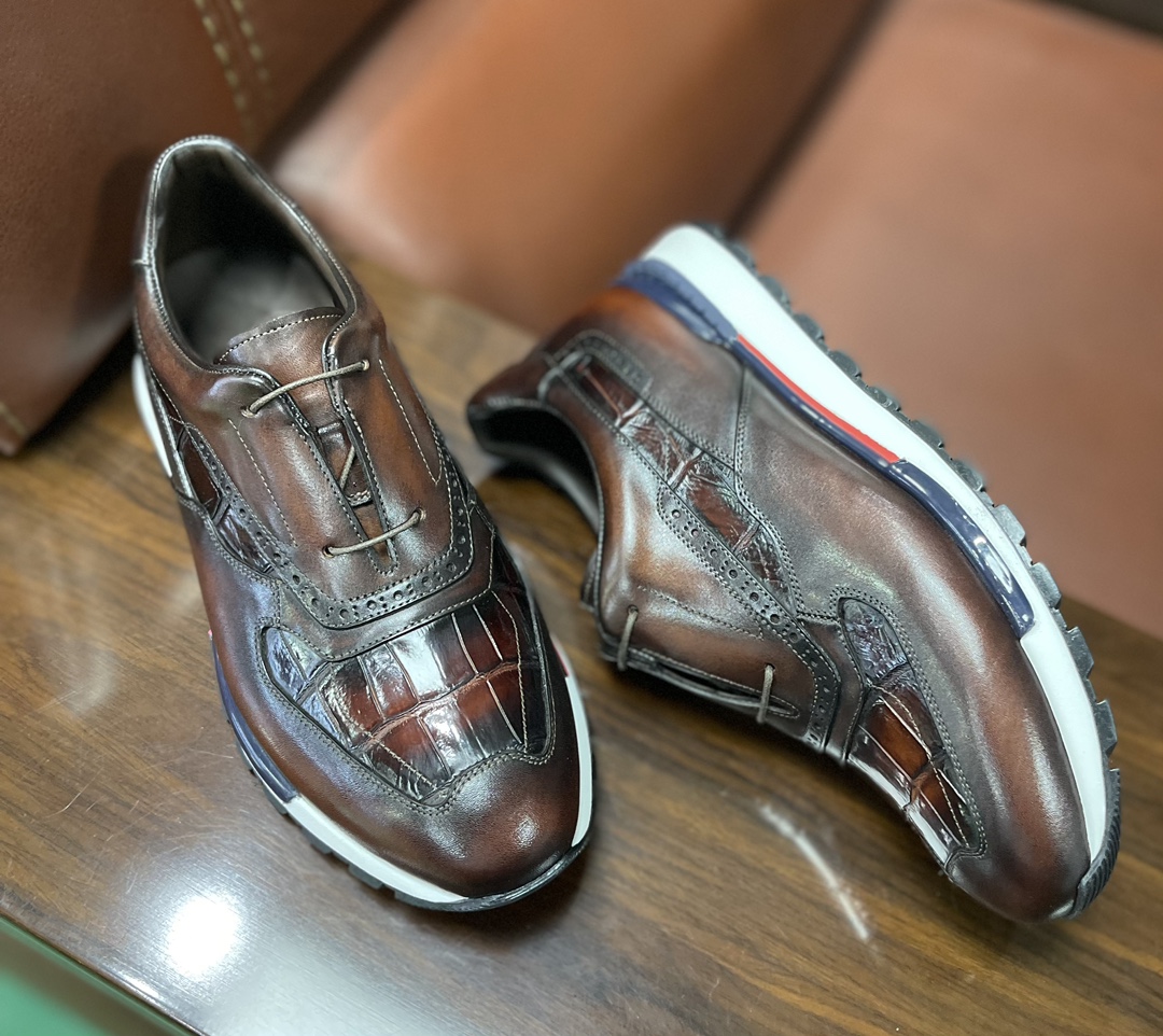 这款鞋子是AAAAA 1:1 质量 (非常棒). 使用了和原版一模一样的材料. 商标部分也保持了和Berluti一样. 图片拍摄是实物鞋子拍摄, 您所收到的实物保证和我们图片一模一样.