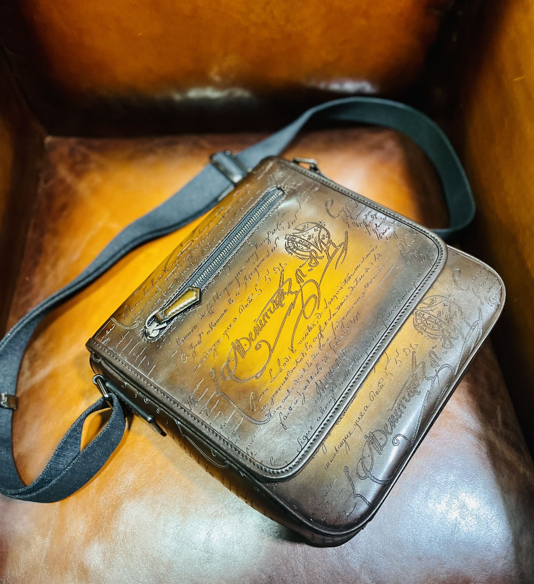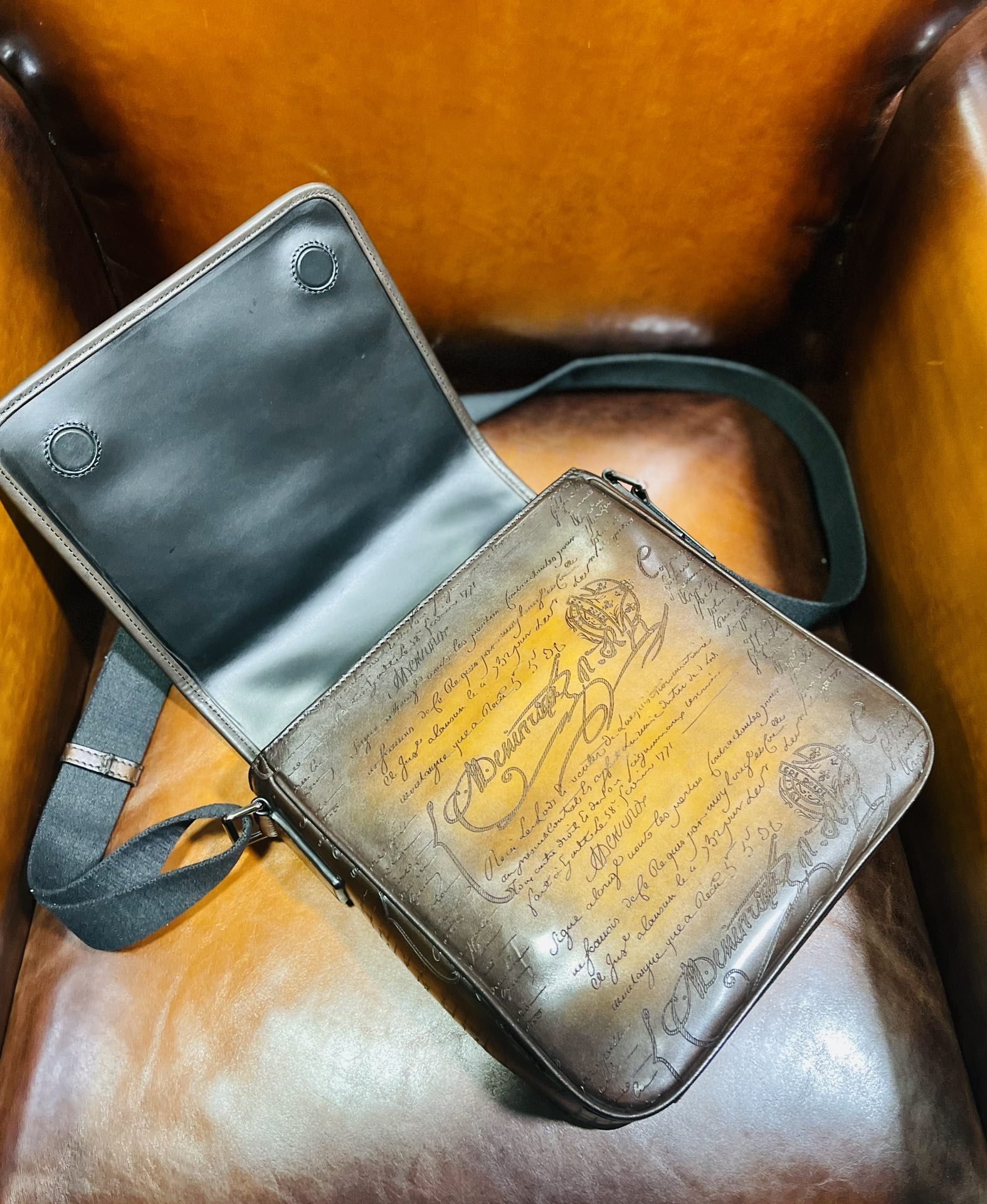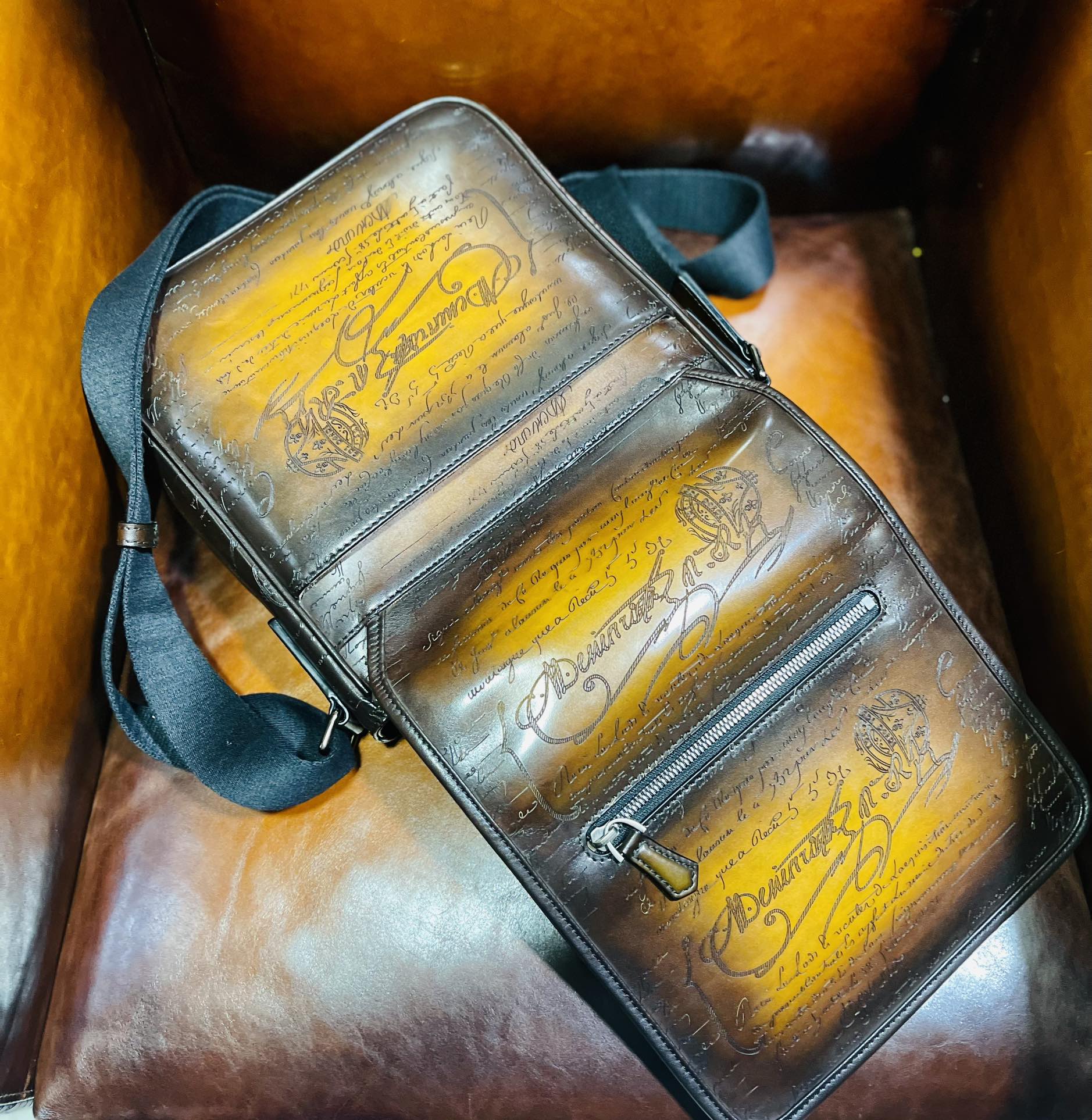 这款包包是AAAAA 1:1 质量 (非常棒). 使用了和原版一模一样的材料. 商标部分也保持了和Berluti一样. 图片拍摄是实物包包拍摄, 您所收到的实物保证和我们图片一模一样.