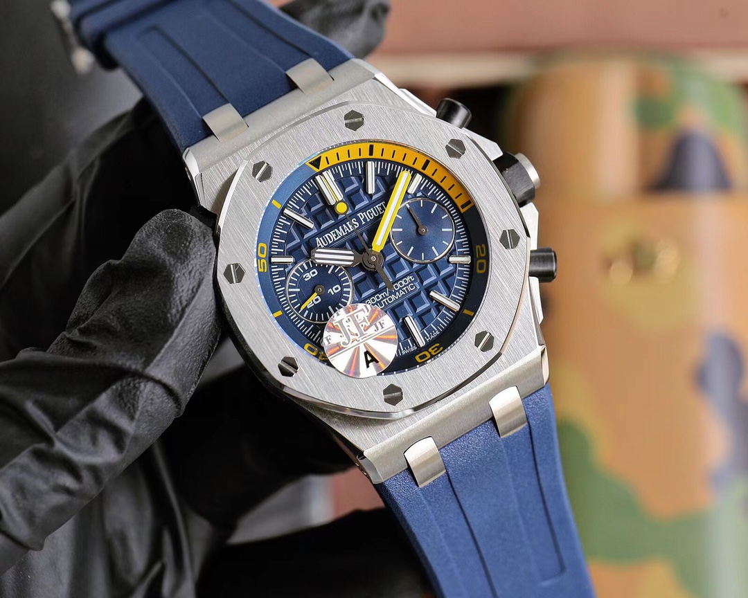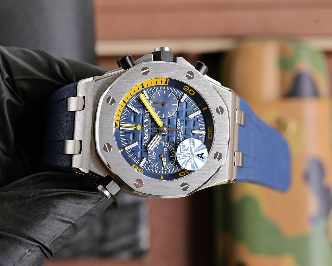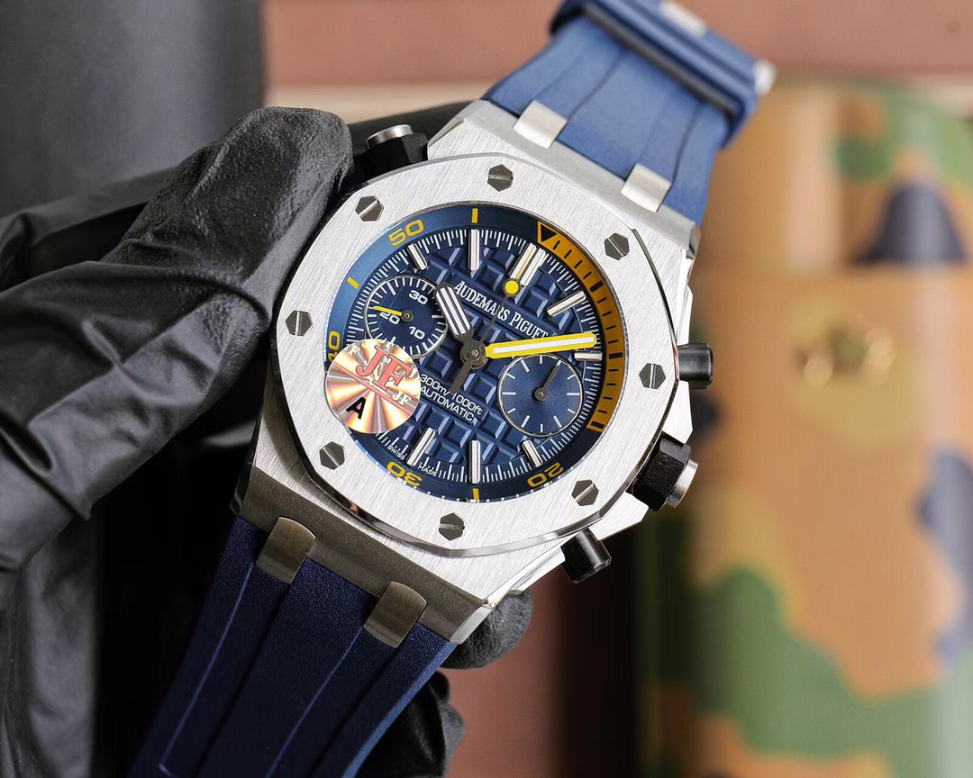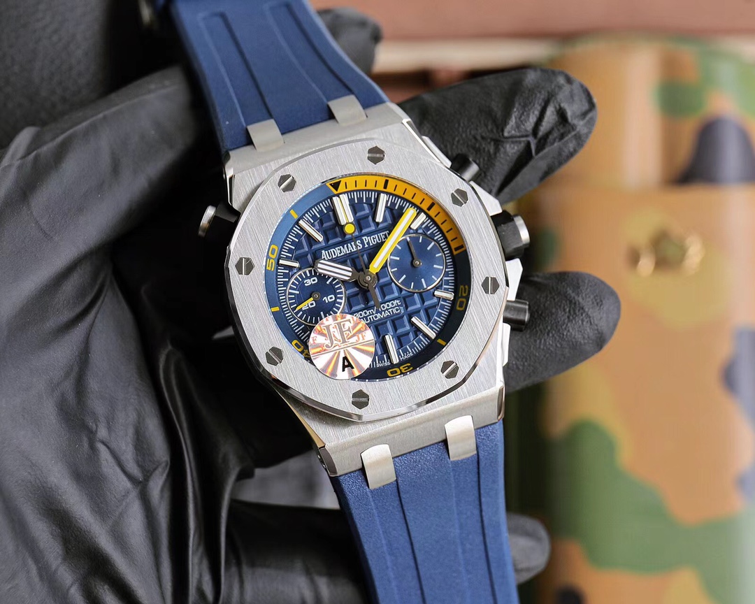 这款手表是AAAAA 1:1 质量 (非常棒). 使用了和原版一模一样的材料. 商标部分也保持了和爱彼/Audemars Piguet一样. 图片拍摄是实物手表拍摄, 您所收到的实物保证和我们图片一模一样.