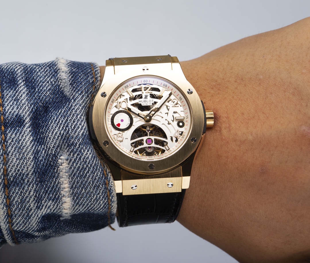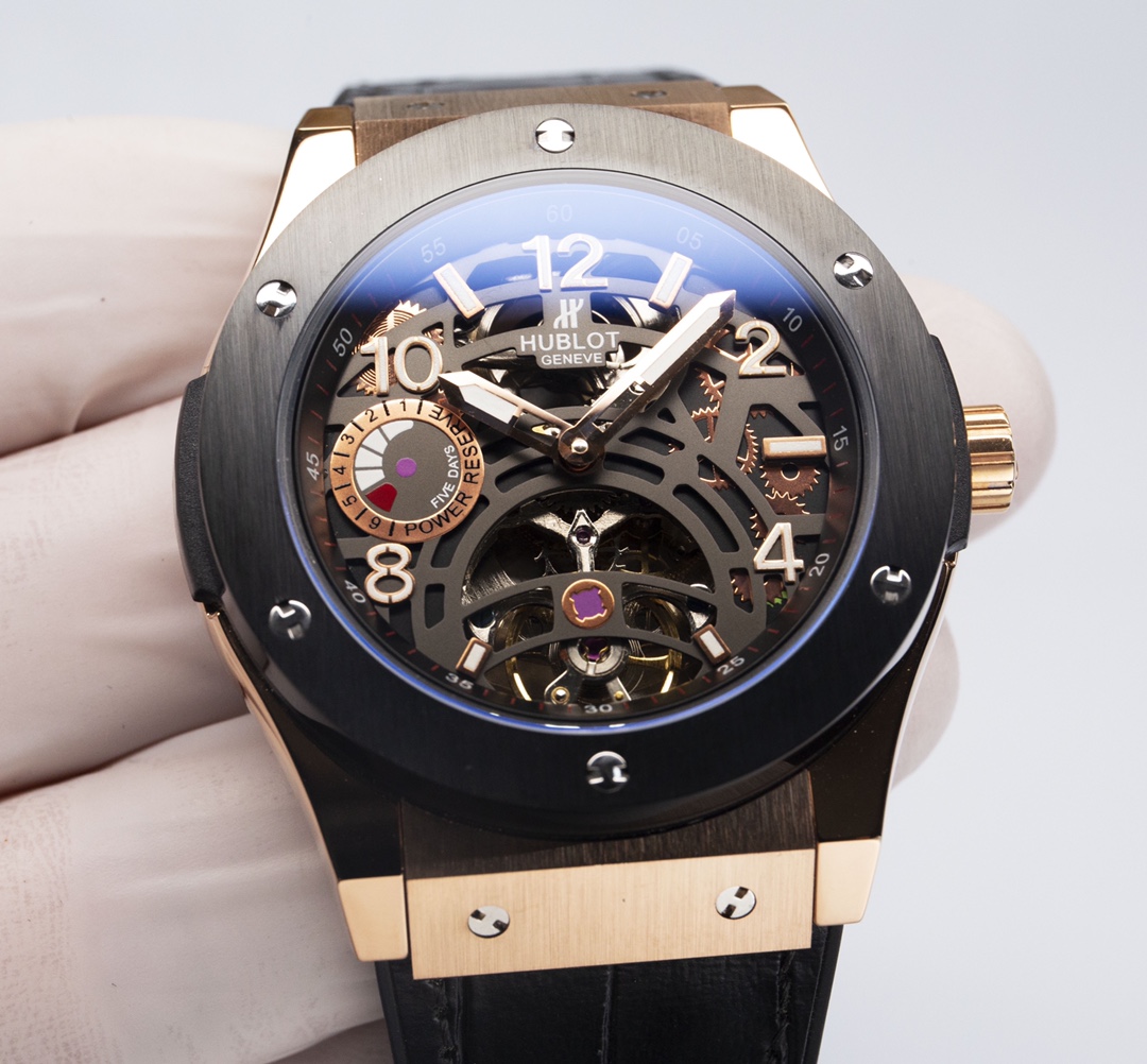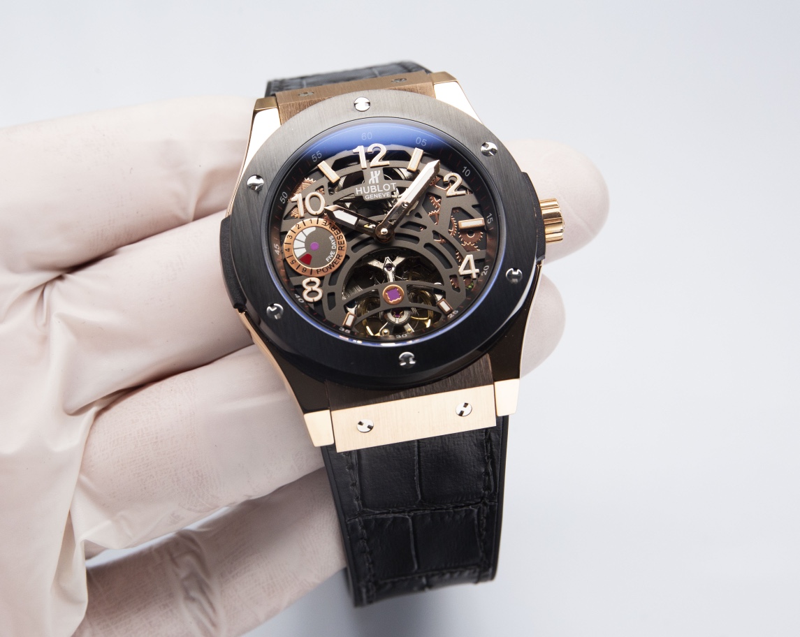 这款手表是AAAAA 1:1 质量 (非常棒). 使用了和原版一模一样的材料. 商标部分也保持了和Hublot一样. 图片拍摄是实物手表拍摄, 您所收到的实物保证和我们图片一模一样.