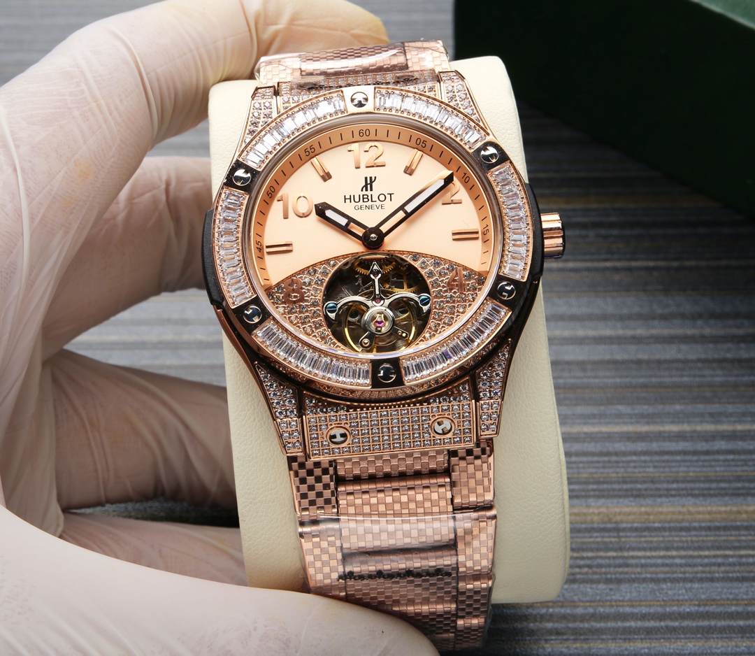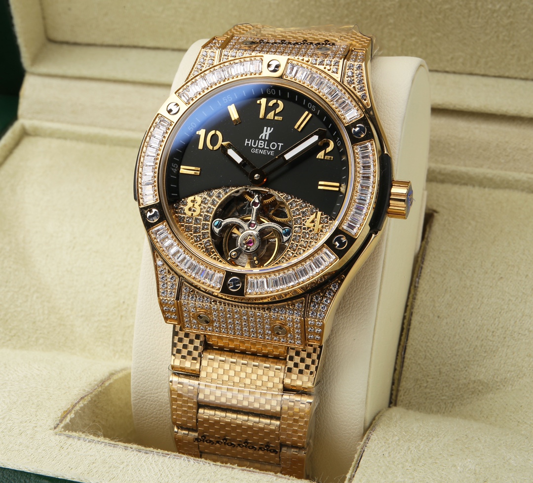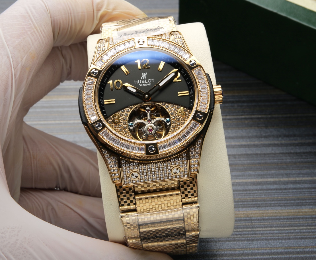 这款手表是AAAAA 1:1 质量 (非常棒). 使用了和原版一模一样的材料. 商标部分也保持了和Hublot一样. 图片拍摄是实物手表拍摄, 您所收到的实物保证和我们图片一模一样.