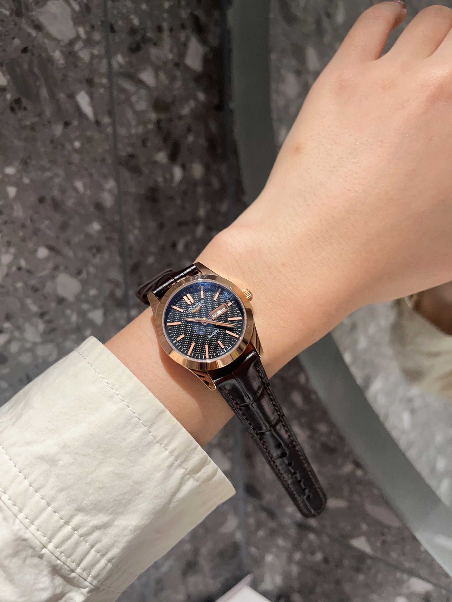 这款手表是AAAAA 1:1 质量 (非常棒). 使用了和原版一模一样的材料. 商标部分也保持了和浪琴/Longines一样. 图片拍摄是实物手表拍摄, 您所收到的实物保证和我们图片一模一样.