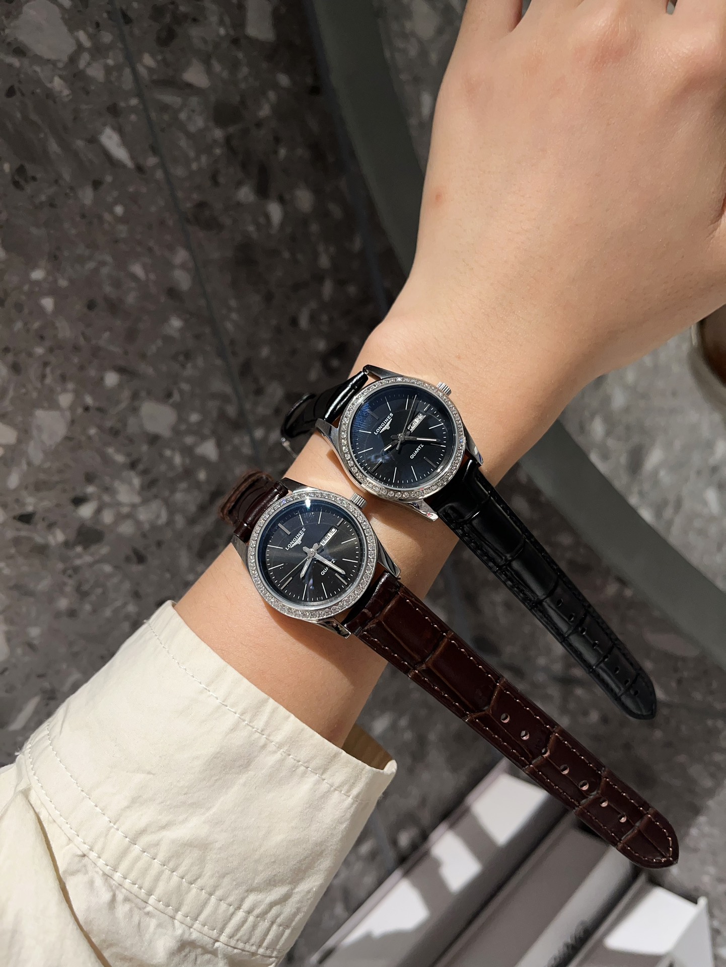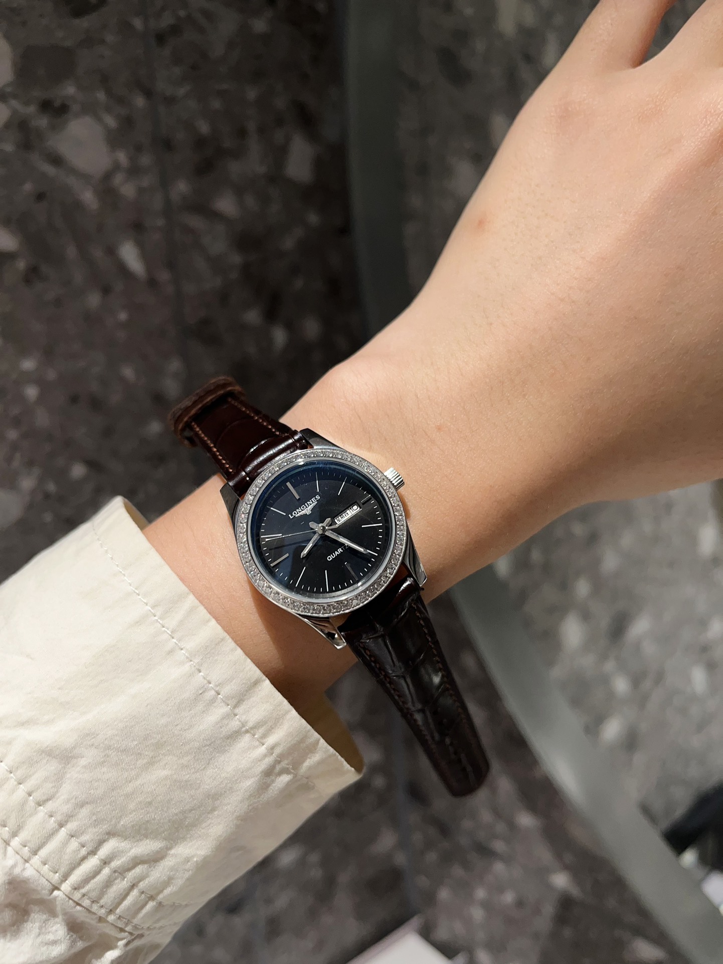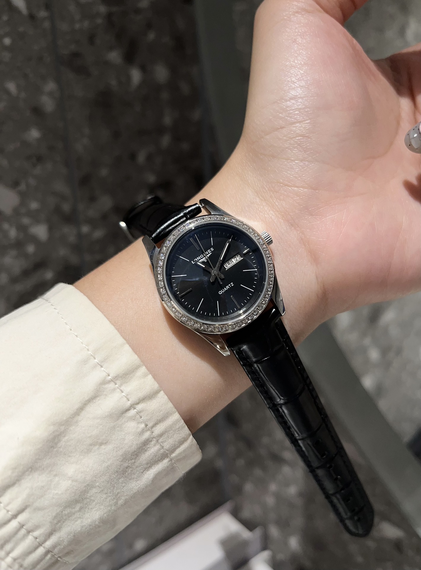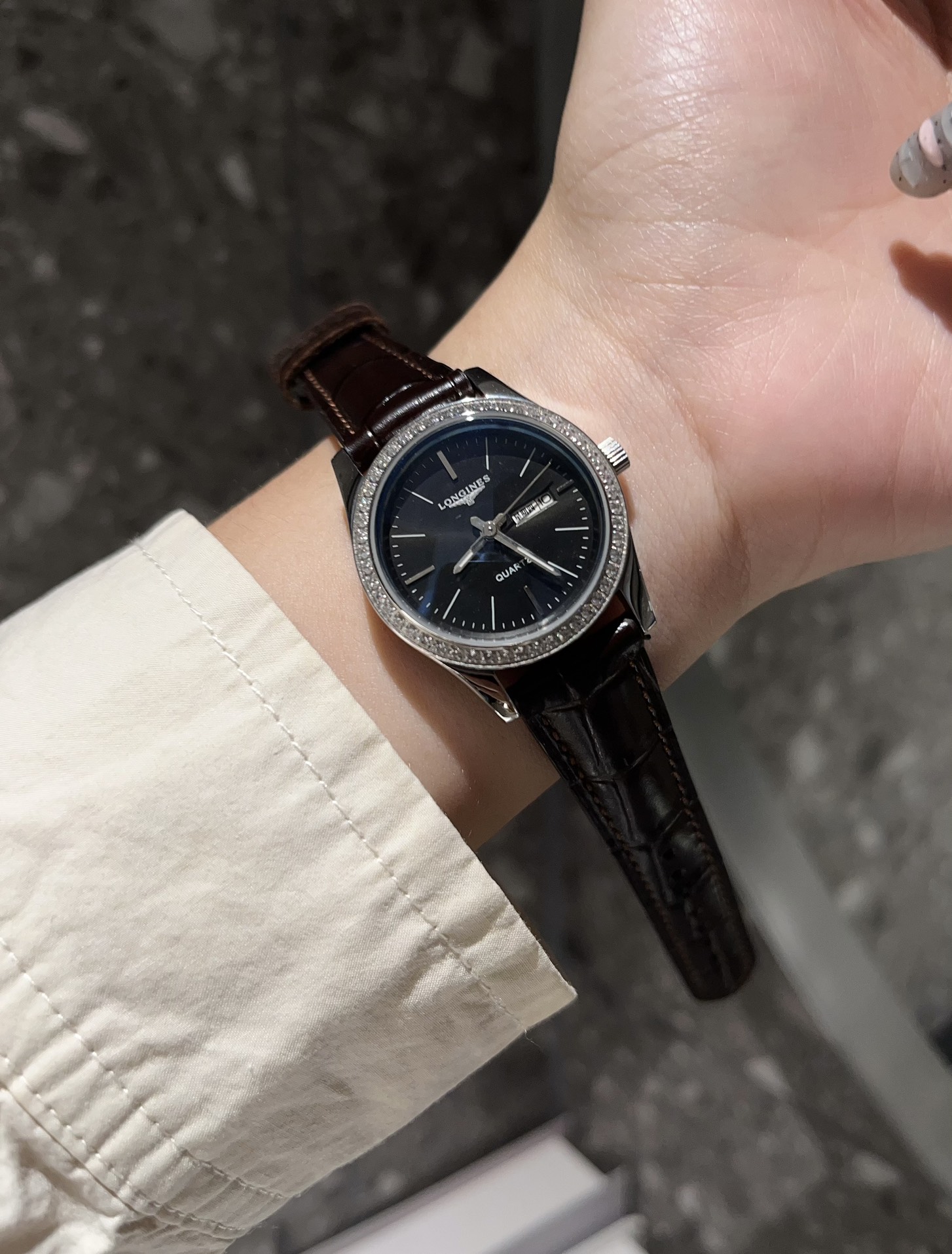 这款手表是AAAAA 1:1 质量 (非常棒). 使用了和原版一模一样的材料. 商标部分也保持了和浪琴/Longines一样. 图片拍摄是实物手表拍摄, 您所收到的实物保证和我们图片一模一样.