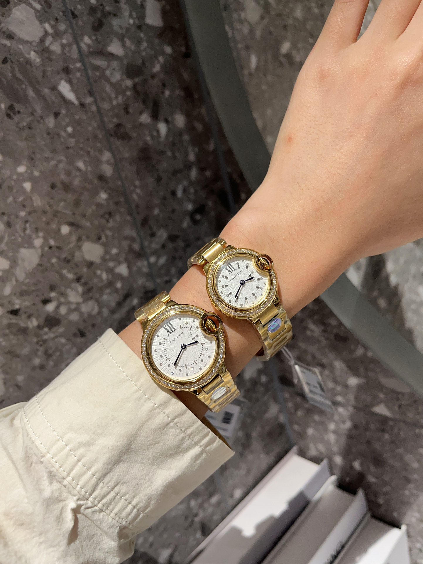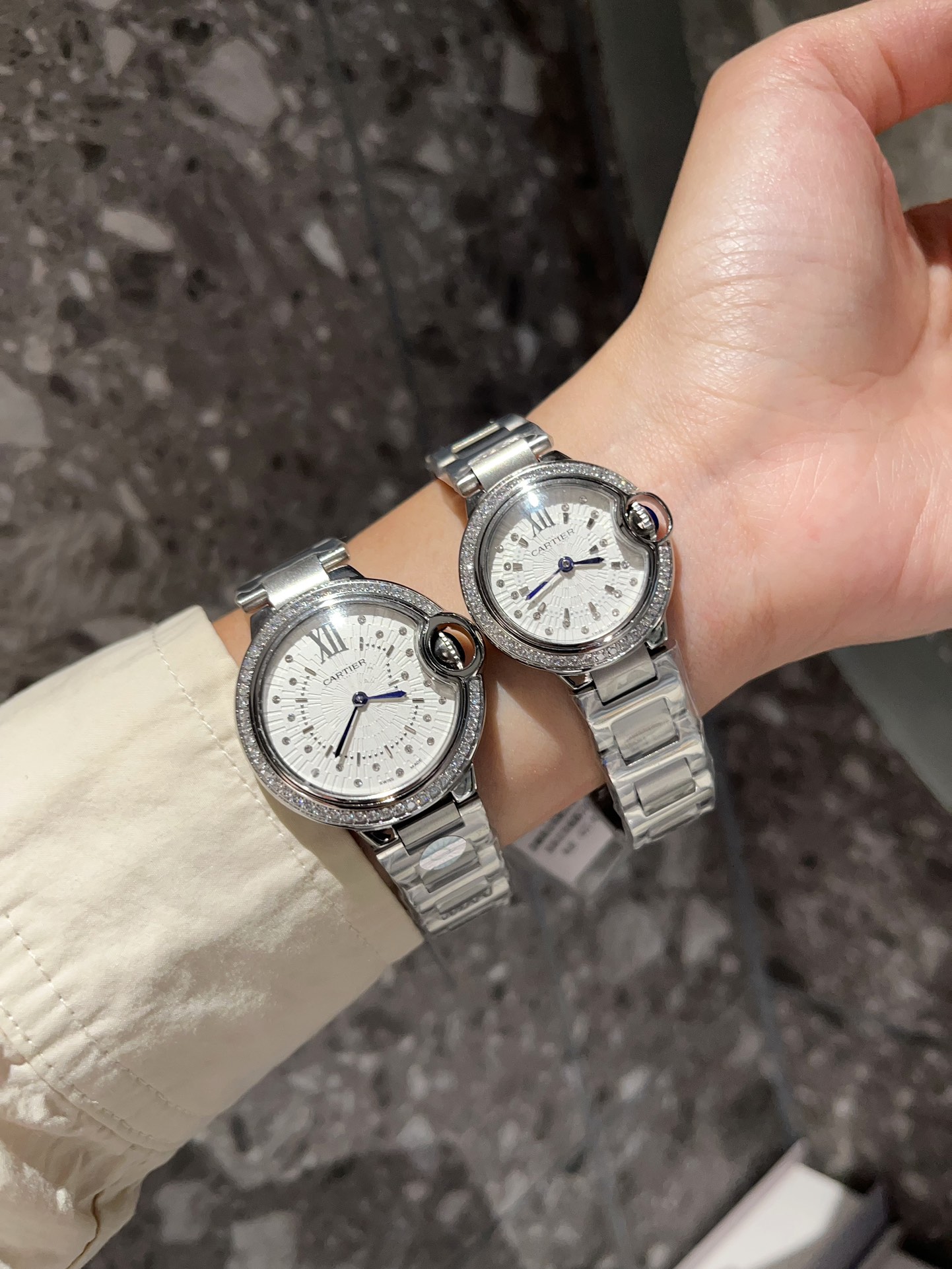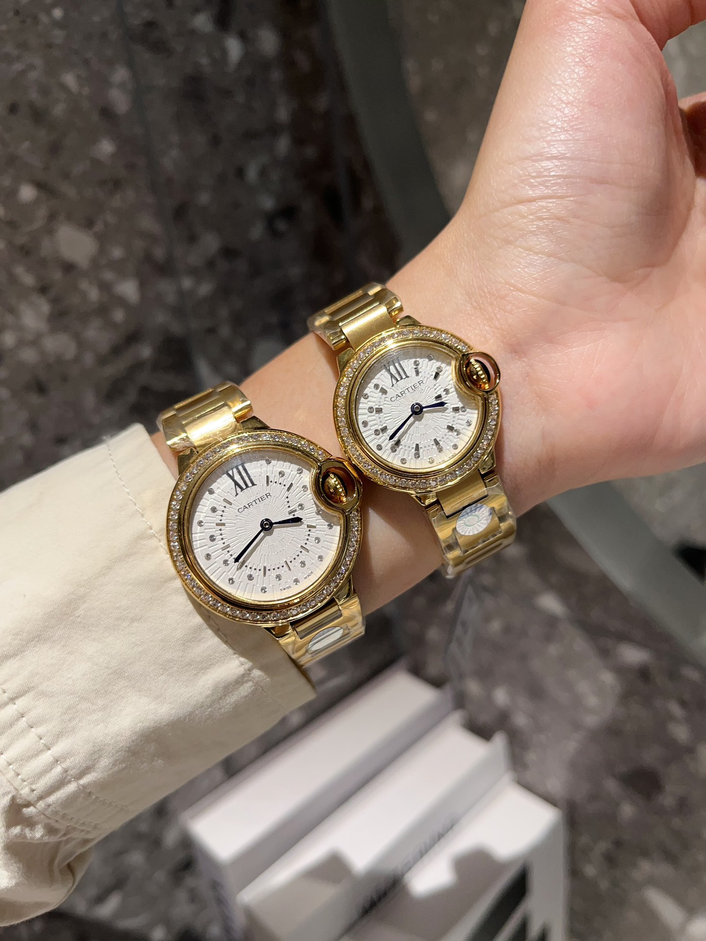 这款手表是AAAAA 1:1 质量 (非常棒). 使用了和原版一模一样的材料. 商标部分也保持了和卡地亚/Cartier一样. 图片拍摄是实物手表拍摄, 您所收到的实物保证和我们图片一模一样.