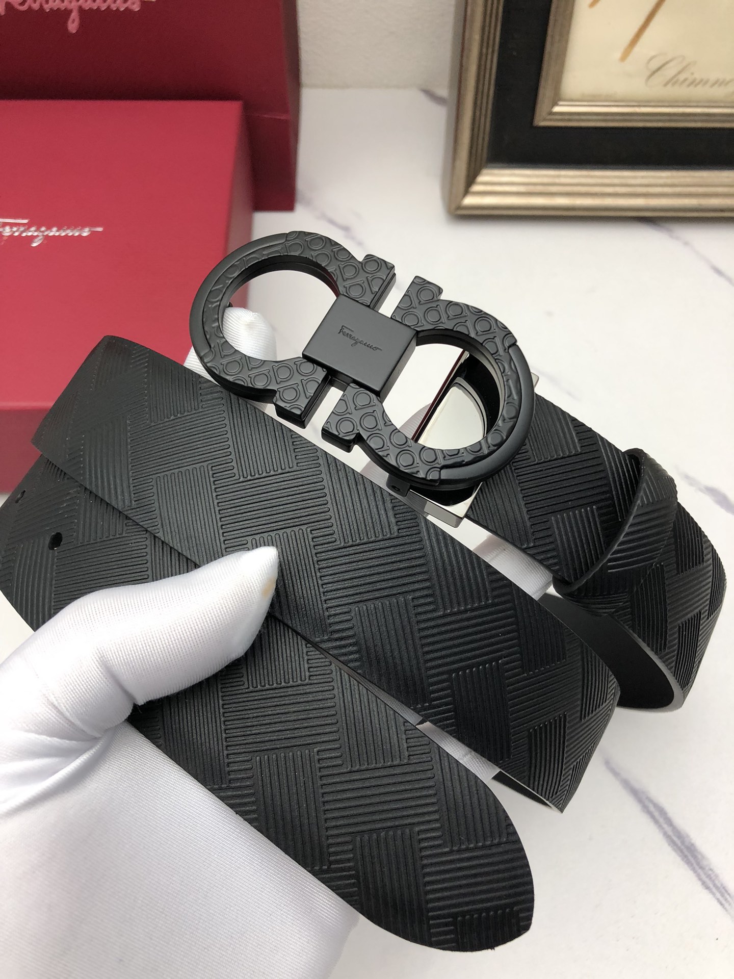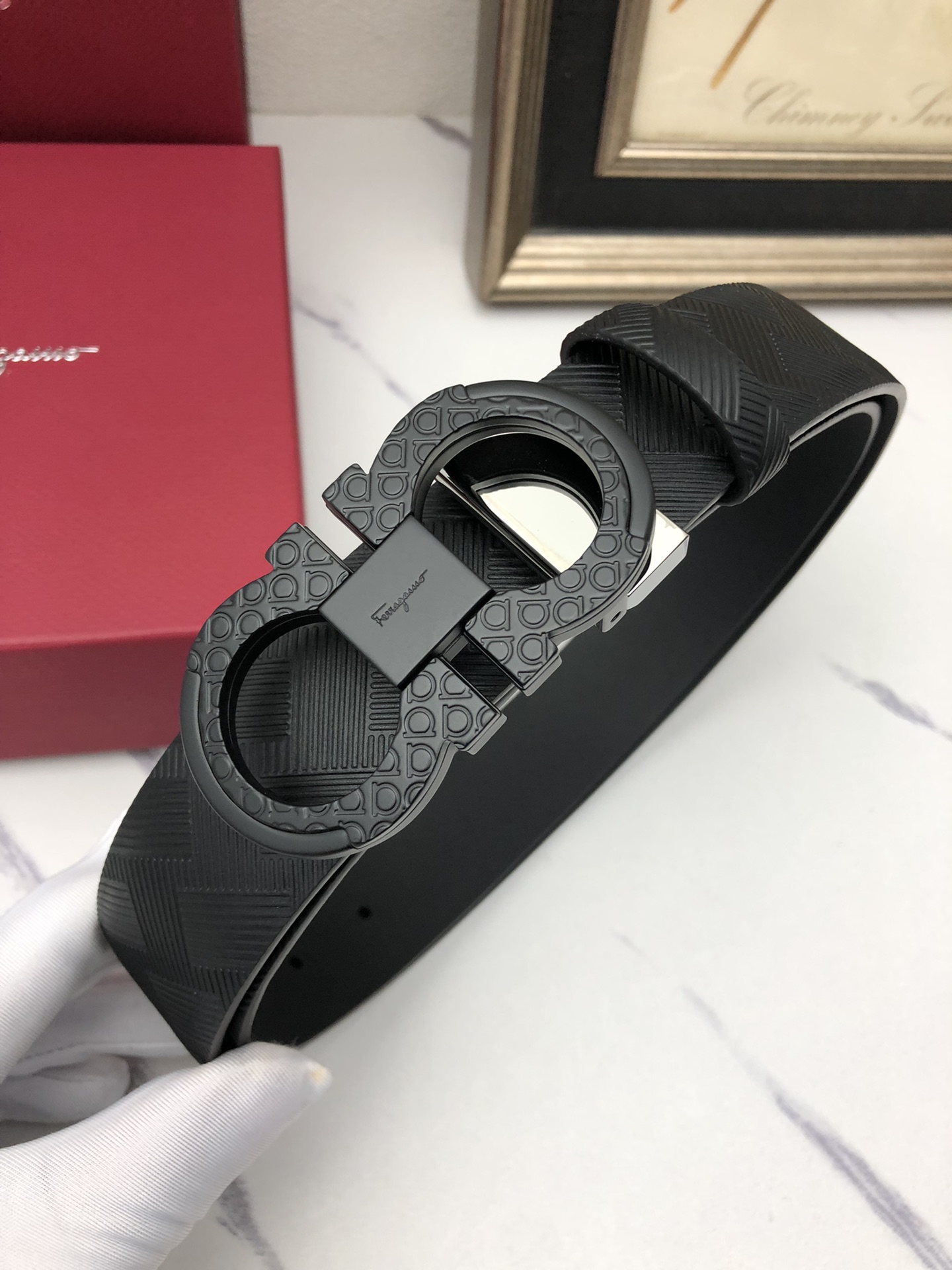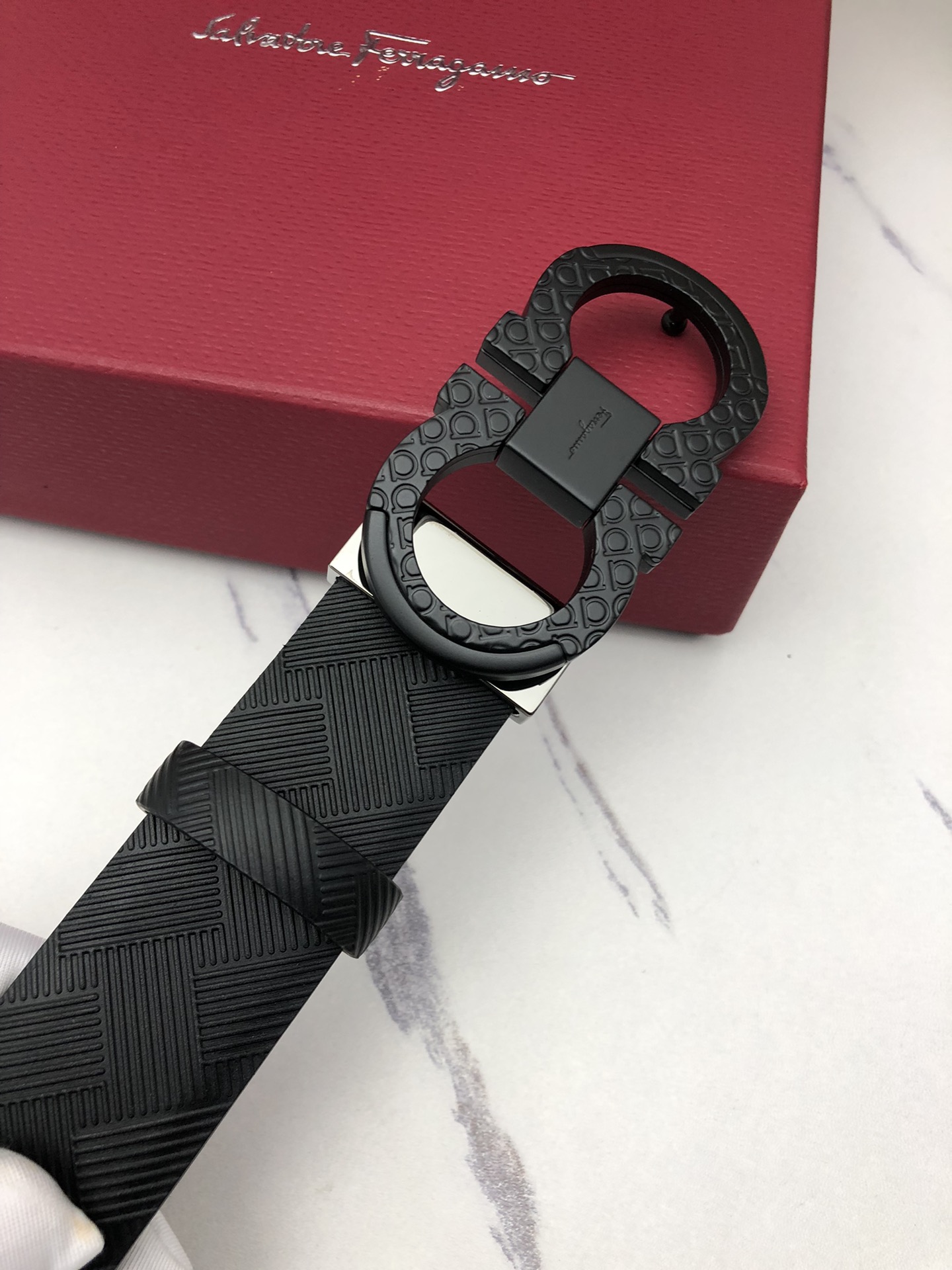 这款皮带是AAAAA 1:1 质量 (非常棒). 使用了和原版一模一样的材料. 商标部分也保持了和菲拉格慕/Salvatore Ferragamo一样. 图片拍摄是实物皮带拍摄, 您所收到的实物保证和我们图片一模一样.