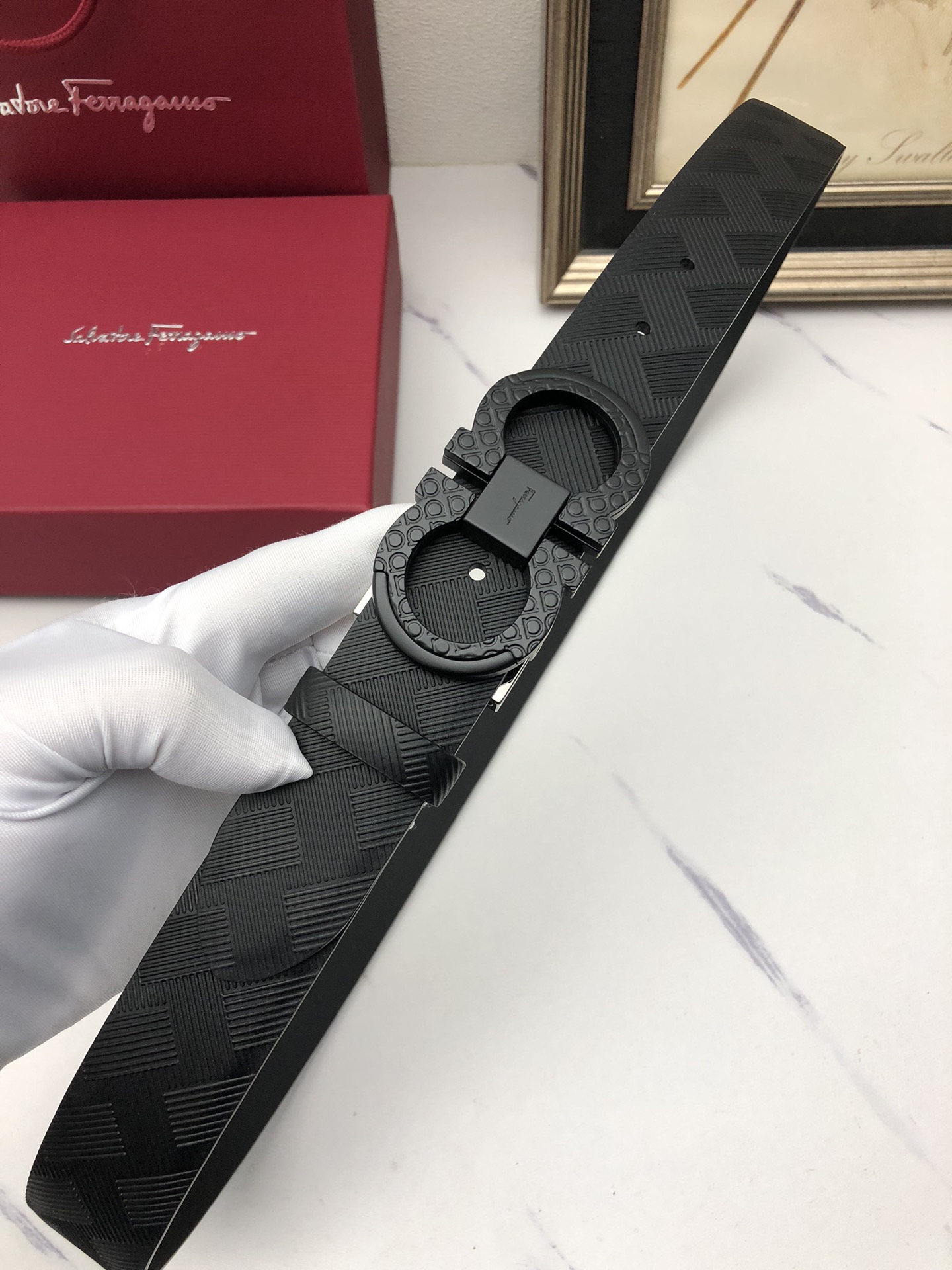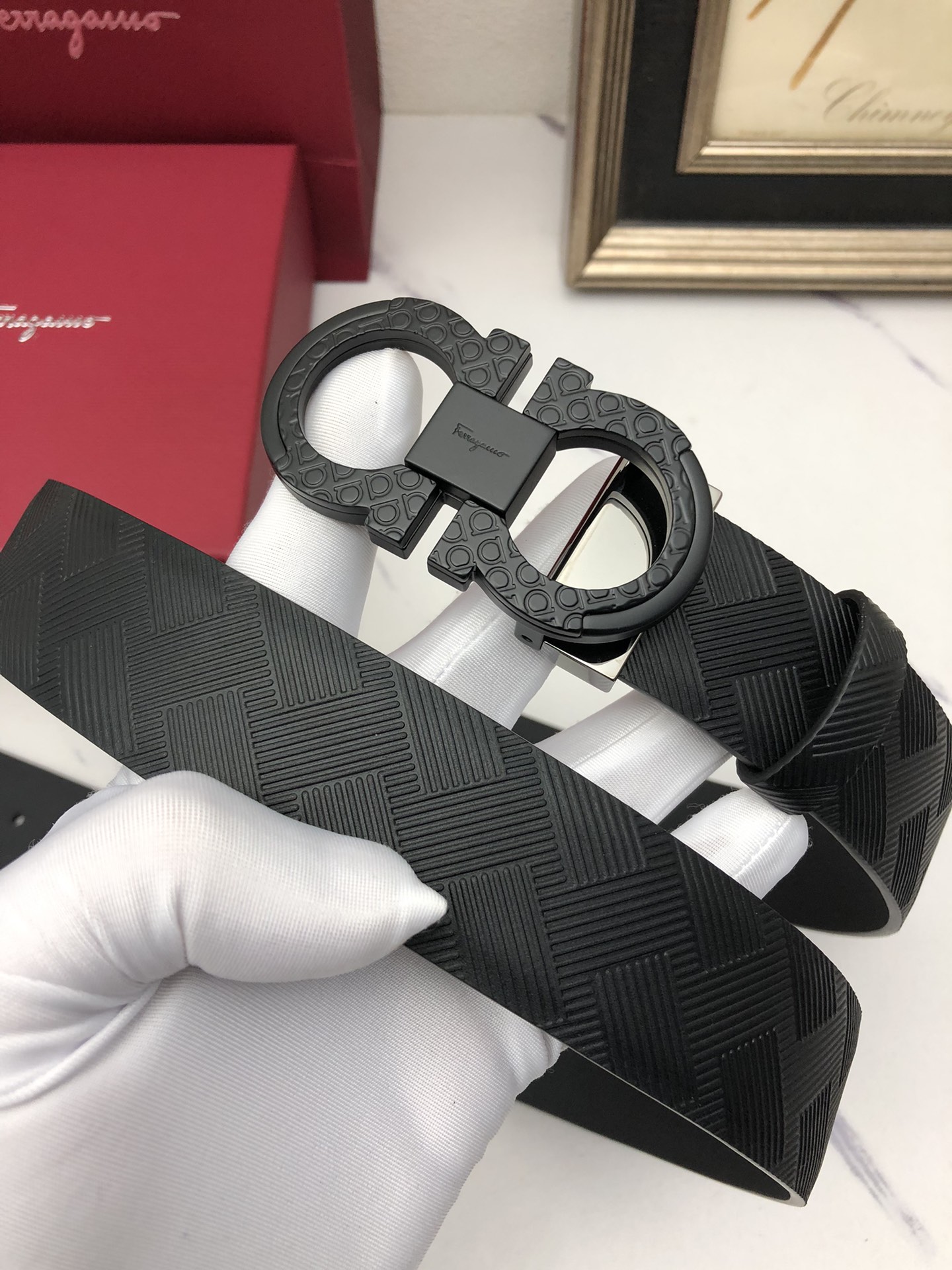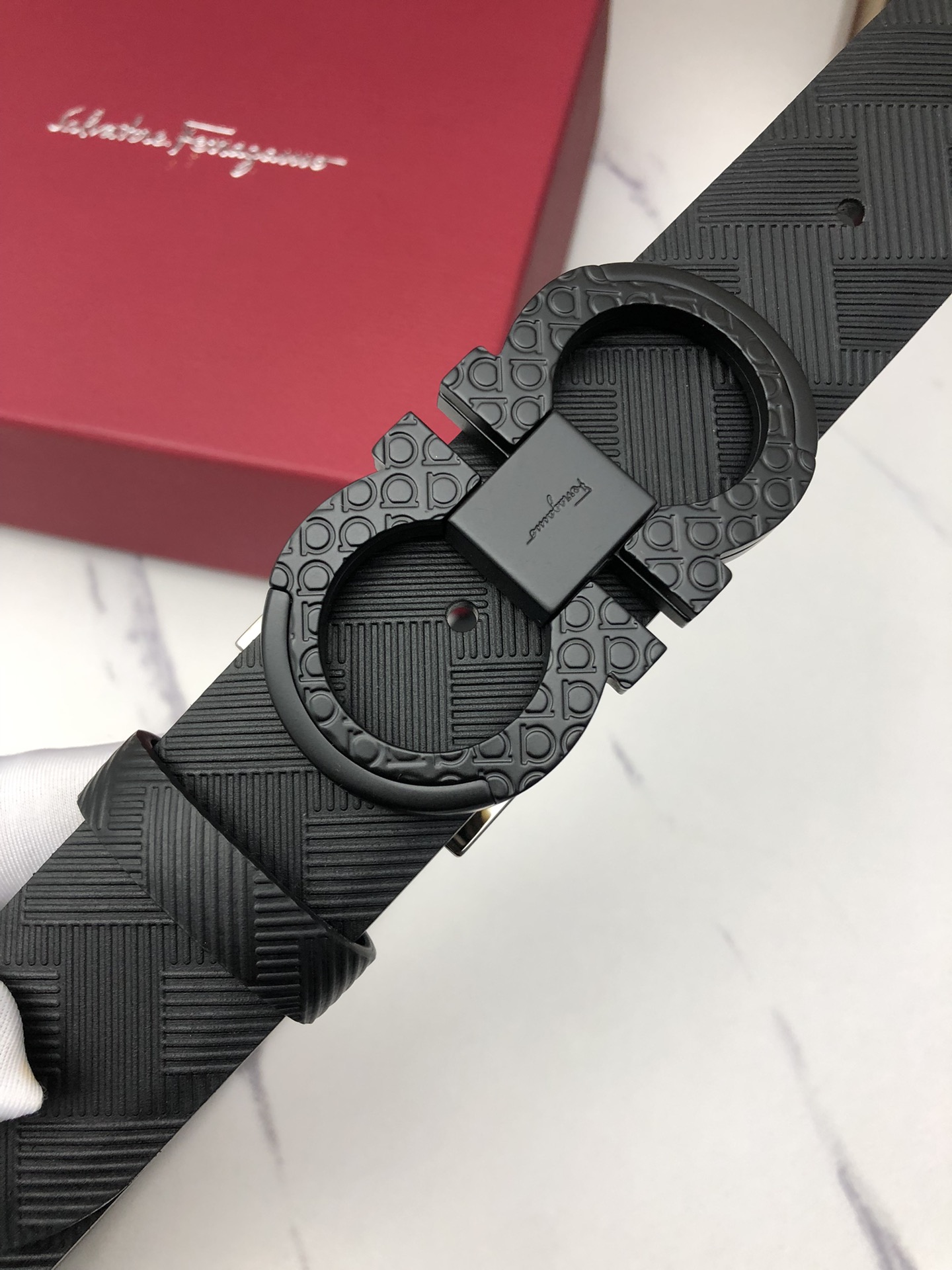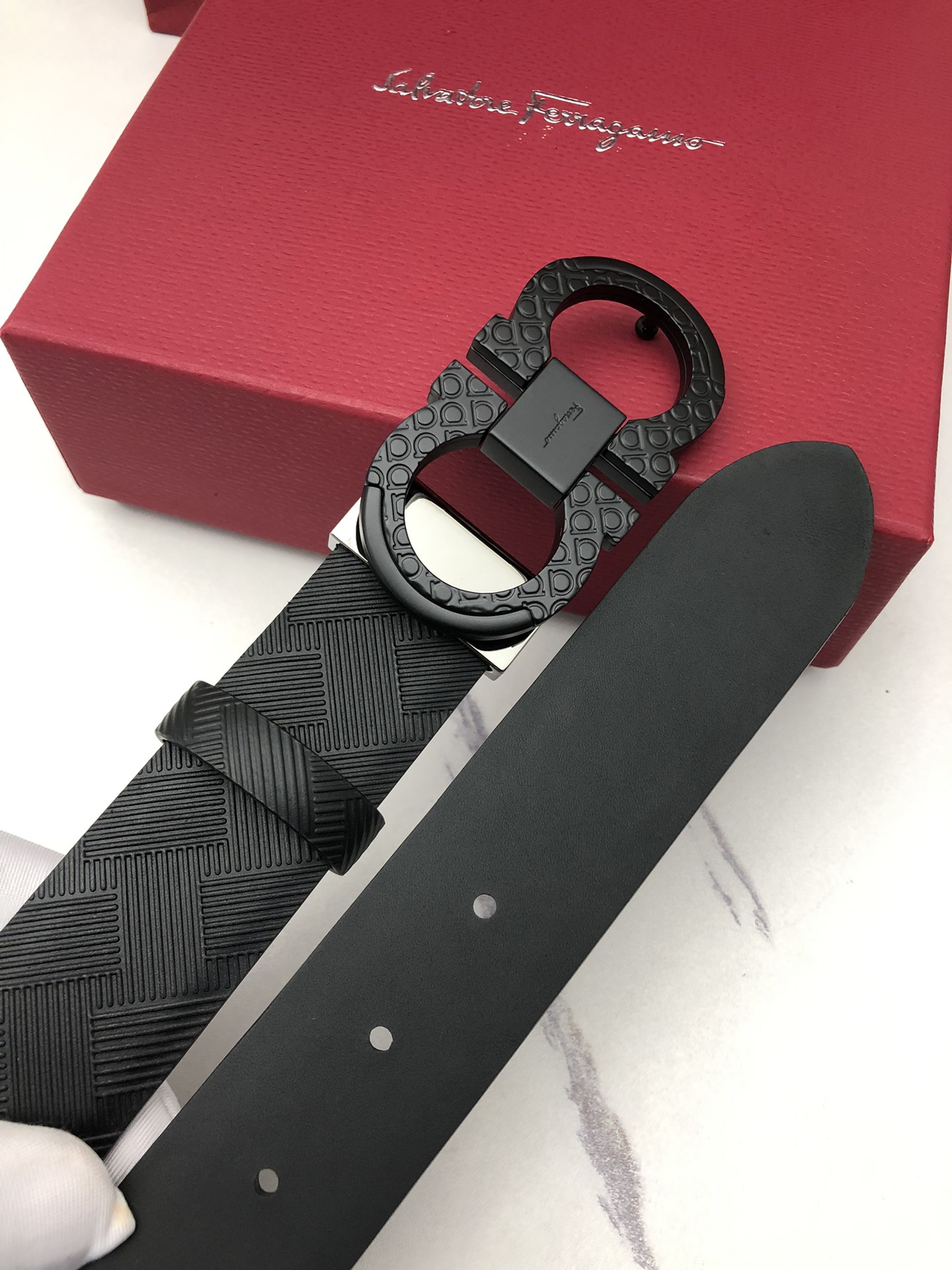 这款皮带是AAAAA 1:1 质量 (非常棒). 使用了和原版一模一样的材料. 商标部分也保持了和菲拉格慕/Salvatore Ferragamo一样. 图片拍摄是实物皮带拍摄, 您所收到的实物保证和我们图片一模一样.