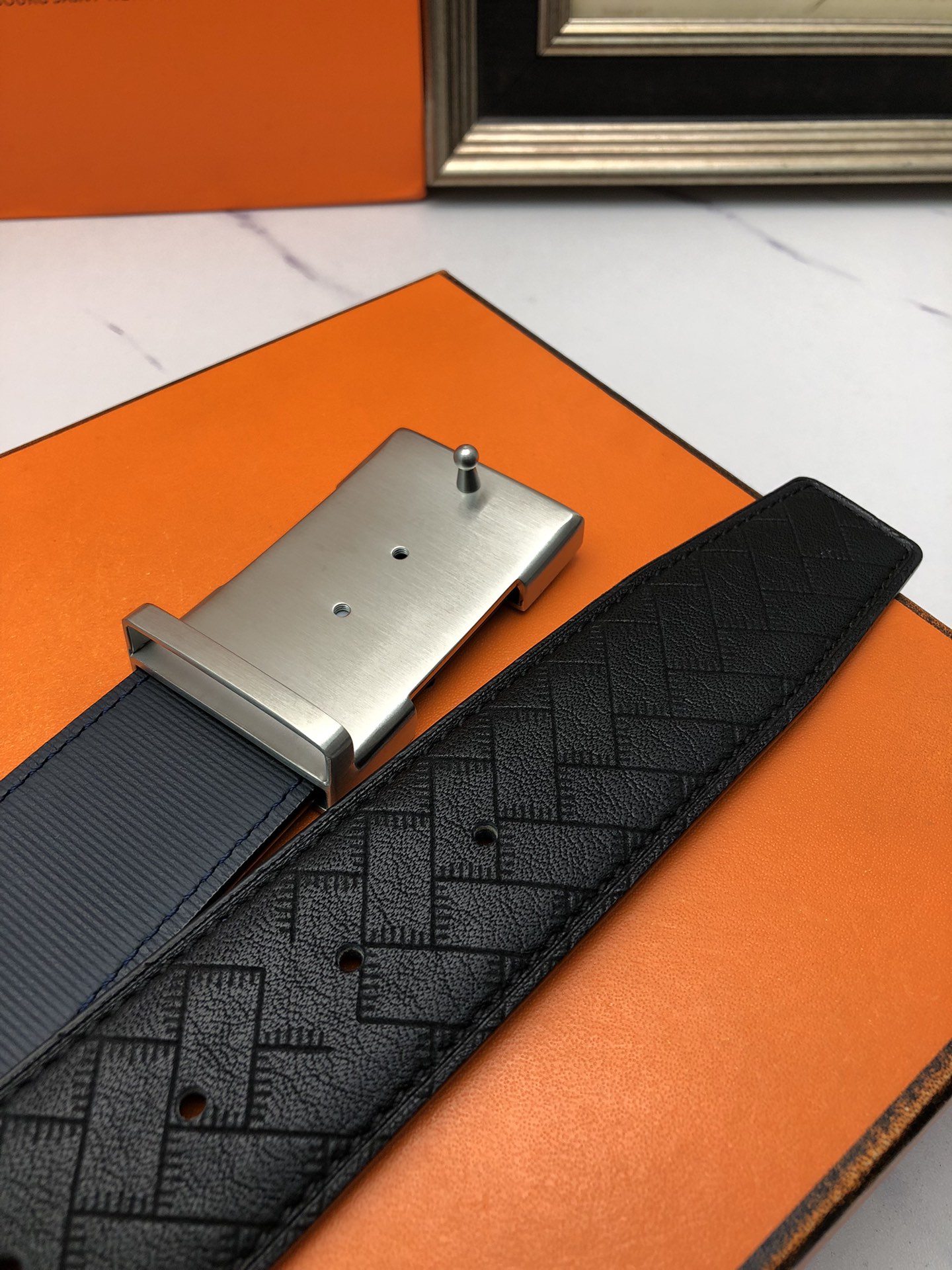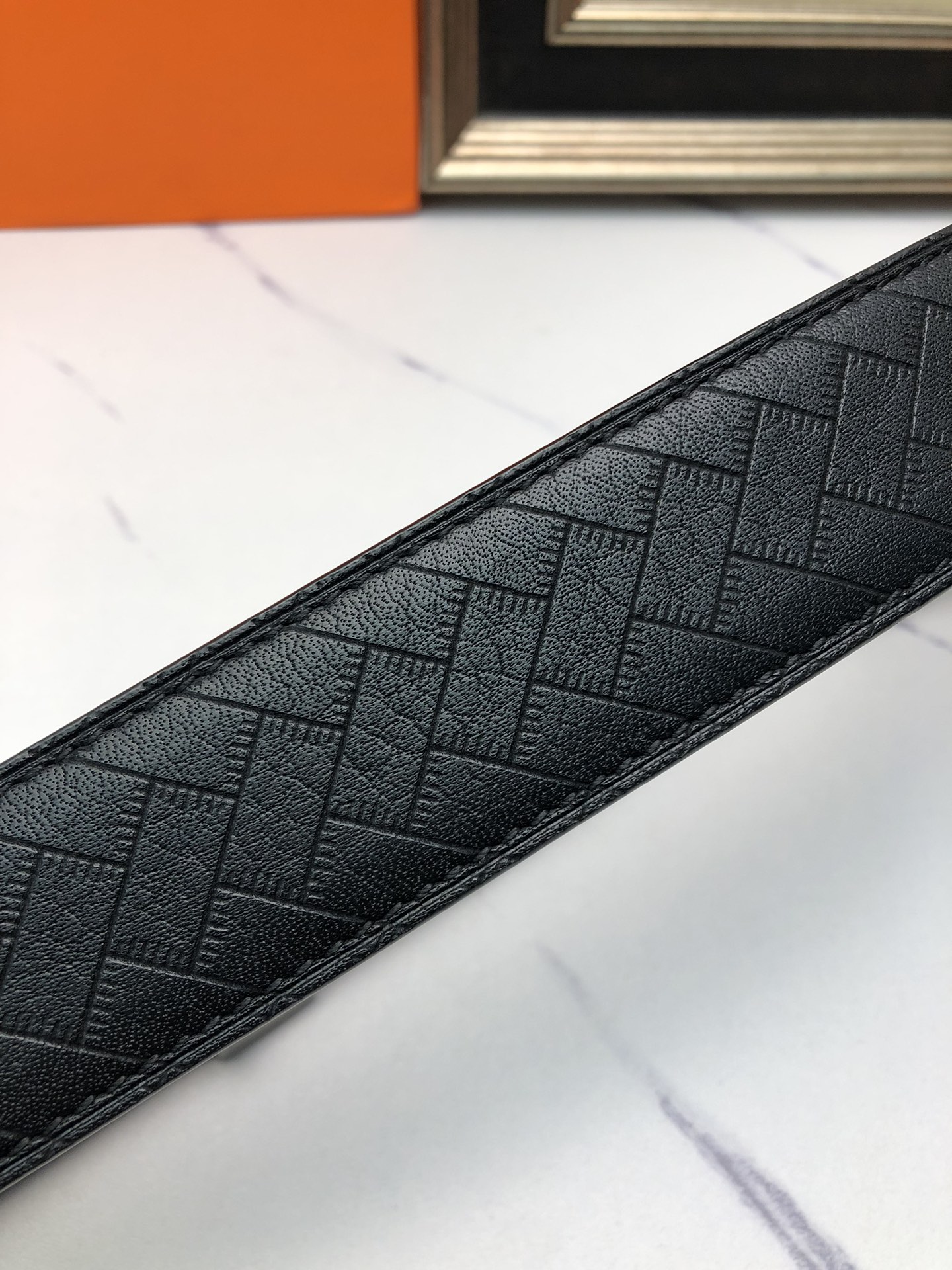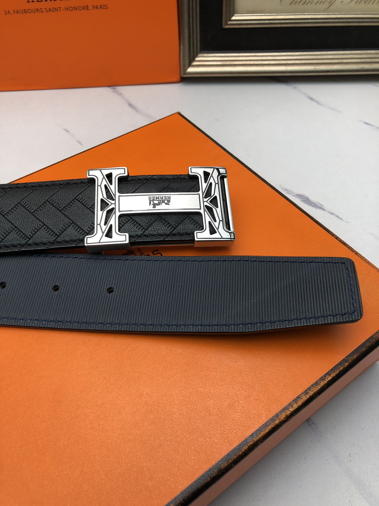 这款皮带是AAAAA 1:1 质量 (非常棒). 使用了和原版一模一样的材料. 商标部分也保持了和爱马仕/Hermes一样. 图片拍摄是实物皮带拍摄, 您所收到的实物保证和我们图片一模一样.