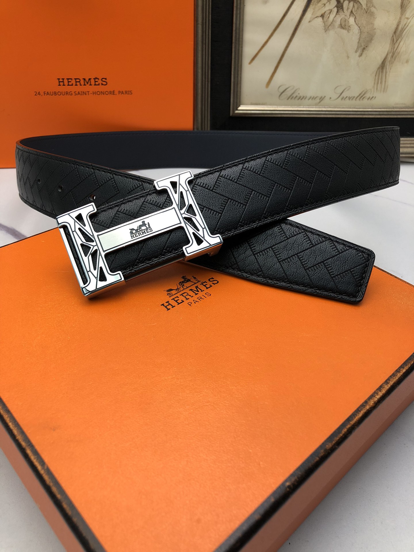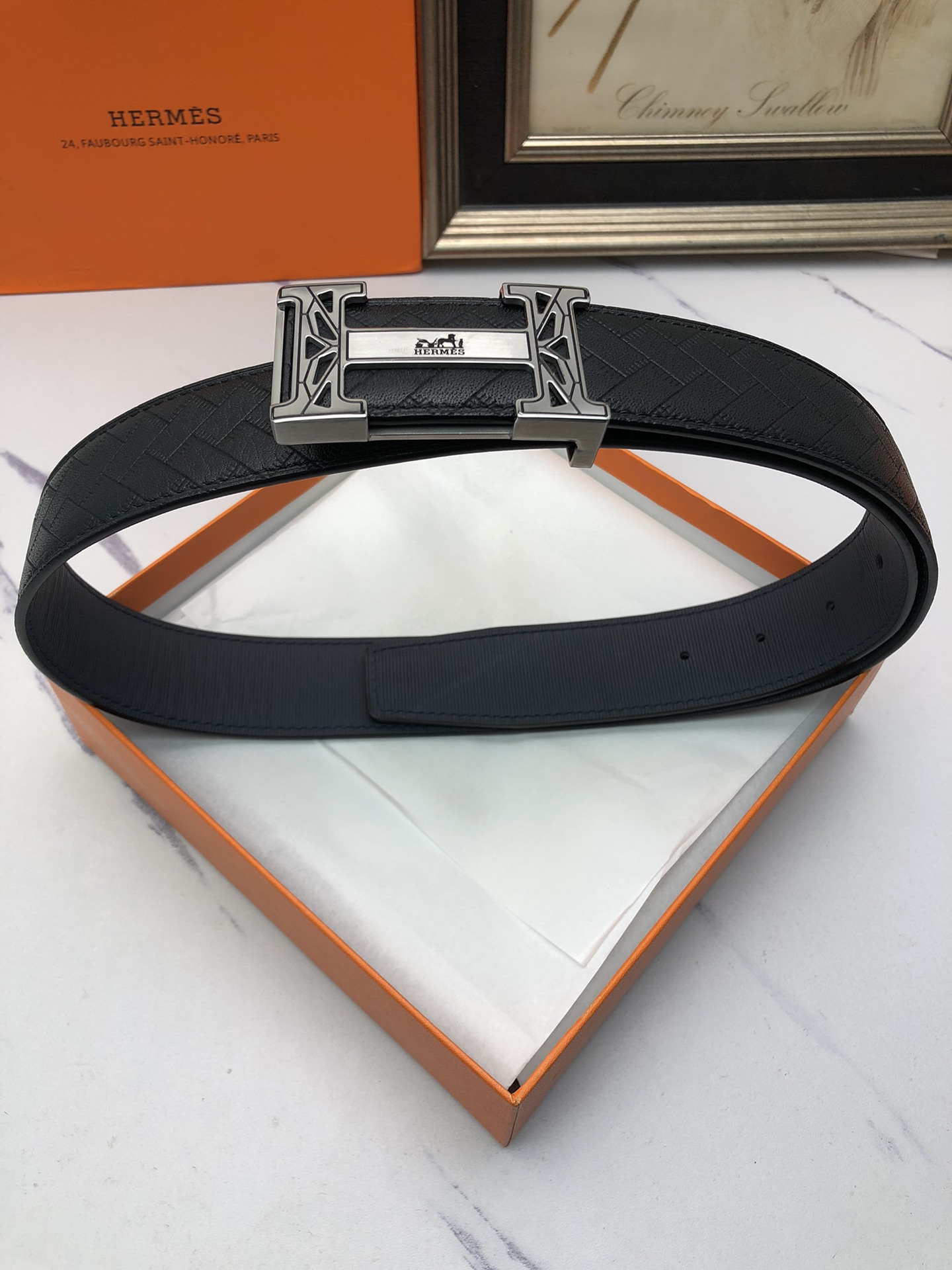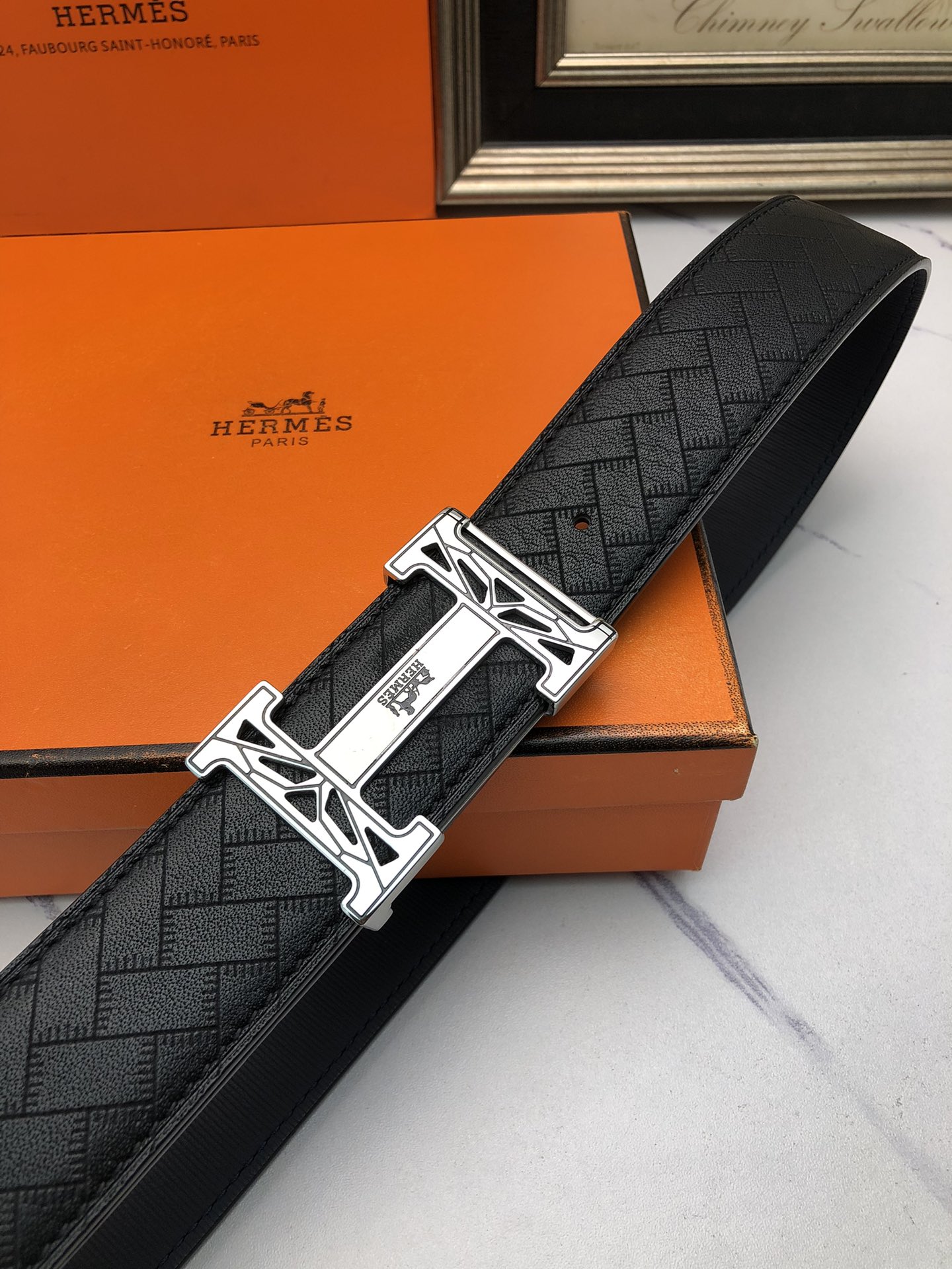 这款皮带是AAAAA 1:1 质量 (非常棒). 使用了和原版一模一样的材料. 商标部分也保持了和爱马仕/Hermes一样. 图片拍摄是实物皮带拍摄, 您所收到的实物保证和我们图片一模一样.