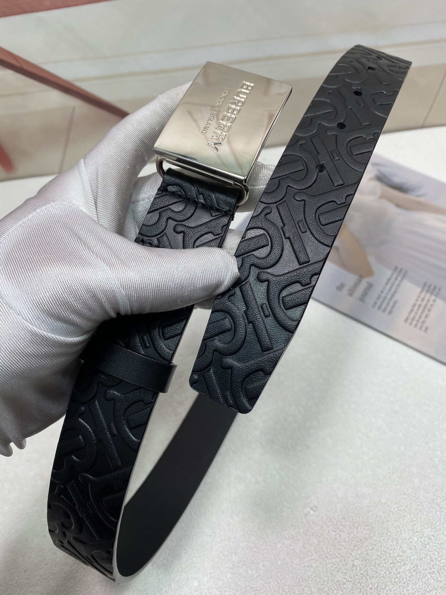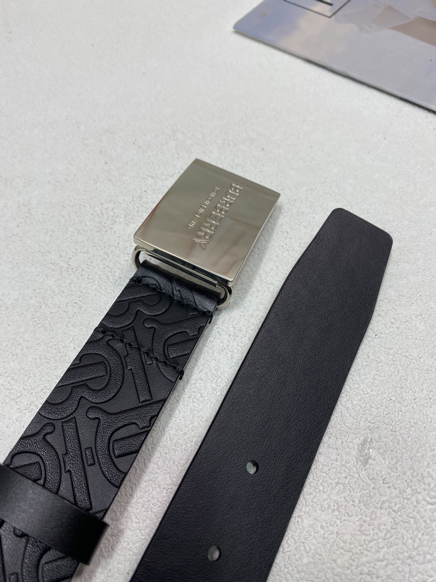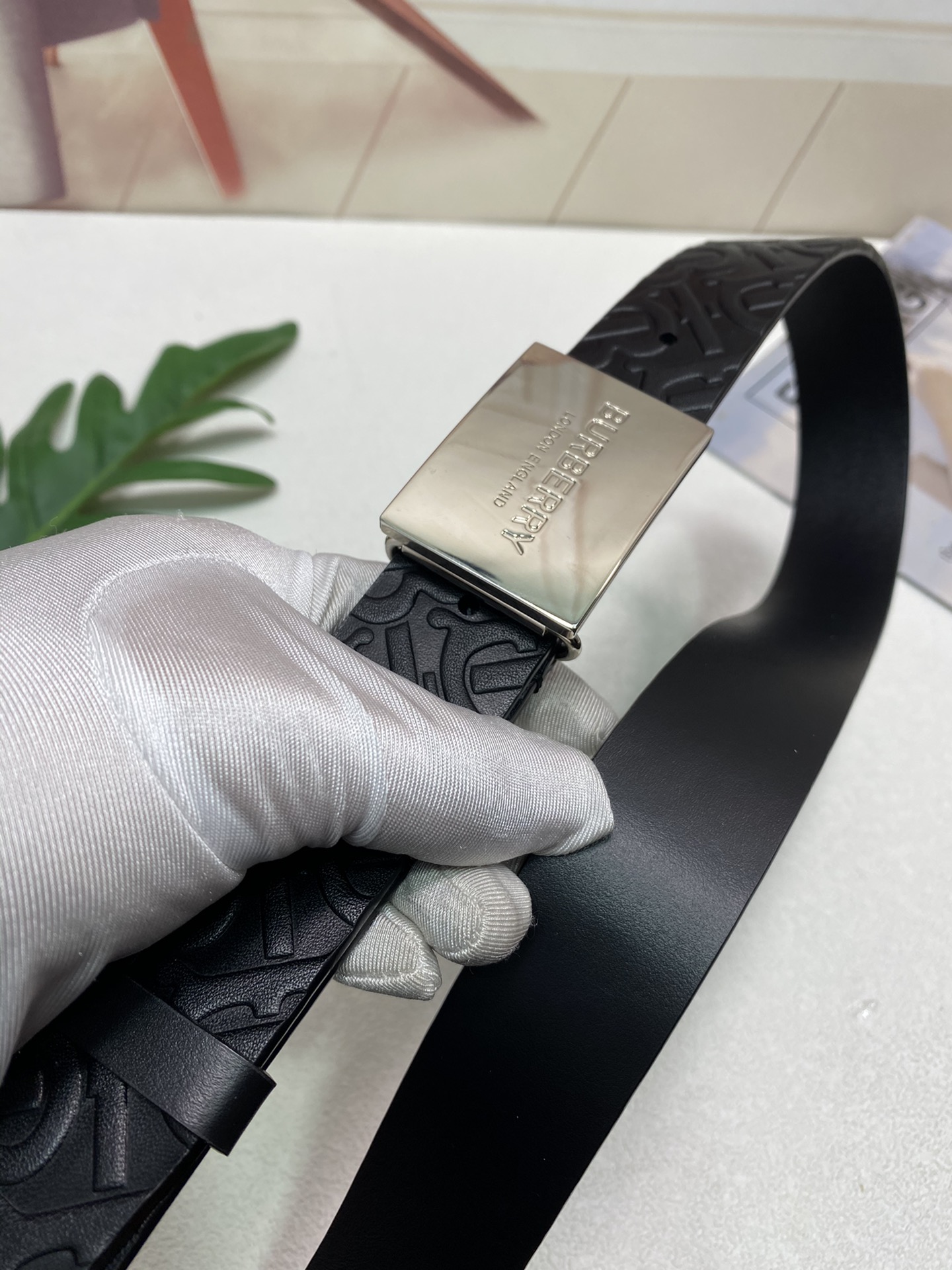 这款皮带是AAAAA 1:1 质量 (非常棒). 使用了和原版一模一样的材料. 商标部分也保持了和巴宝莉/Burberry一样. 图片拍摄是实物皮带拍摄, 您所收到的实物保证和我们图片一模一样.