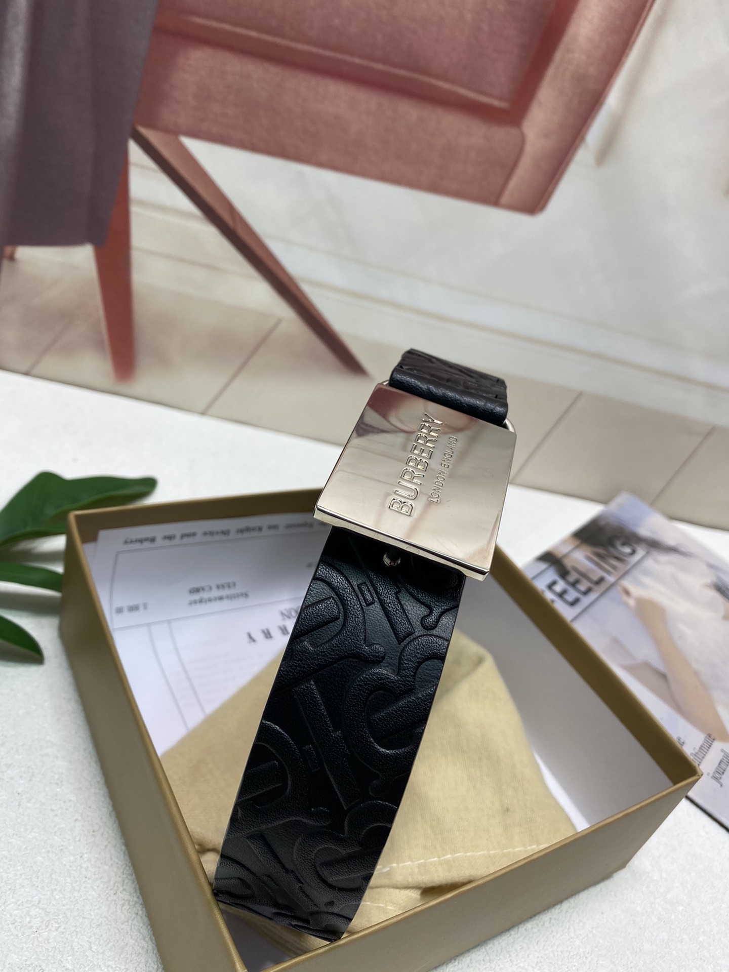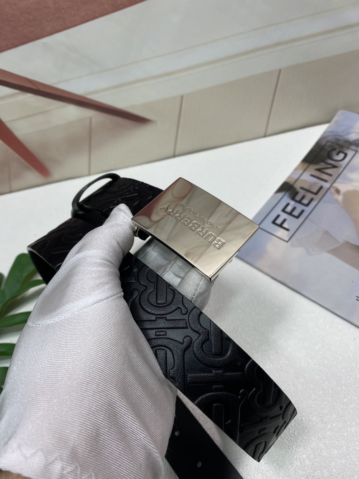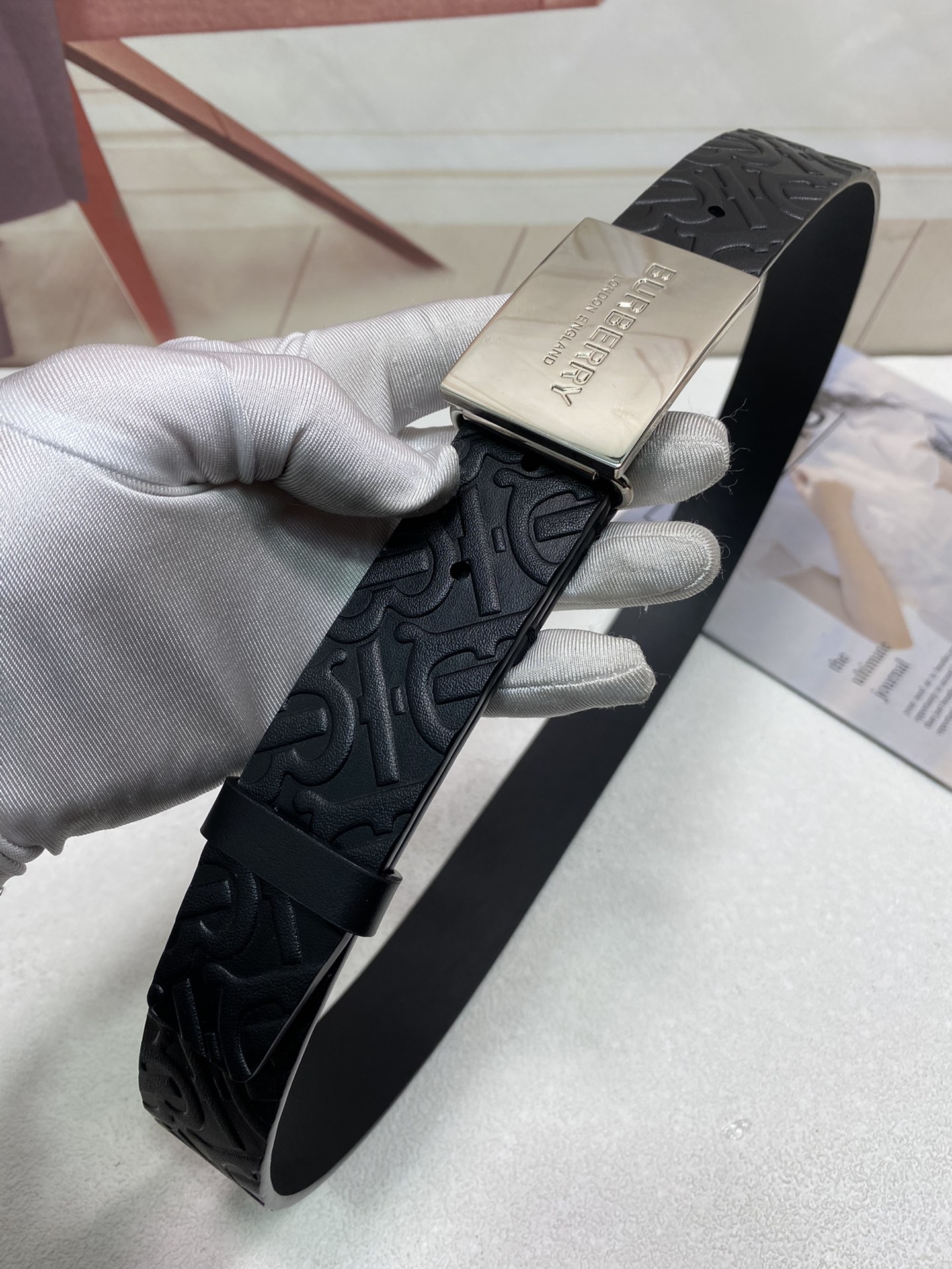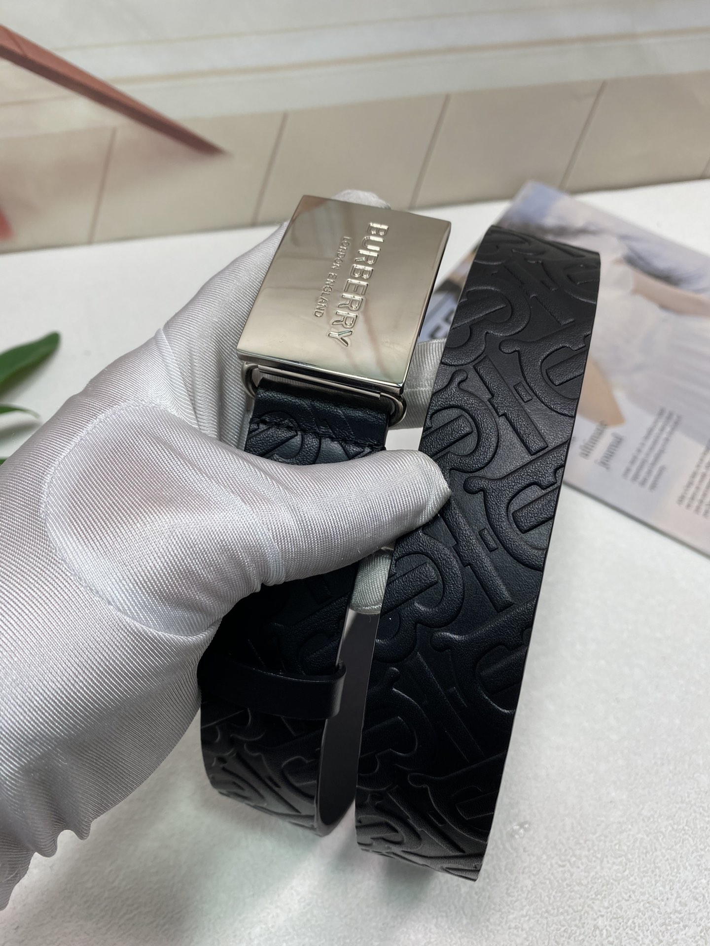 这款皮带是AAAAA 1:1 质量 (非常棒). 使用了和原版一模一样的材料. 商标部分也保持了和巴宝莉/Burberry一样. 图片拍摄是实物皮带拍摄, 您所收到的实物保证和我们图片一模一样.