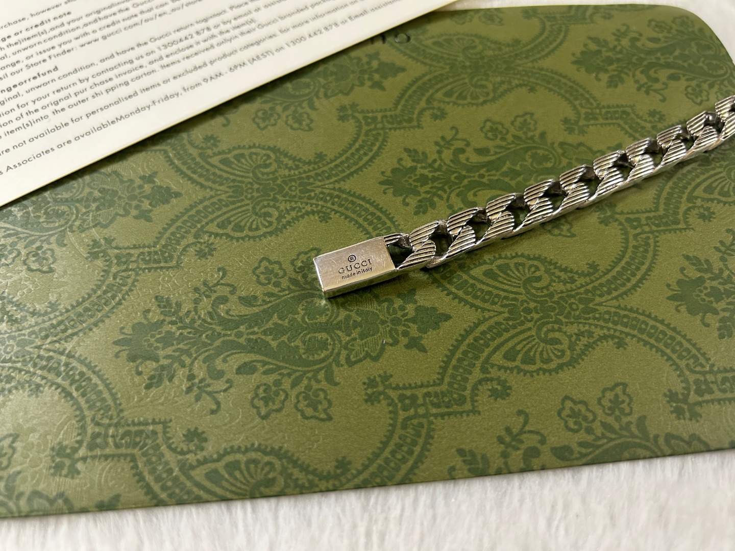 这款首饰是AAAAA 1:1 质量 (非常棒). 使用了和原版一模一样的材料. 商标部分也保持了和古奇/Gucci一样. 图片拍摄是实物首饰拍摄, 您所收到的实物保证和我们图片一模一样.