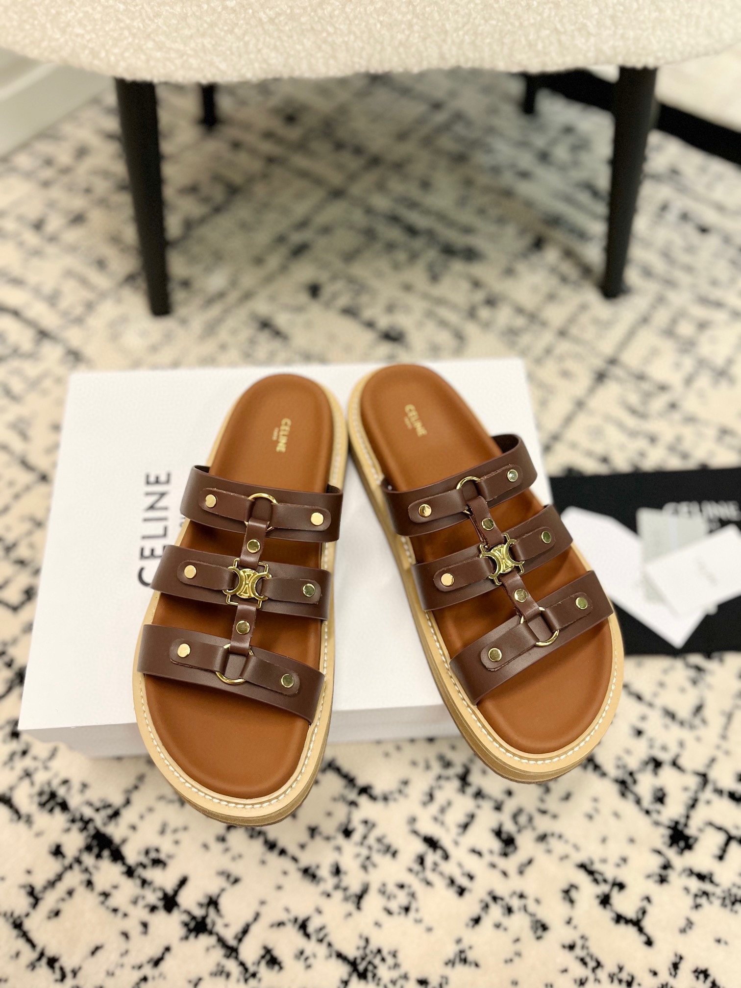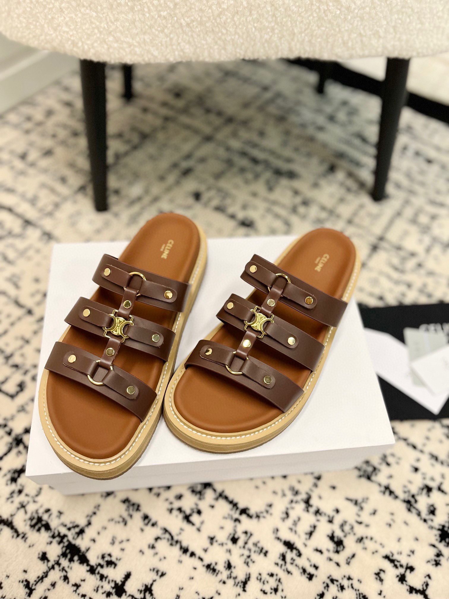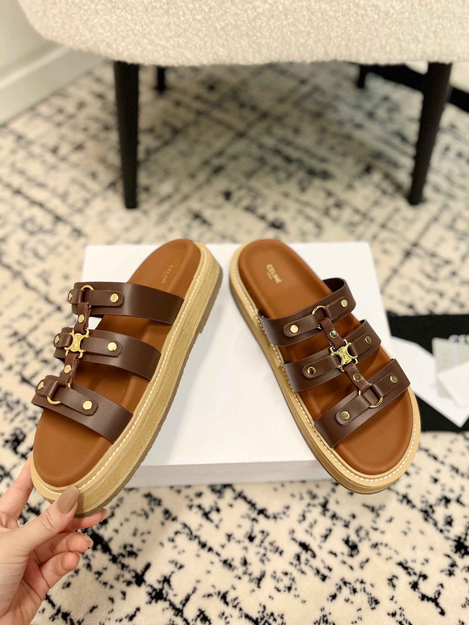 这款鞋子是AAAAA 1:1 质量 (非常棒). 使用了和原版一模一样的材料. 商标部分也保持了和思琳/Celine一样. 图片拍摄是实物鞋子拍摄, 您所收到的实物保证和我们图片一模一样.