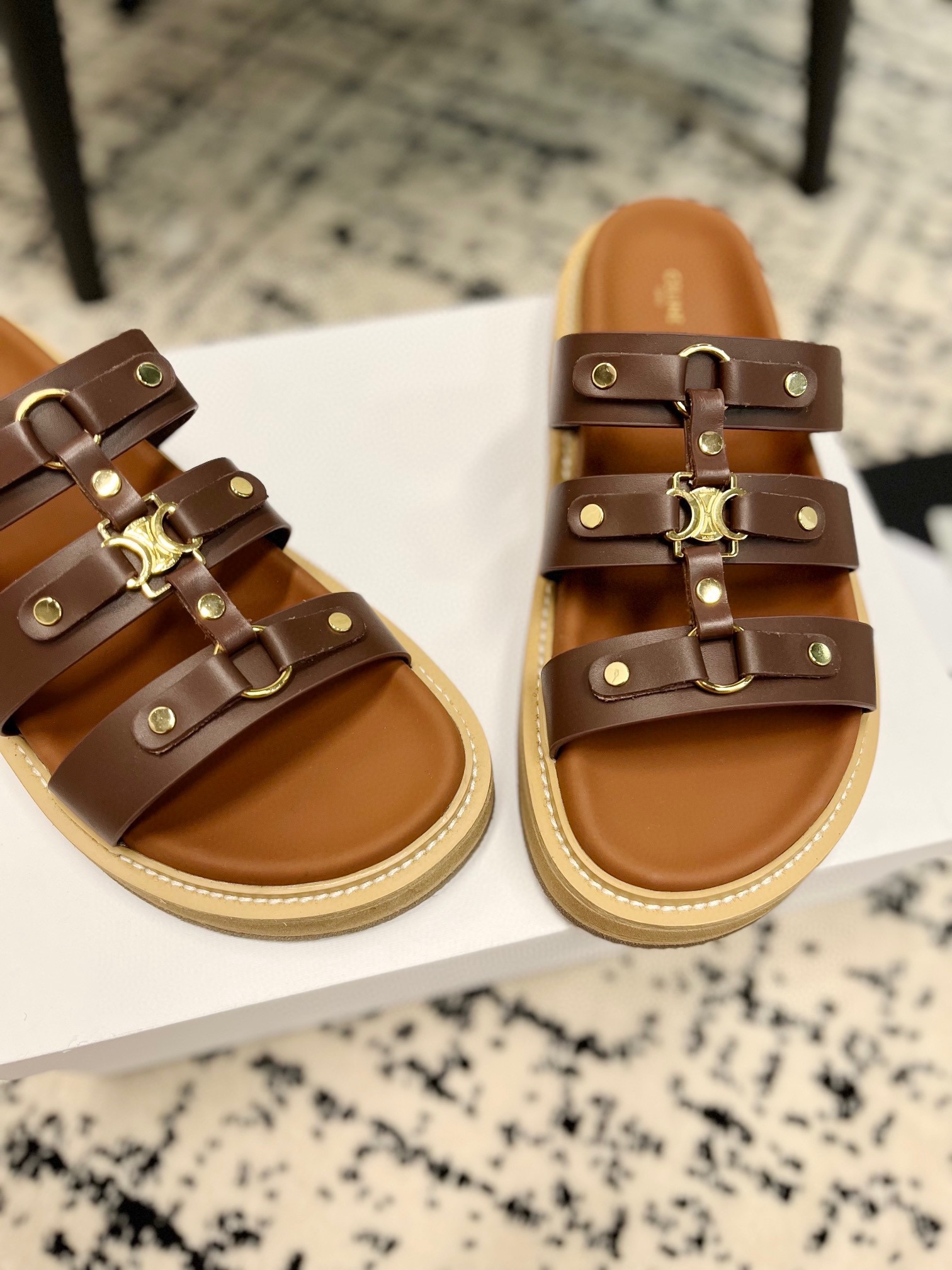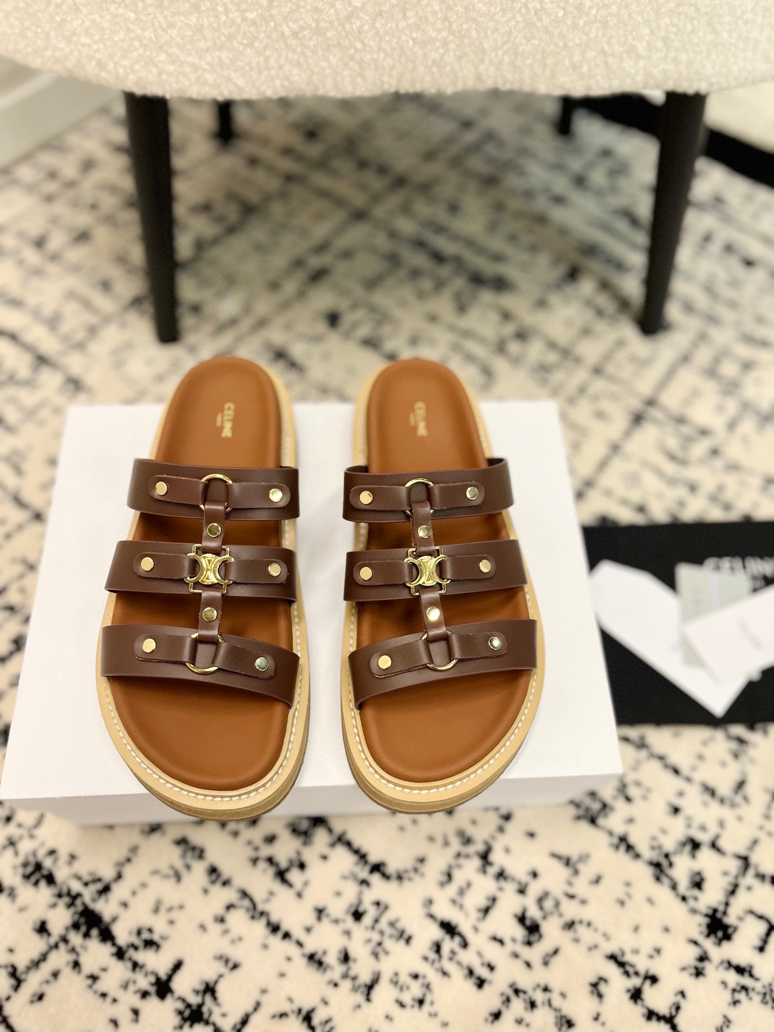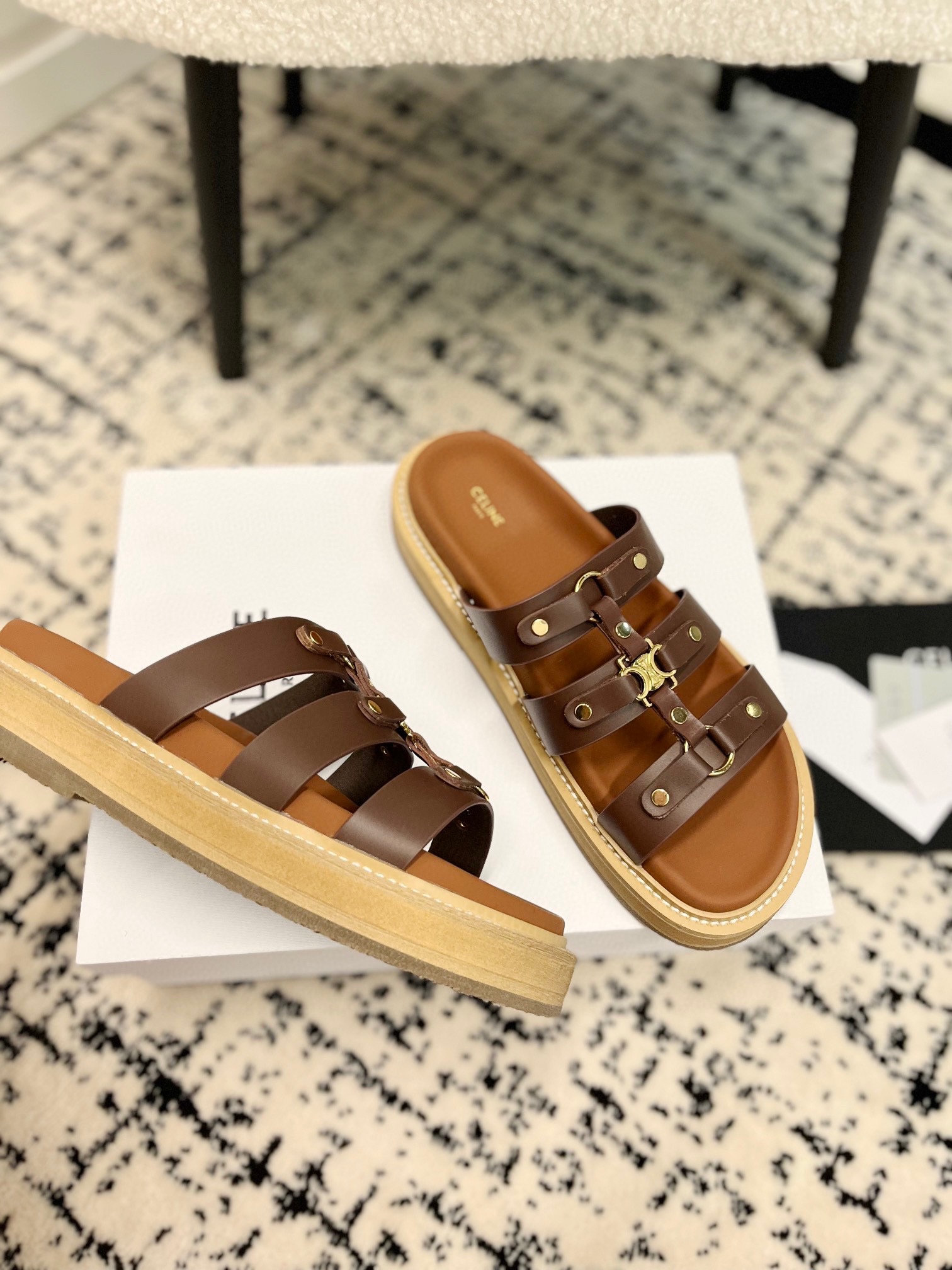 这款鞋子是AAAAA 1:1 质量 (非常棒). 使用了和原版一模一样的材料. 商标部分也保持了和思琳/Celine一样. 图片拍摄是实物鞋子拍摄, 您所收到的实物保证和我们图片一模一样.