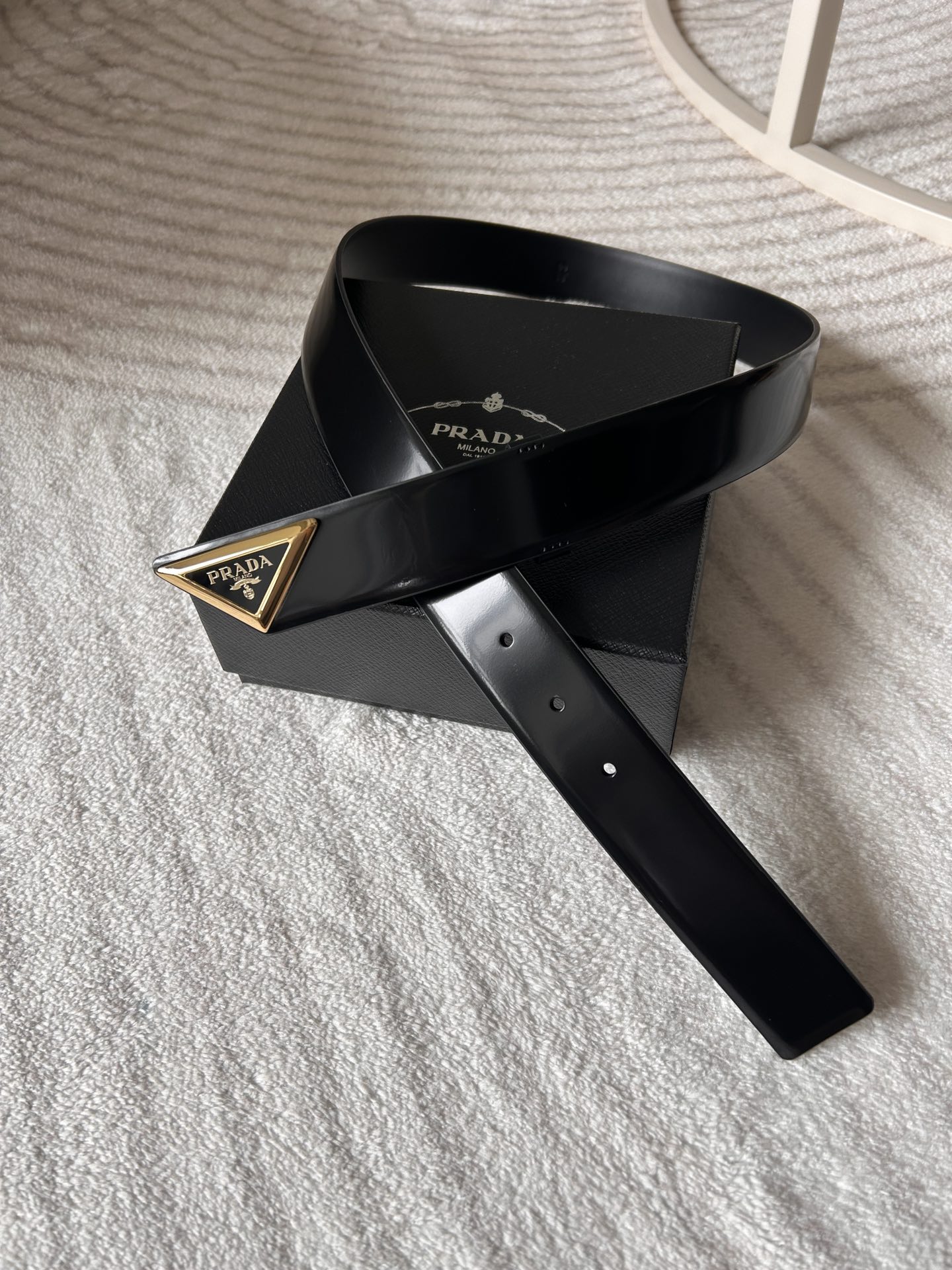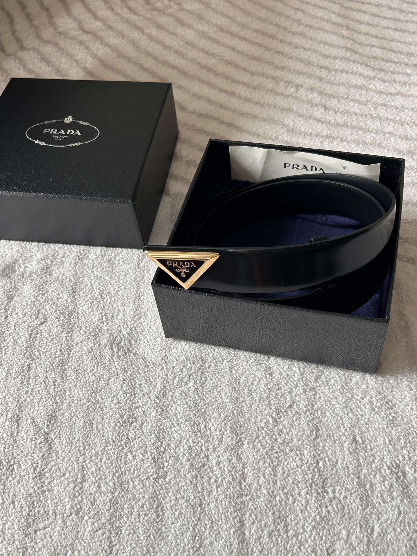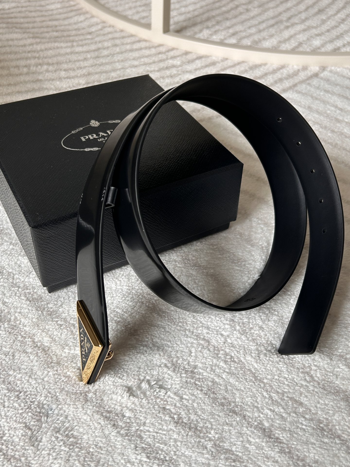 这款皮带是AAAAA 1:1 质量 (非常棒). 使用了和原版一模一样的材料. 商标部分也保持了和普拉达/Prada一样. 图片拍摄是实物皮带拍摄, 您所收到的实物保证和我们图片一模一样.