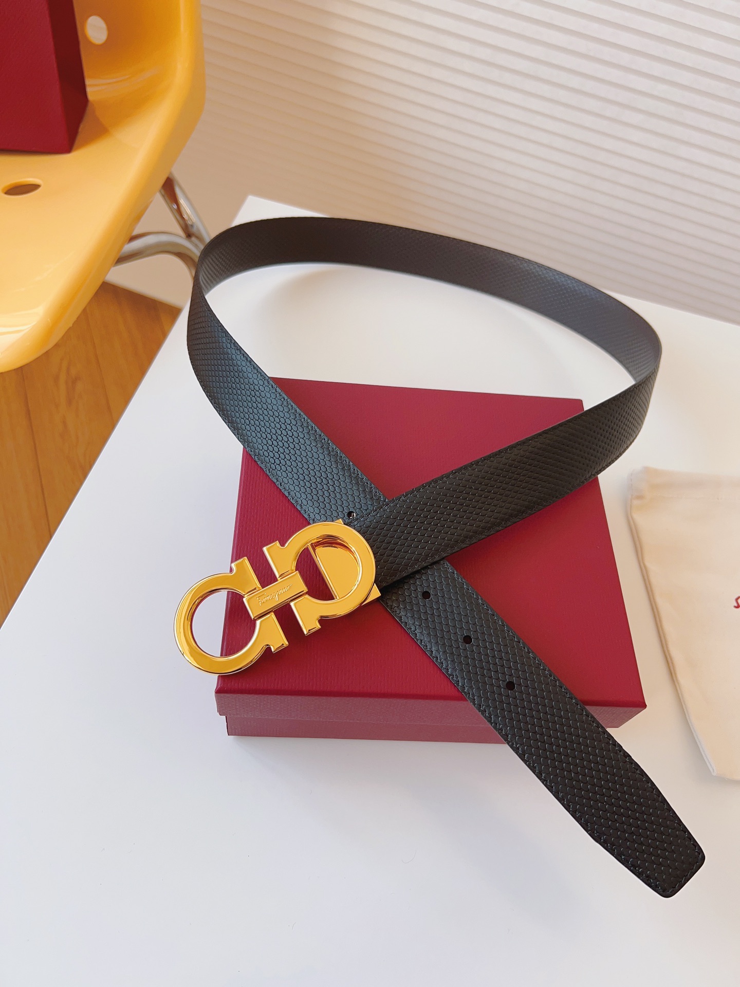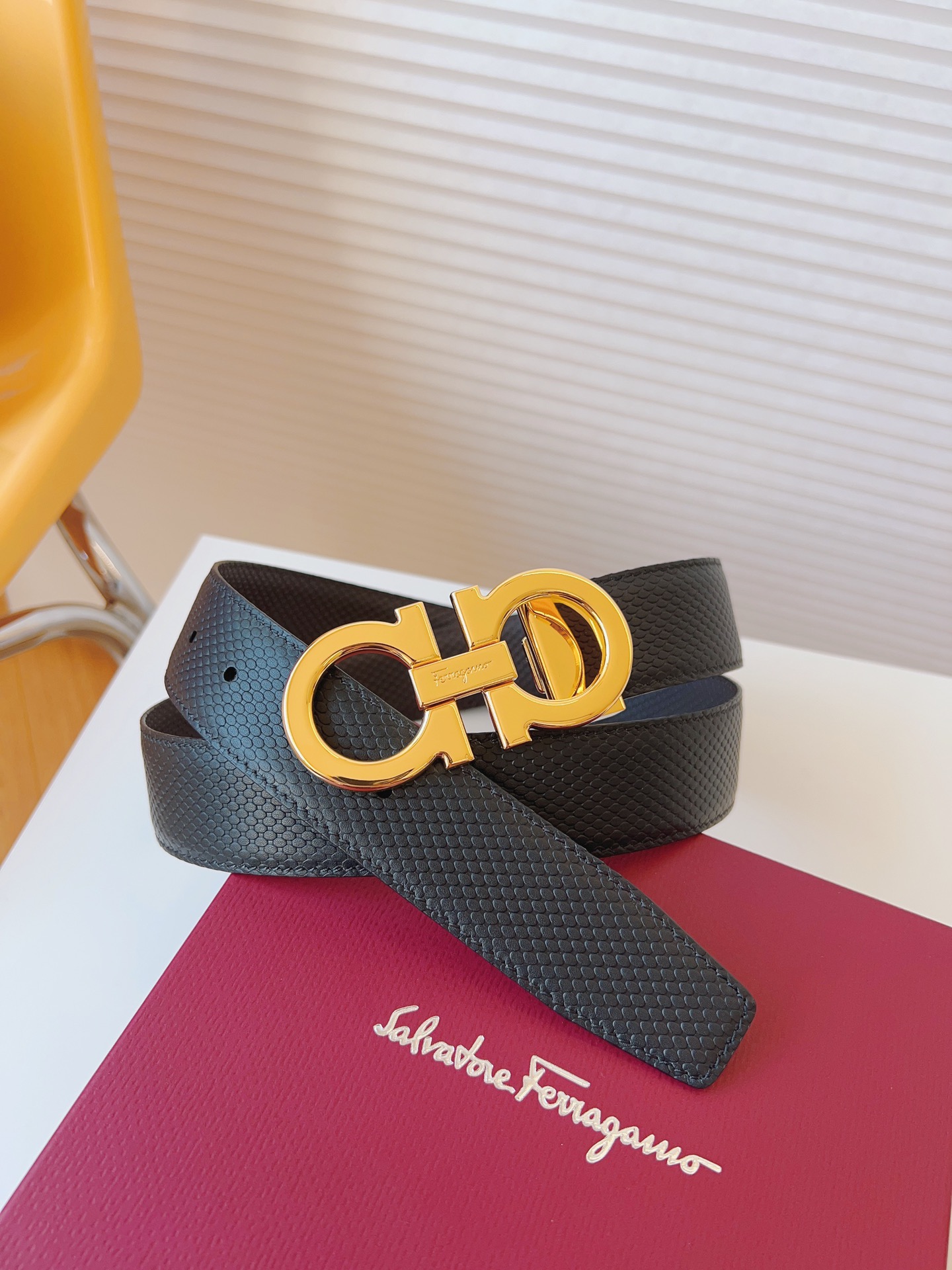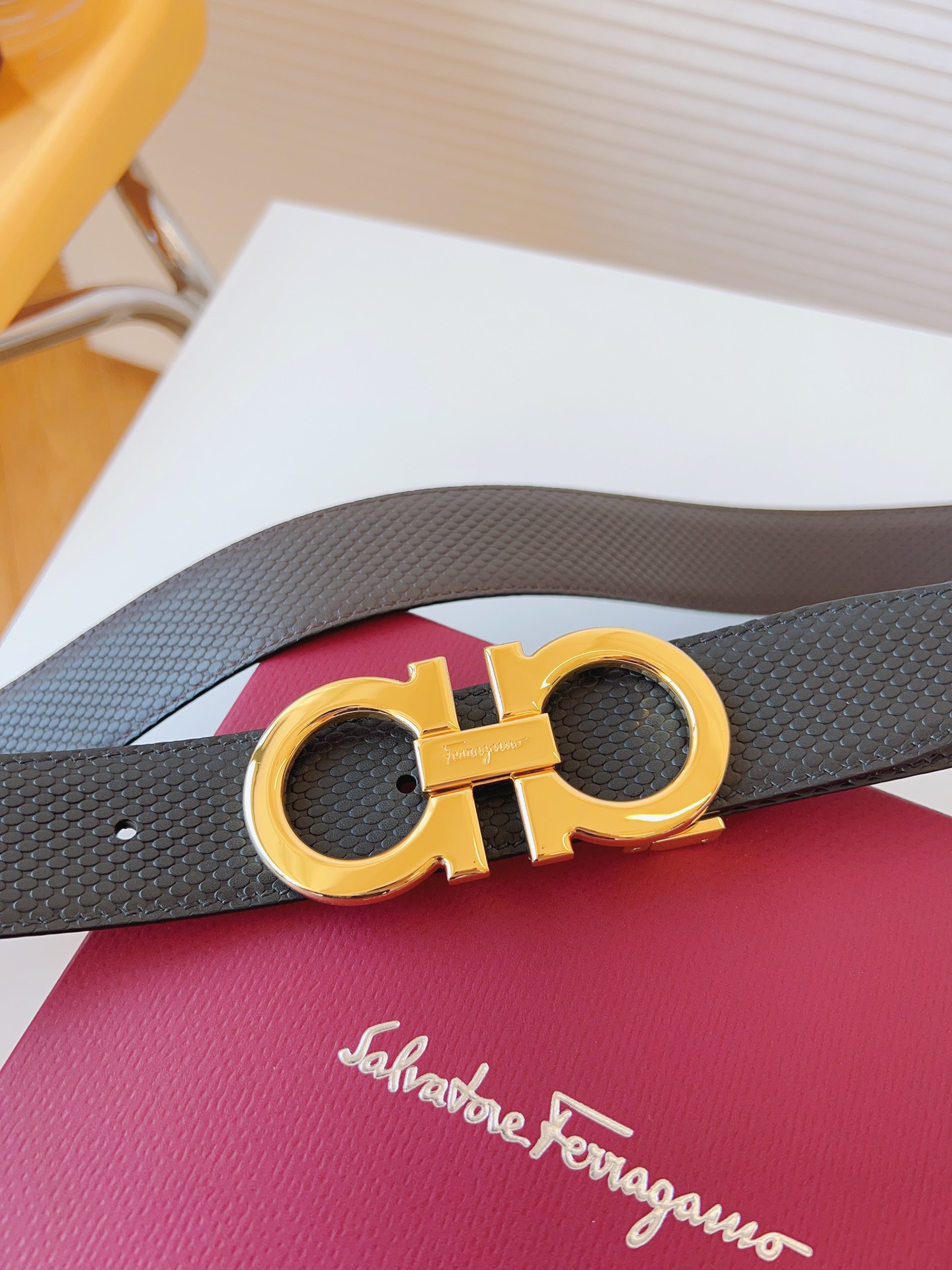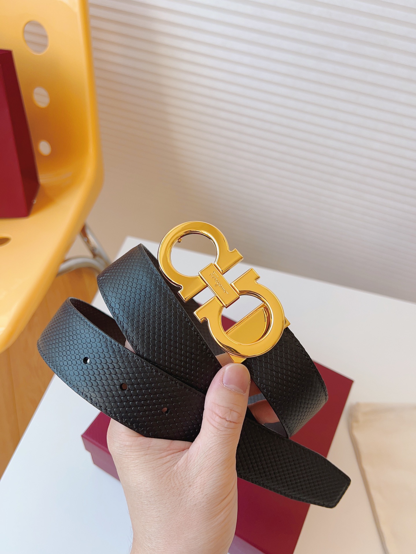 这款皮带是AAAAA 1:1 质量 (非常棒). 使用了和原版一模一样的材料. 商标部分也保持了和菲拉格慕/Salvatore Ferragamo一样. 图片拍摄是实物皮带拍摄, 您所收到的实物保证和我们图片一模一样.