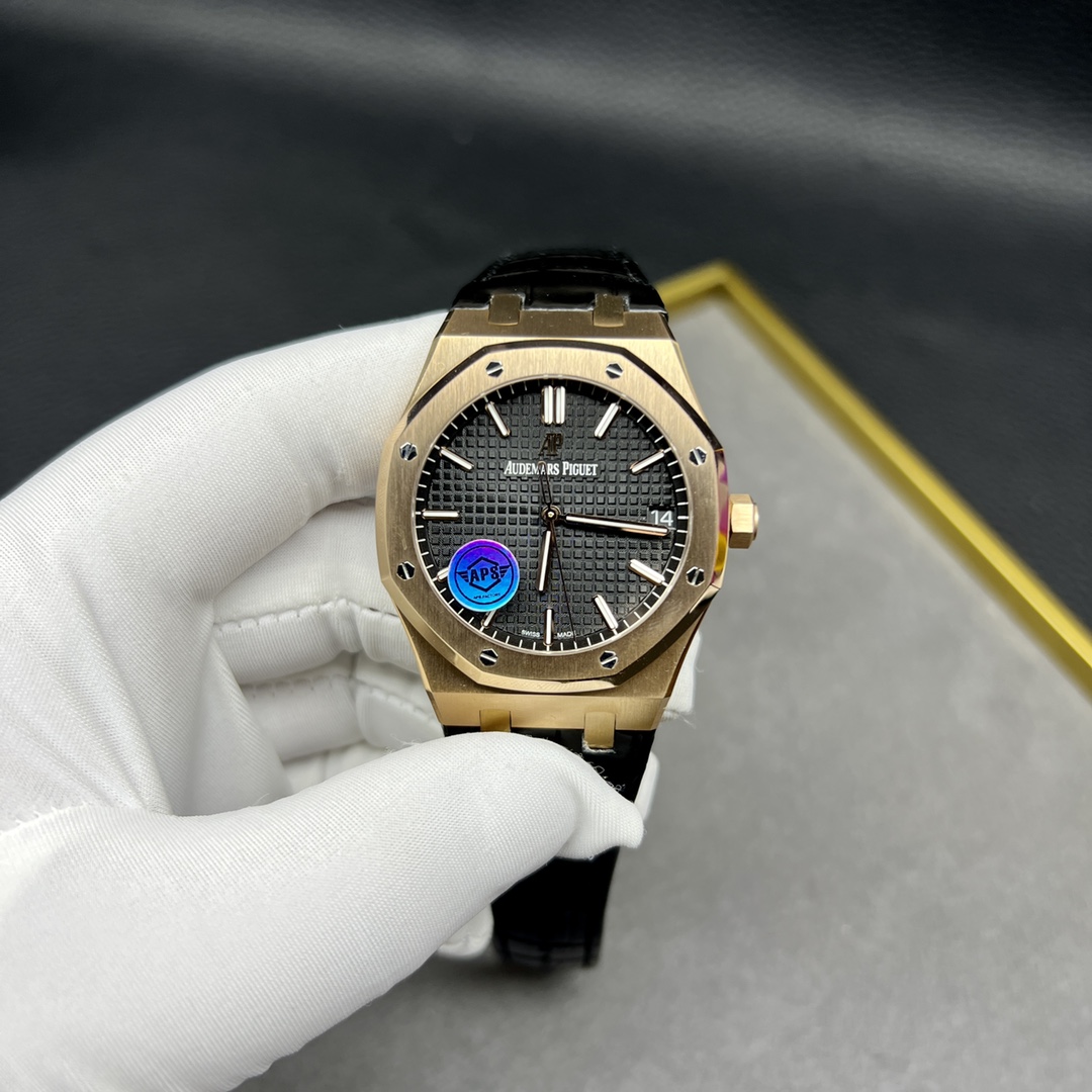 这款手表是AAAAA 1:1 质量 (非常棒). 使用了和原版一模一样的材料. 商标部分也保持了和爱彼/Audemars Piguet一样. 图片拍摄是实物手表拍摄, 您所收到的实物保证和我们图片一模一样.