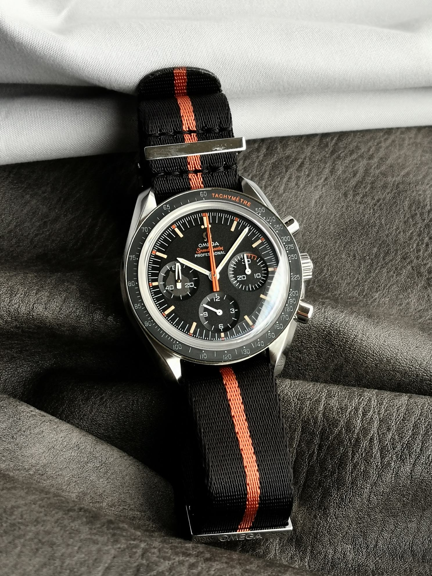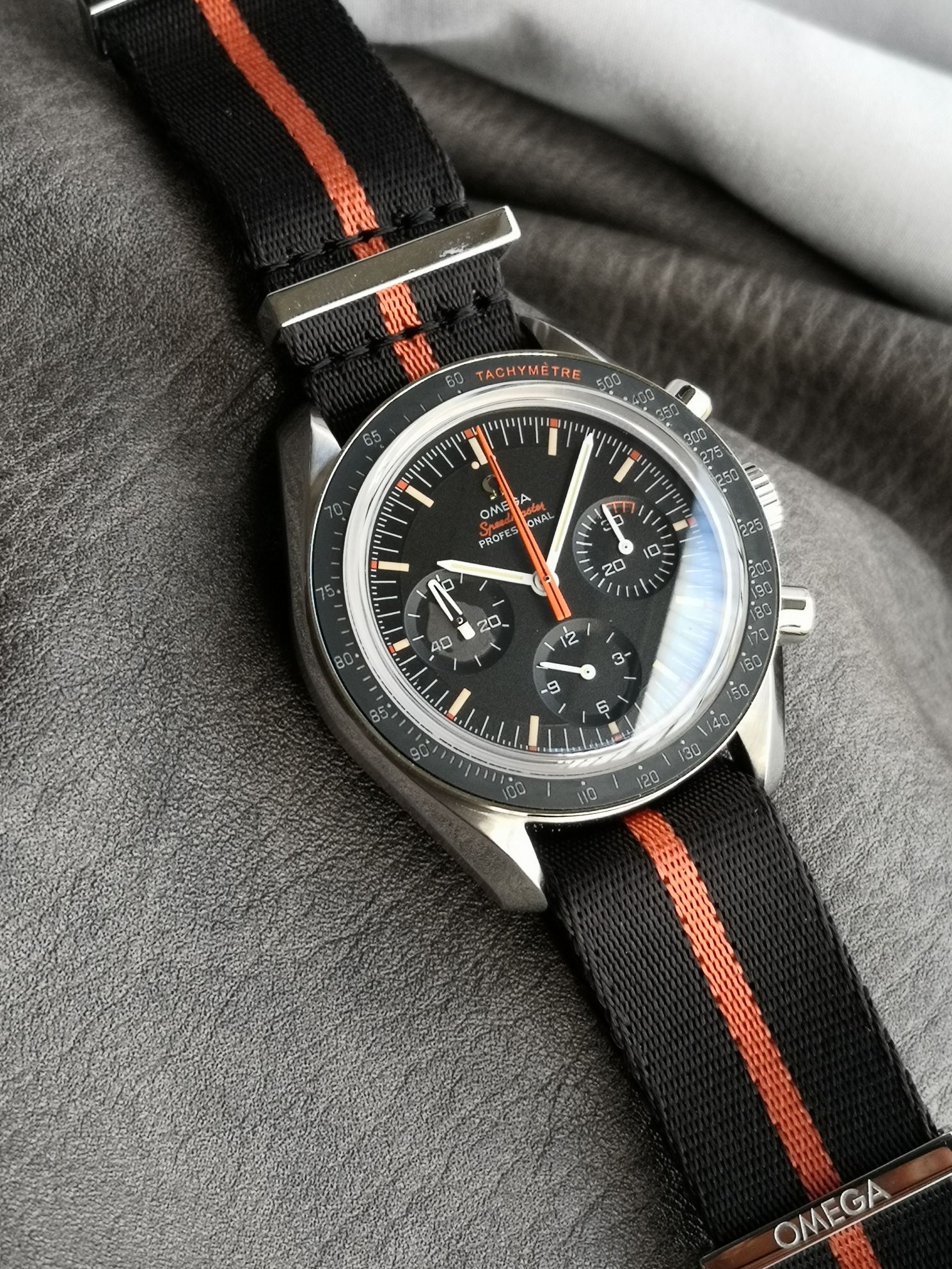 这款手表是AAAAA 1:1 质量 (非常棒). 使用了和原版一模一样的材料. 商标部分也保持了和欧米茄/Omega一样. 图片拍摄是实物手表拍摄, 您所收到的实物保证和我们图片一模一样.