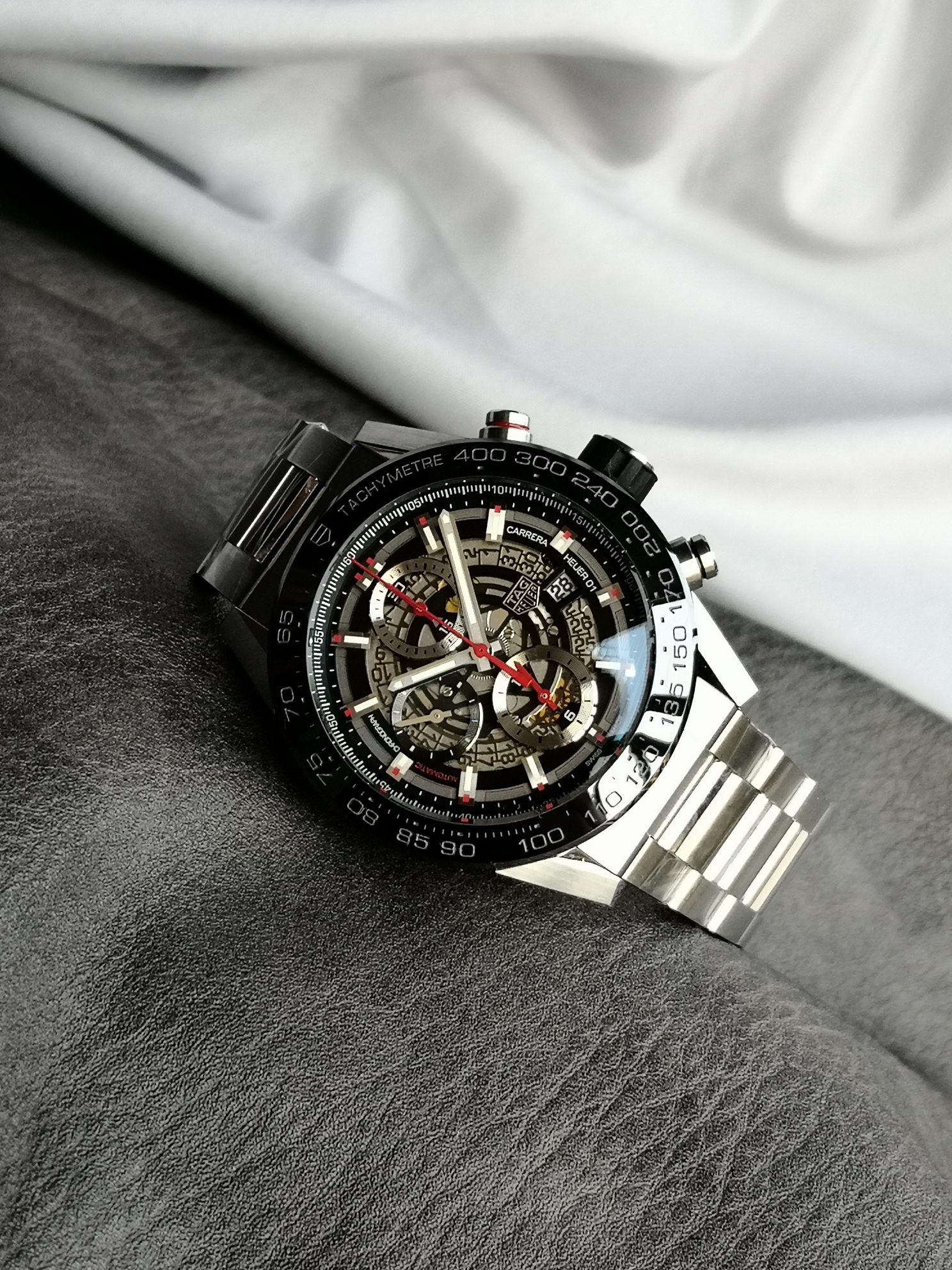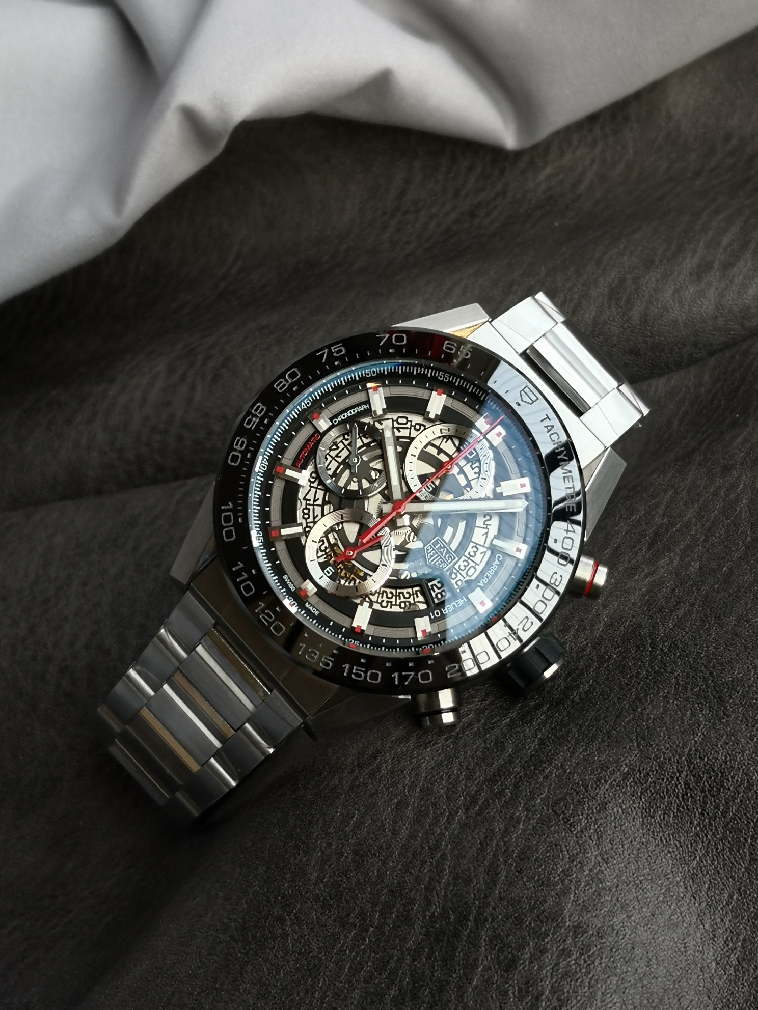 这款手表是AAAAA 1:1 质量 (非常棒). 使用了和原版一模一样的材料. 商标部分也保持了和TAG Heuer一样. 图片拍摄是实物手表拍摄, 您所收到的实物保证和我们图片一模一样.