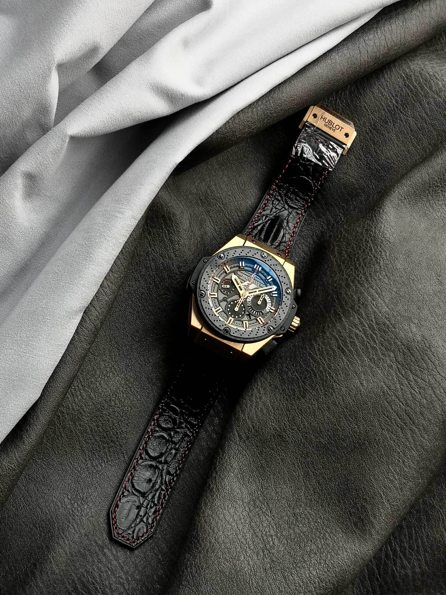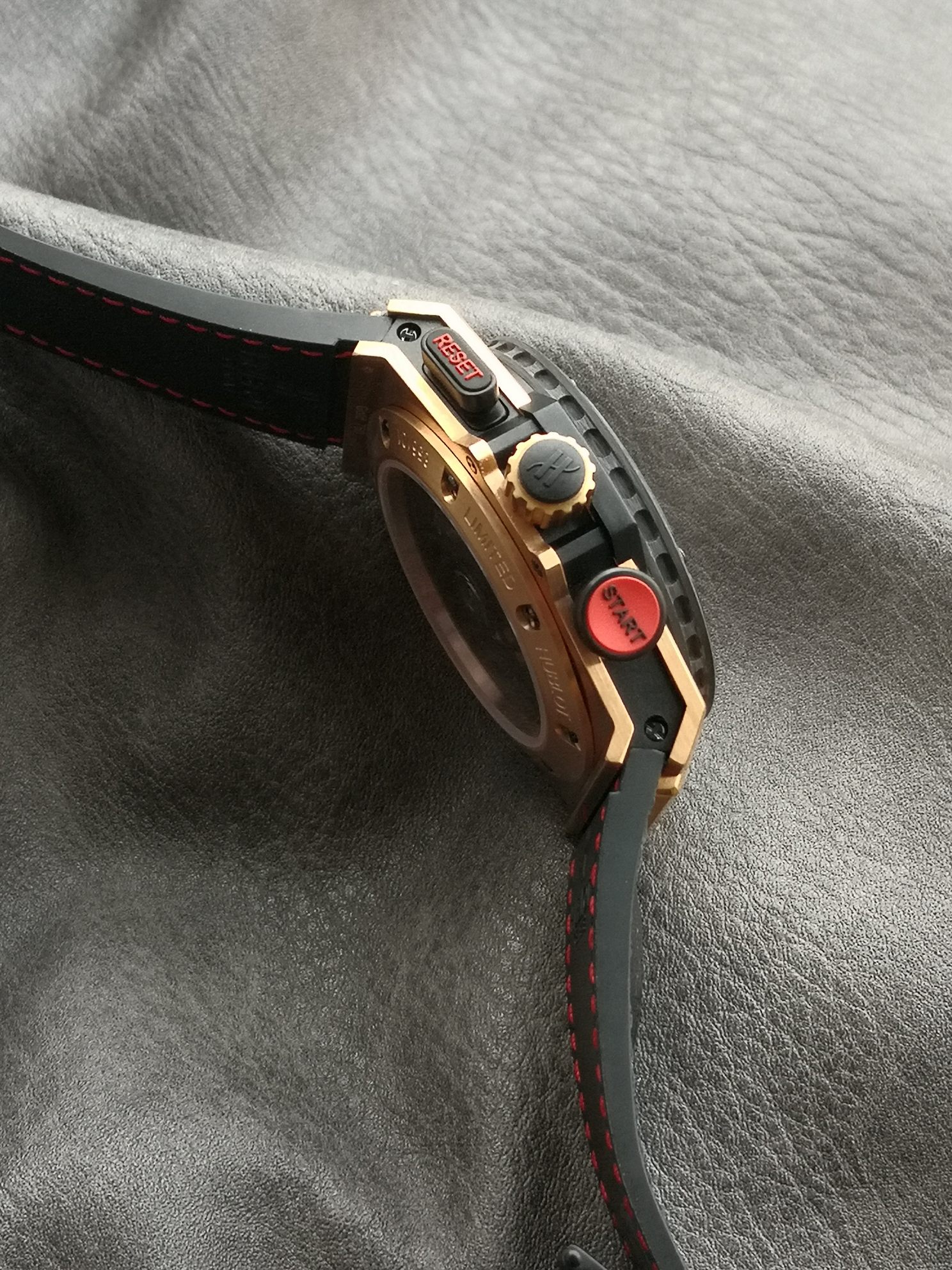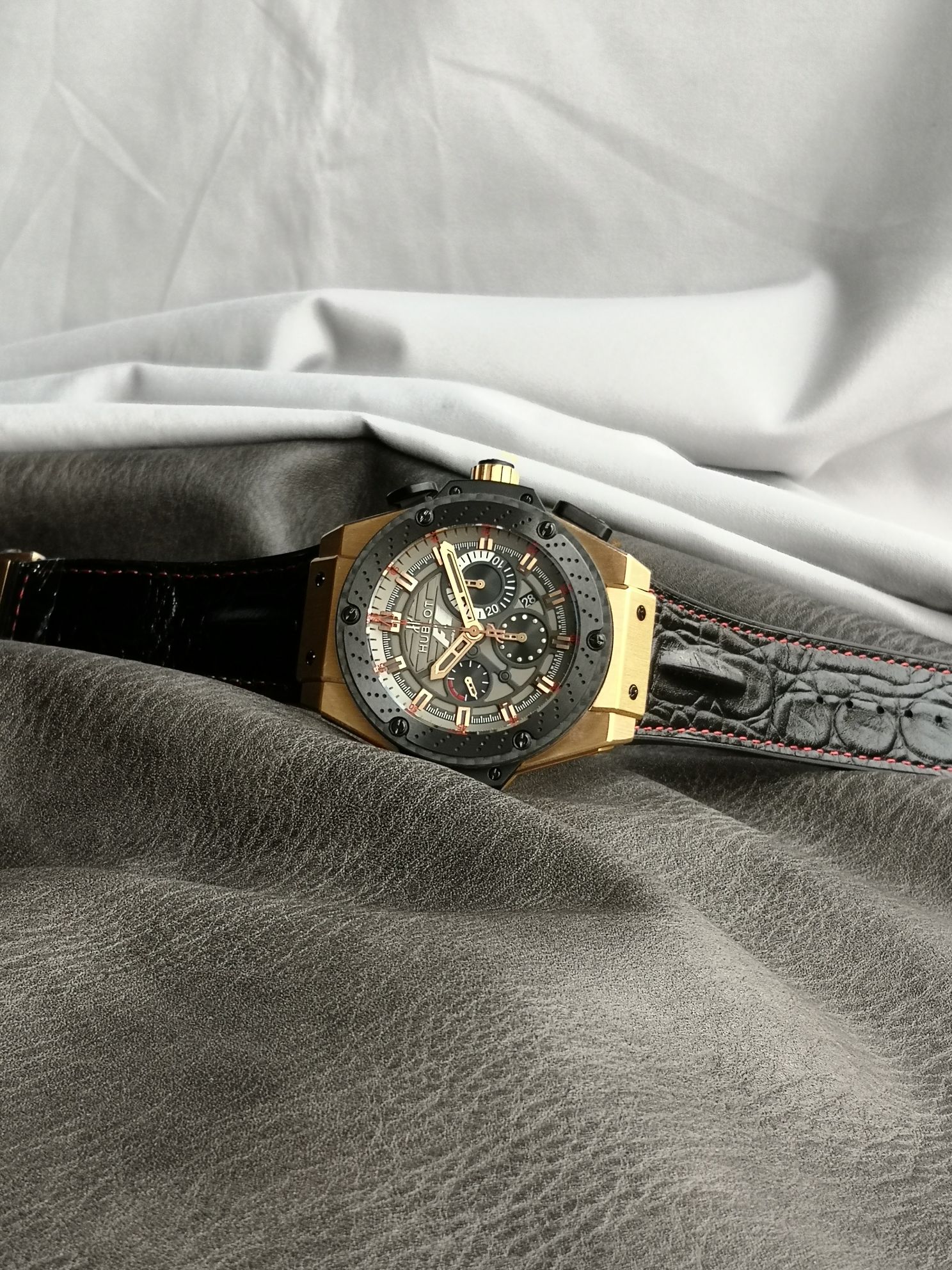 这款手表是AAAAA 1:1 质量 (非常棒). 使用了和原版一模一样的材料. 商标部分也保持了和Hublot一样. 图片拍摄是实物手表拍摄, 您所收到的实物保证和我们图片一模一样.
