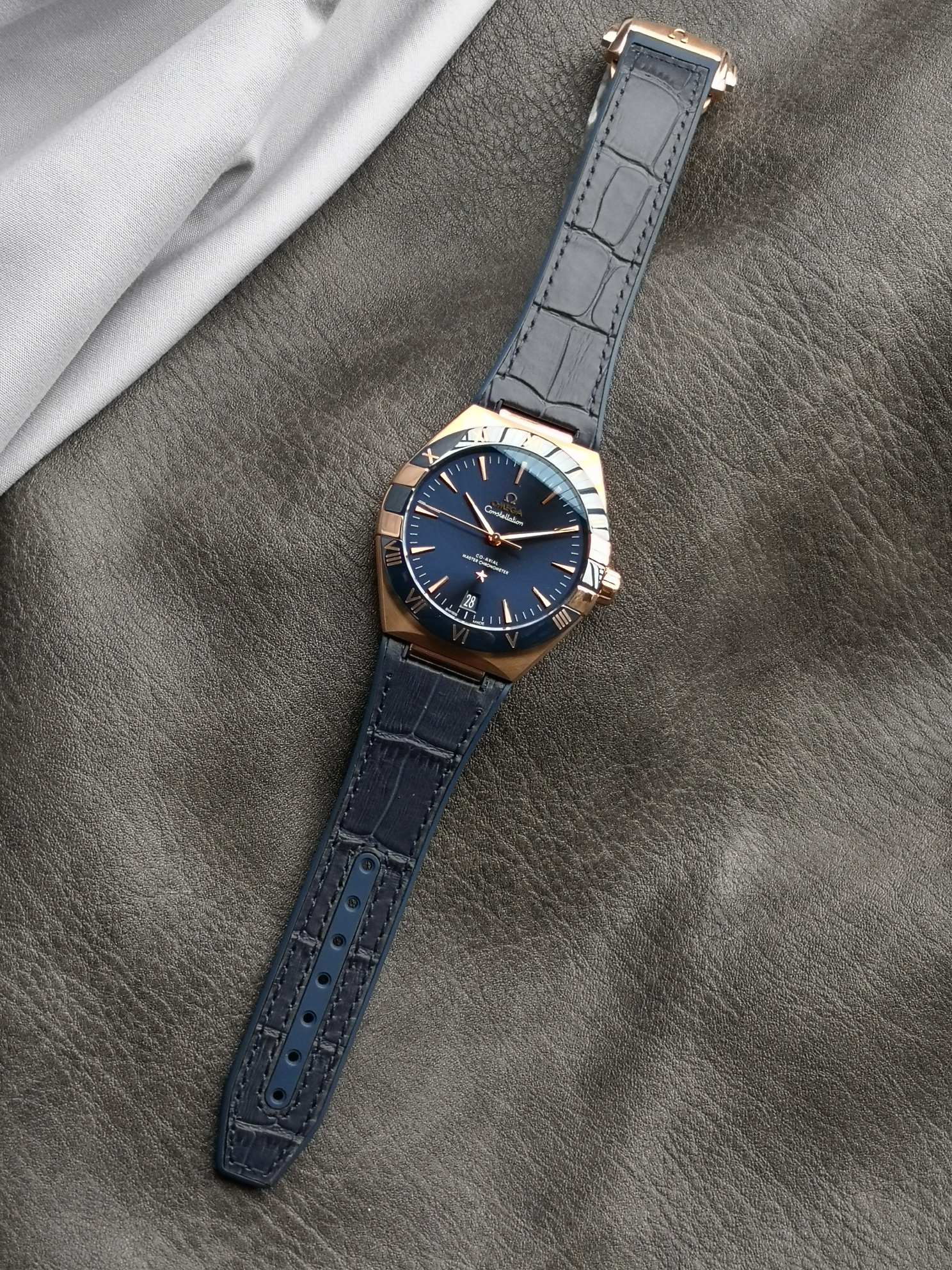 这款手表是AAAAA 1:1 质量 (非常棒). 使用了和原版一模一样的材料. 商标部分也保持了和欧米茄/Omega一样. 图片拍摄是实物手表拍摄, 您所收到的实物保证和我们图片一模一样.