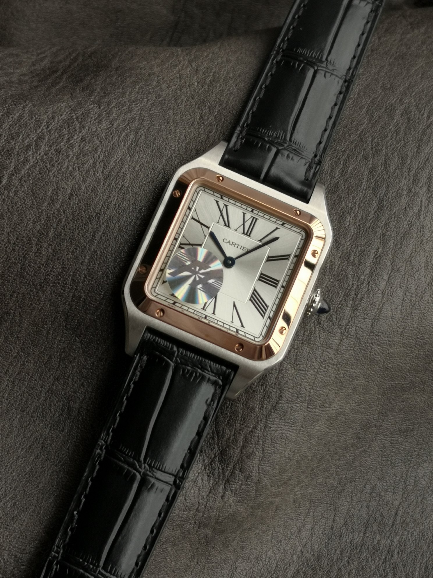 这款手表是AAAAA 1:1 质量 (非常棒). 使用了和原版一模一样的材料. 商标部分也保持了和卡地亚/Cartier一样. 图片拍摄是实物手表拍摄, 您所收到的实物保证和我们图片一模一样.