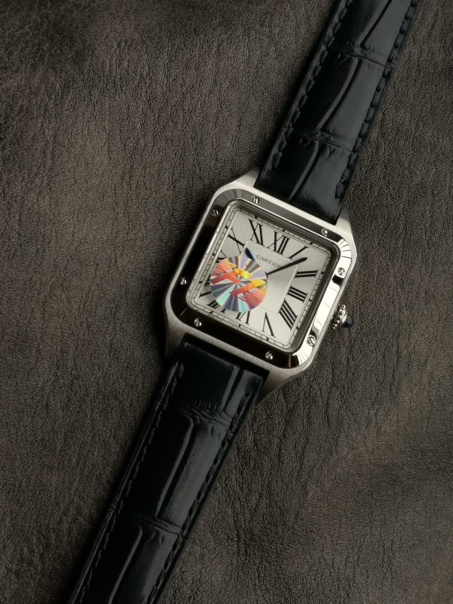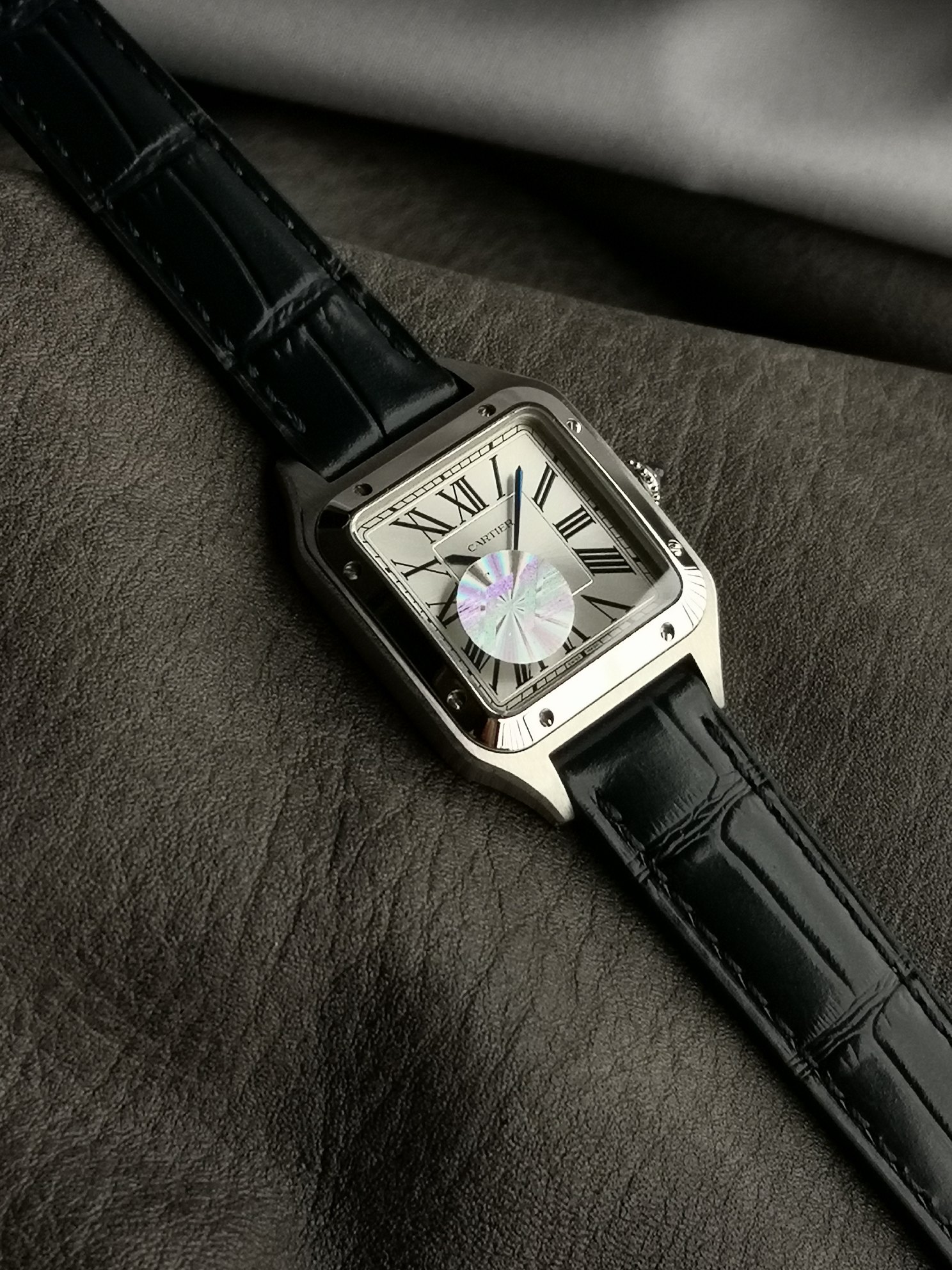 这款手表是AAAAA 1:1 质量 (非常棒). 使用了和原版一模一样的材料. 商标部分也保持了和卡地亚/Cartier一样. 图片拍摄是实物手表拍摄, 您所收到的实物保证和我们图片一模一样.