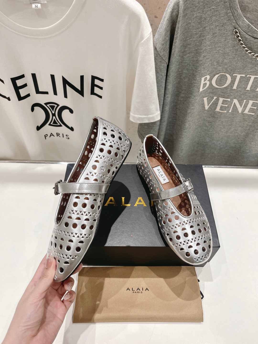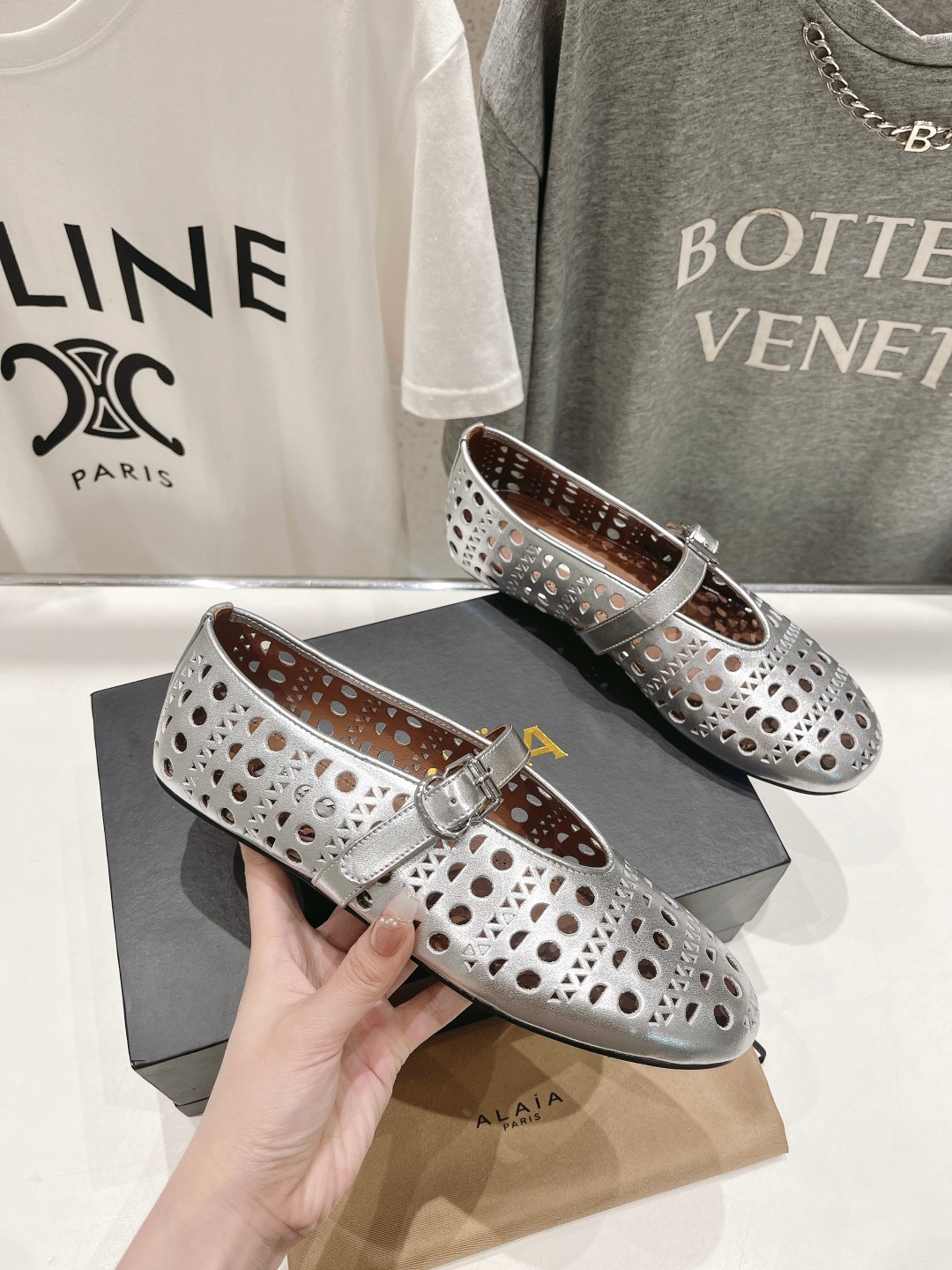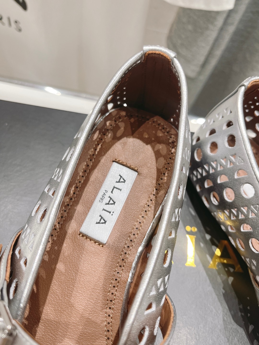 这款鞋子是AAAAA 1:1 质量 (非常棒). 使用了和原版一模一样的材料. 商标部分也保持了和Alaia一样. 图片拍摄是实物鞋子拍摄, 您所收到的实物保证和我们图片一模一样.