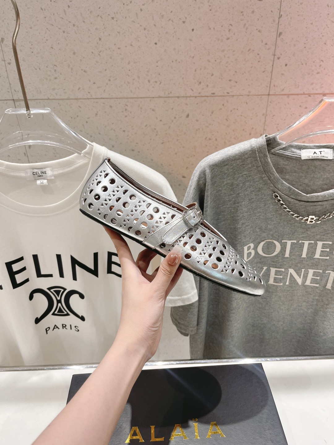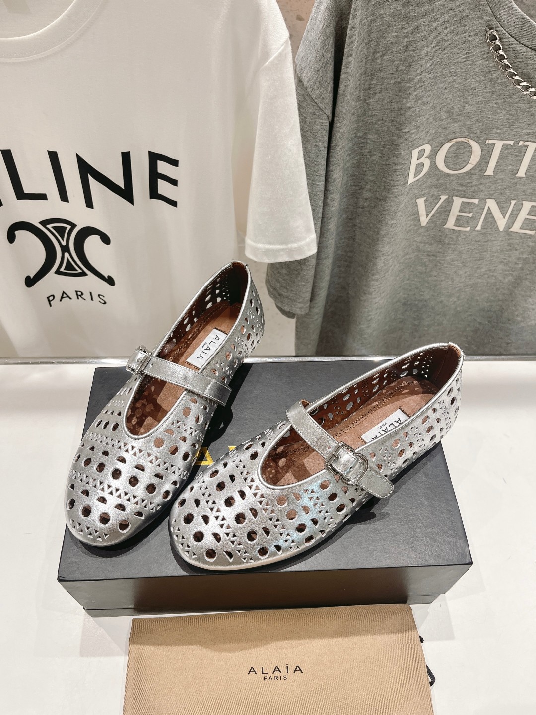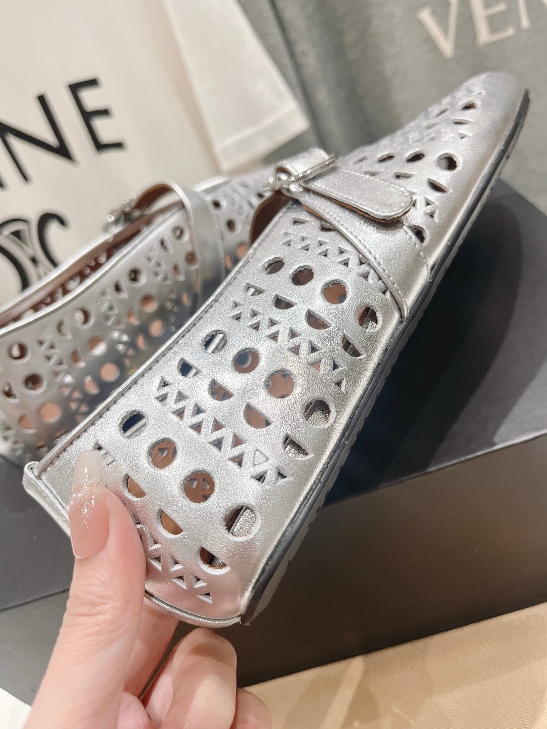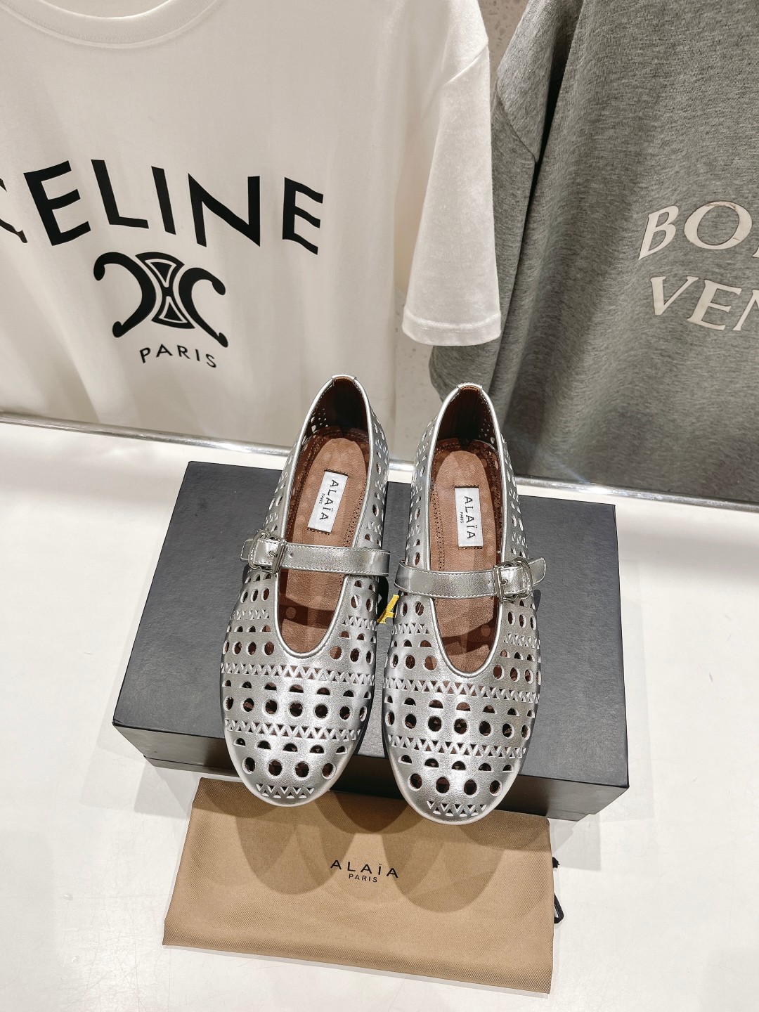 这款鞋子是AAAAA 1:1 质量 (非常棒). 使用了和原版一模一样的材料. 商标部分也保持了和Alaia一样. 图片拍摄是实物鞋子拍摄, 您所收到的实物保证和我们图片一模一样.