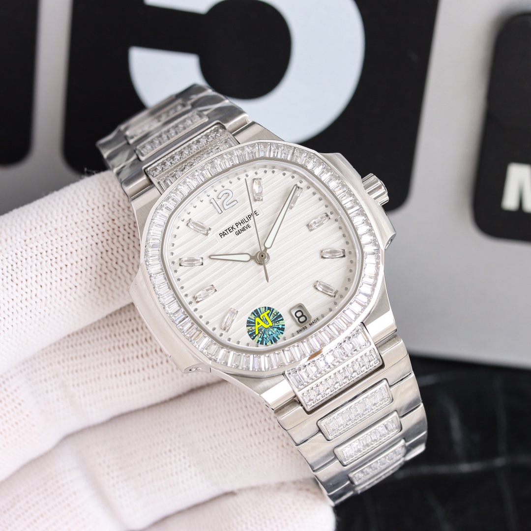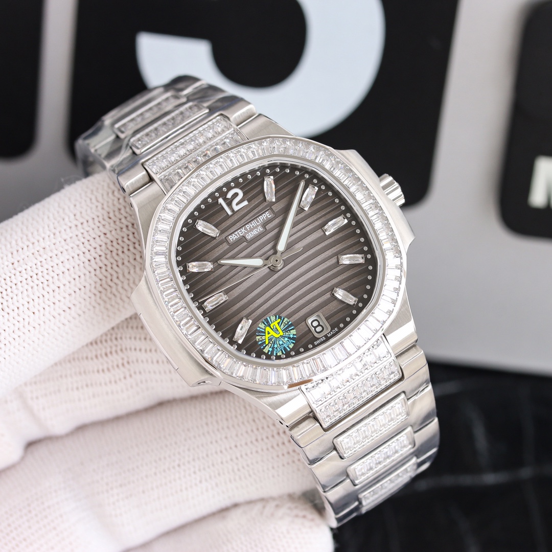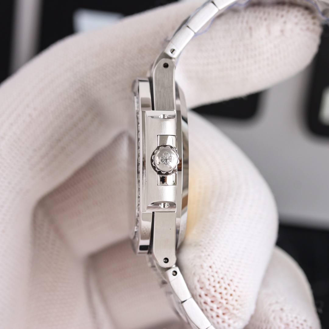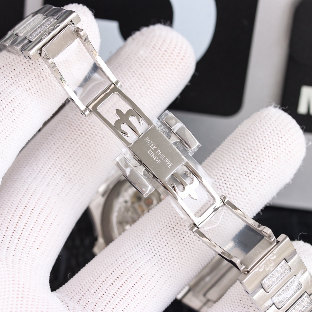 这款手表是AAAAA 1:1 质量 (非常棒). 使用了和原版一模一样的材料. 商标部分也保持了和百达翡丽/Patek Philippe一样. 图片拍摄是实物手表拍摄, 您所收到的实物保证和我们图片一模一样.