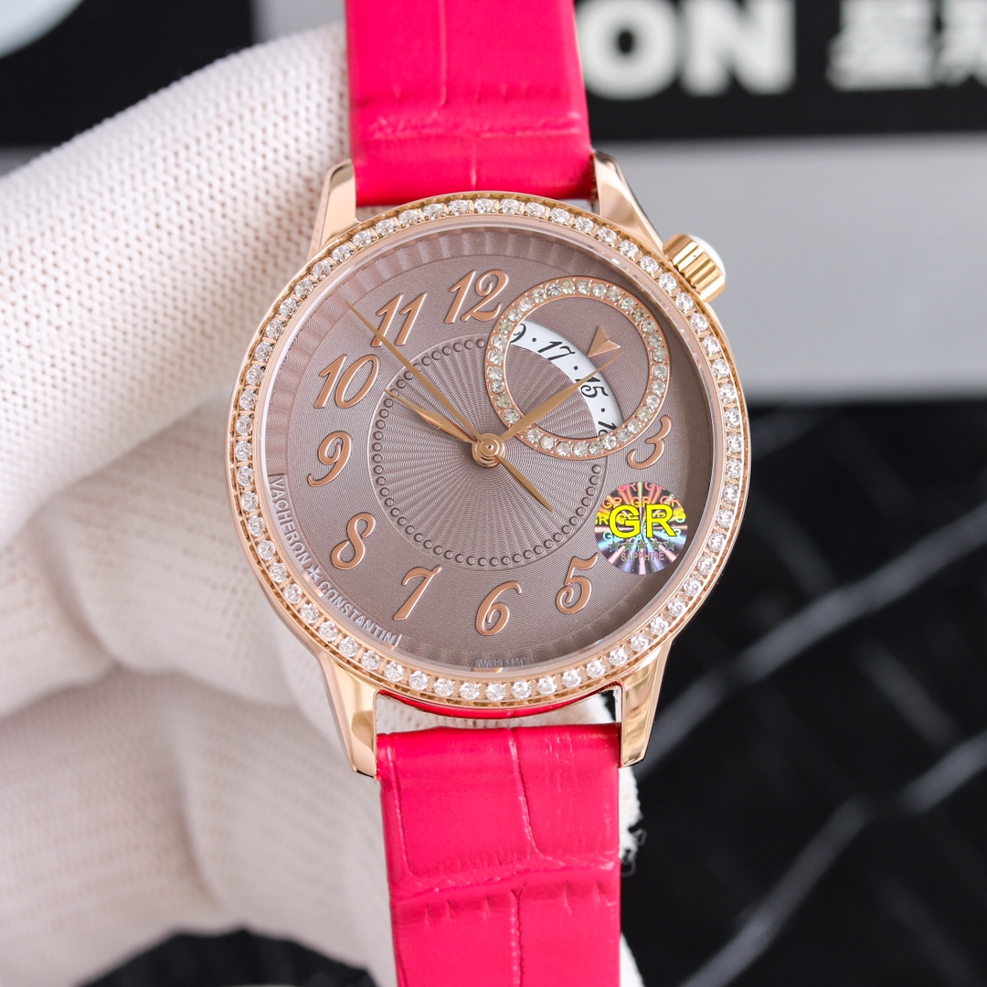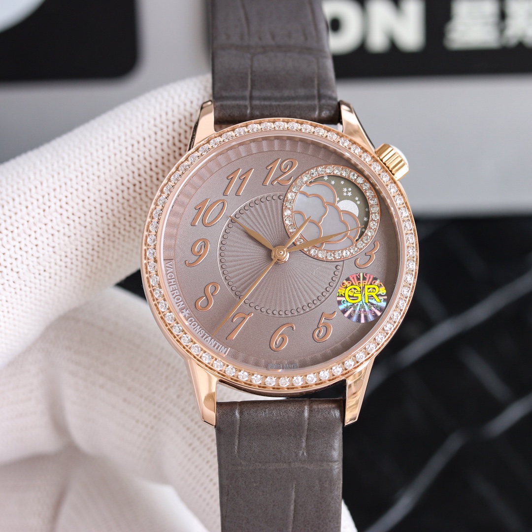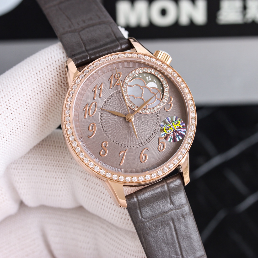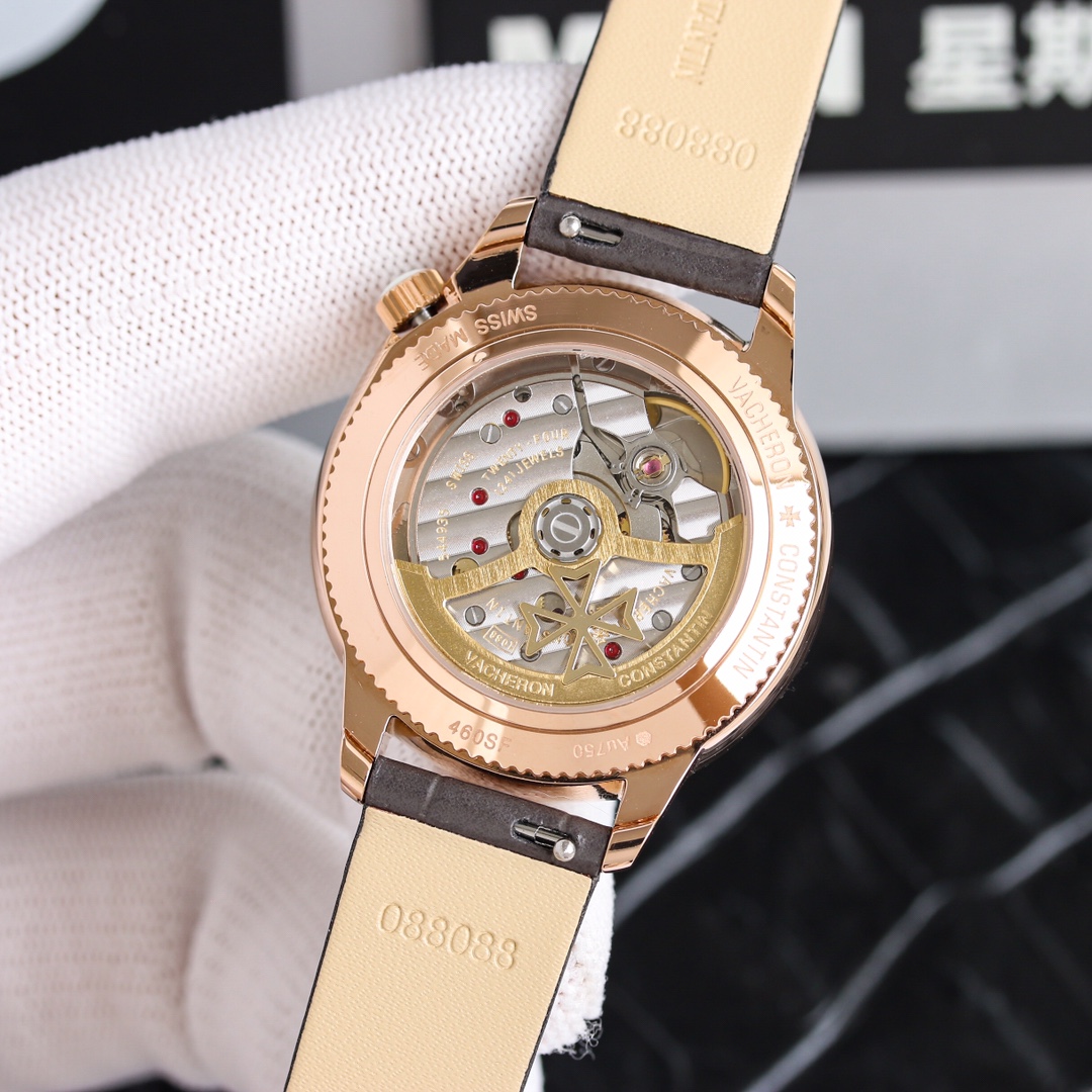 这款手表是AAAAA 1:1 质量 (非常棒). 使用了和原版一模一样的材料. 商标部分也保持了和江诗丹顿/Vacheron Constantin一样. 图片拍摄是实物手表拍摄, 您所收到的实物保证和我们图片一模一样.