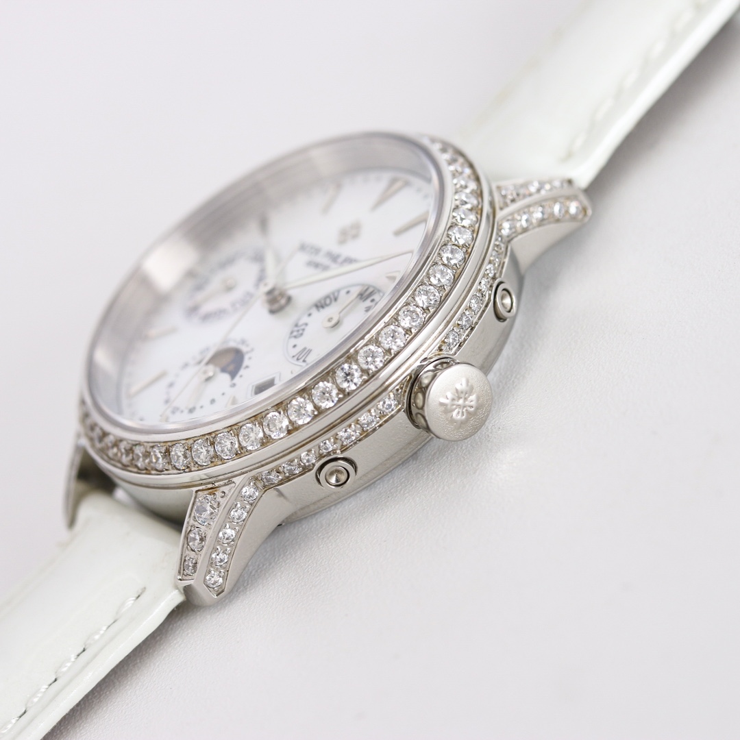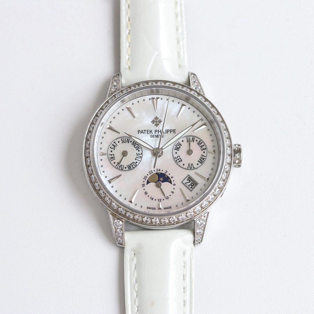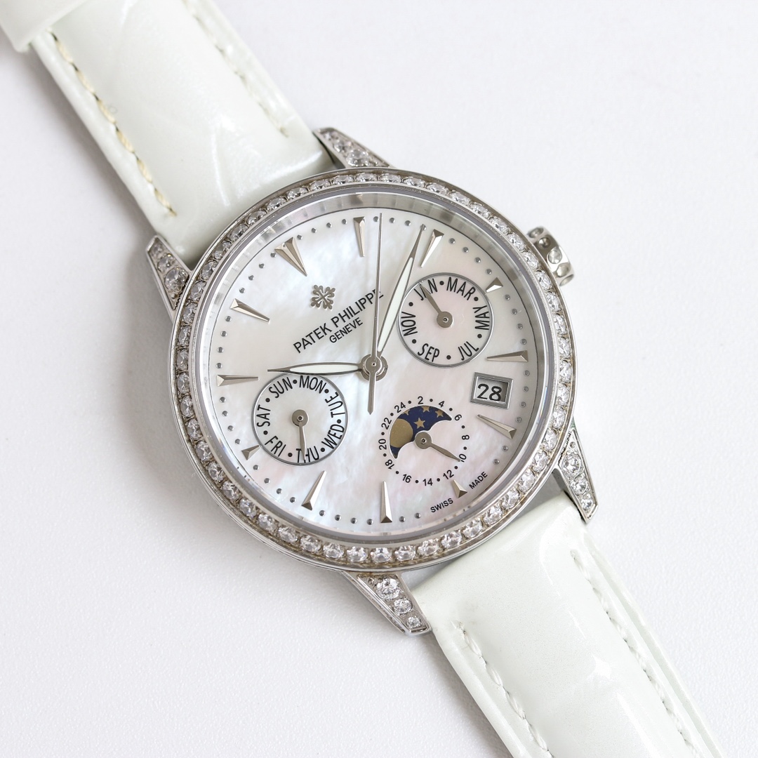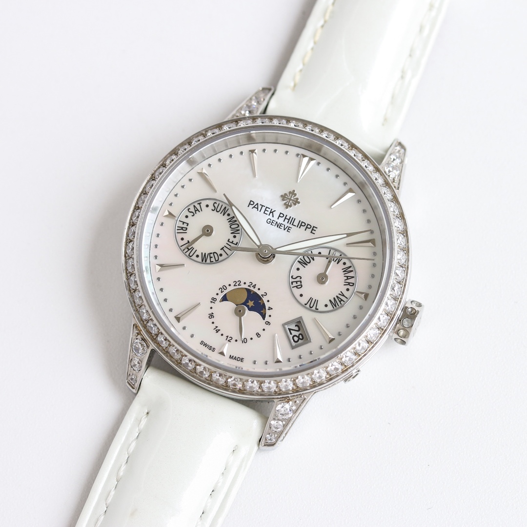 这款手表是AAAAA 1:1 质量 (非常棒). 使用了和原版一模一样的材料. 商标部分也保持了和百达翡丽/Patek Philippe一样. 图片拍摄是实物手表拍摄, 您所收到的实物保证和我们图片一模一样.