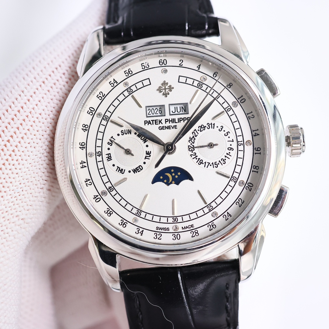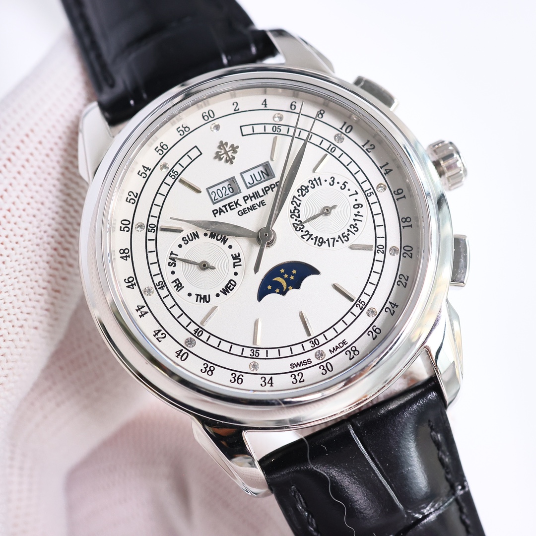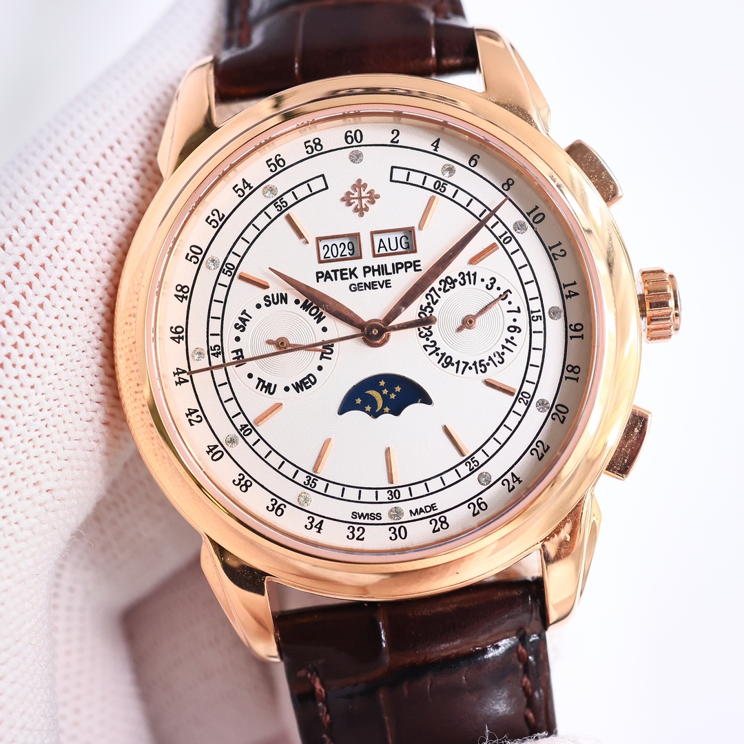 这款手表是AAAAA 1:1 质量 (非常棒). 使用了和原版一模一样的材料. 商标部分也保持了和百达翡丽/Patek Philippe一样. 图片拍摄是实物手表拍摄, 您所收到的实物保证和我们图片一模一样.