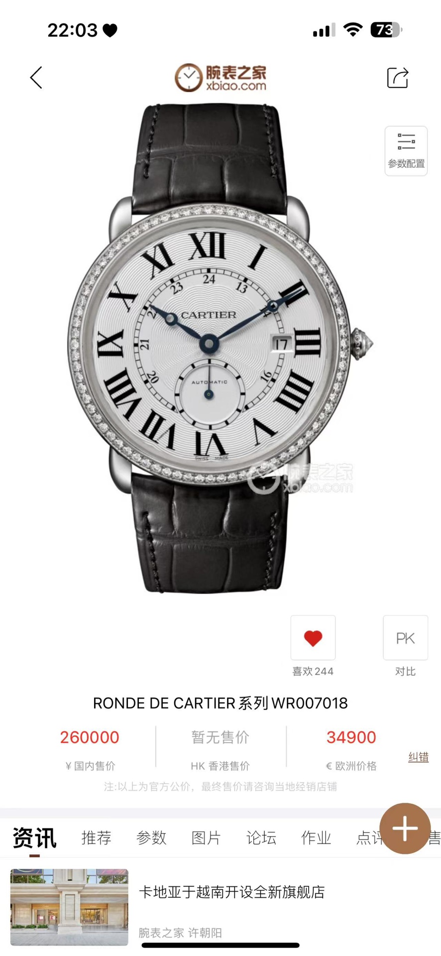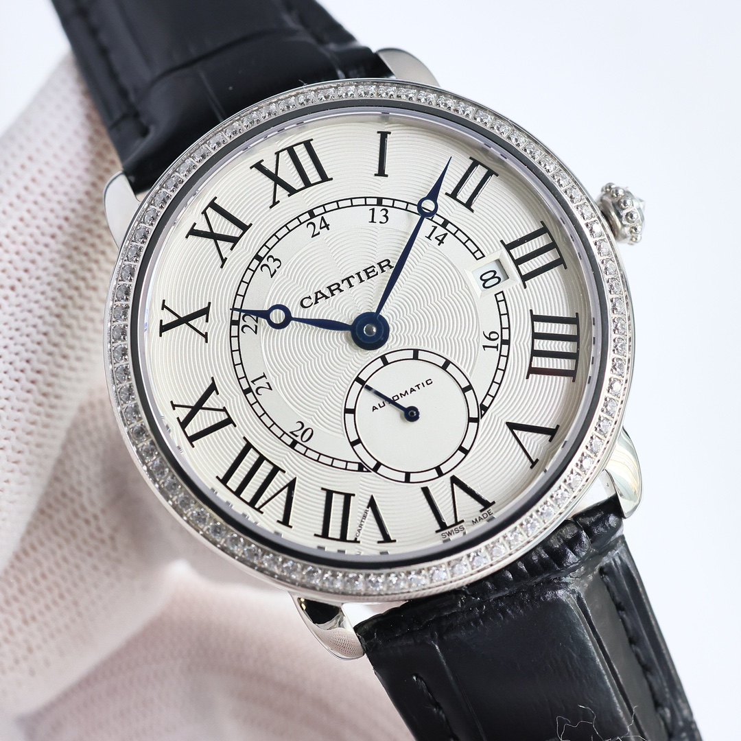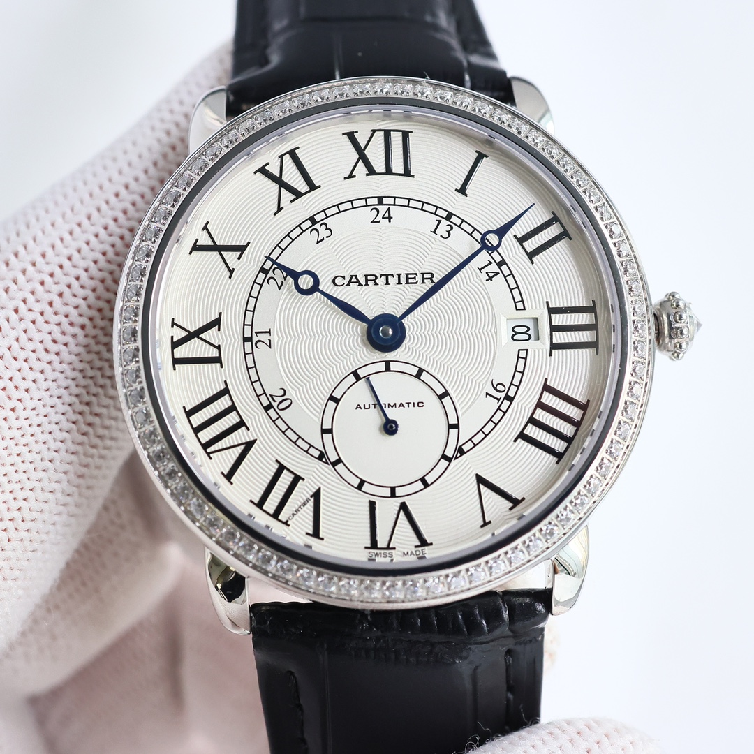 这款手表是AAAAA 1:1 质量 (非常棒). 使用了和原版一模一样的材料. 商标部分也保持了和卡地亚/Cartier一样. 图片拍摄是实物手表拍摄, 您所收到的实物保证和我们图片一模一样.