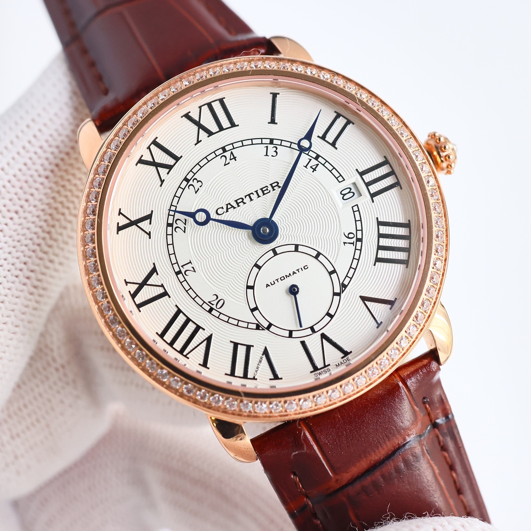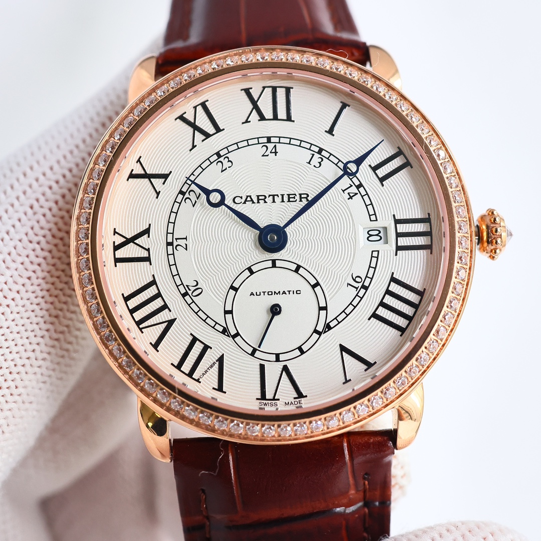 这款手表是AAAAA 1:1 质量 (非常棒). 使用了和原版一模一样的材料. 商标部分也保持了和卡地亚/Cartier一样. 图片拍摄是实物手表拍摄, 您所收到的实物保证和我们图片一模一样.