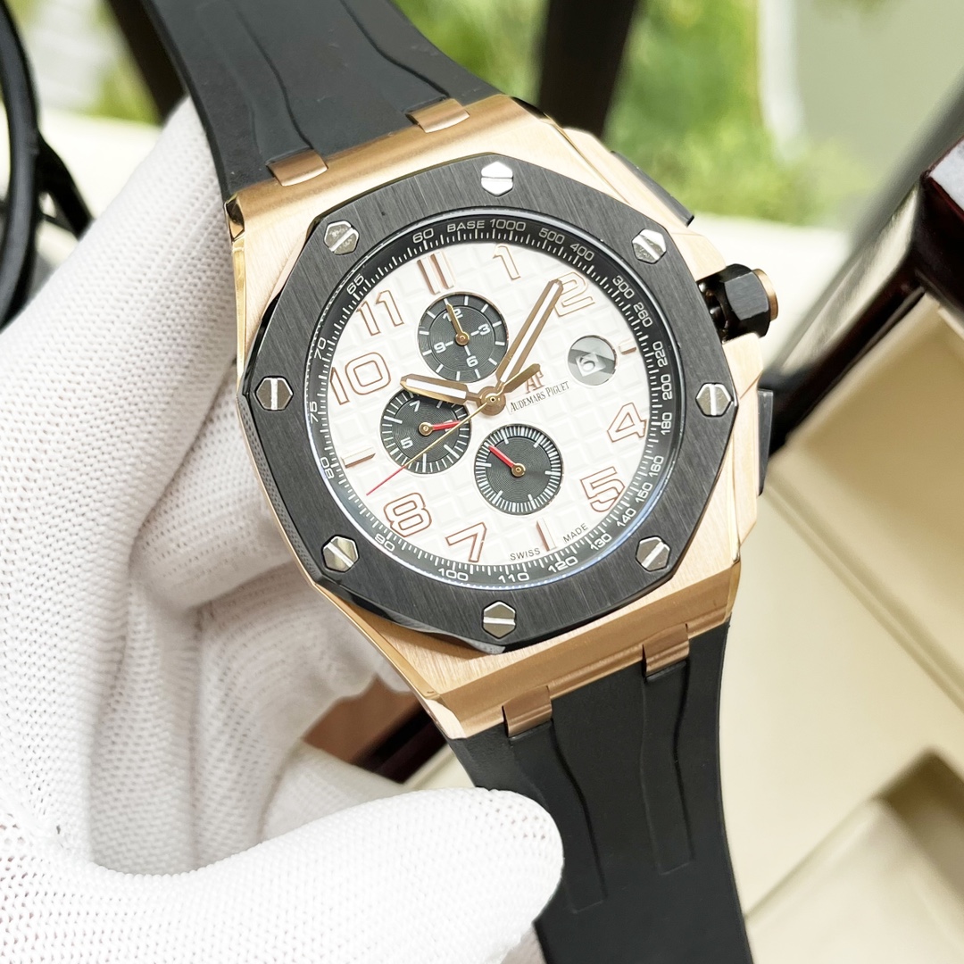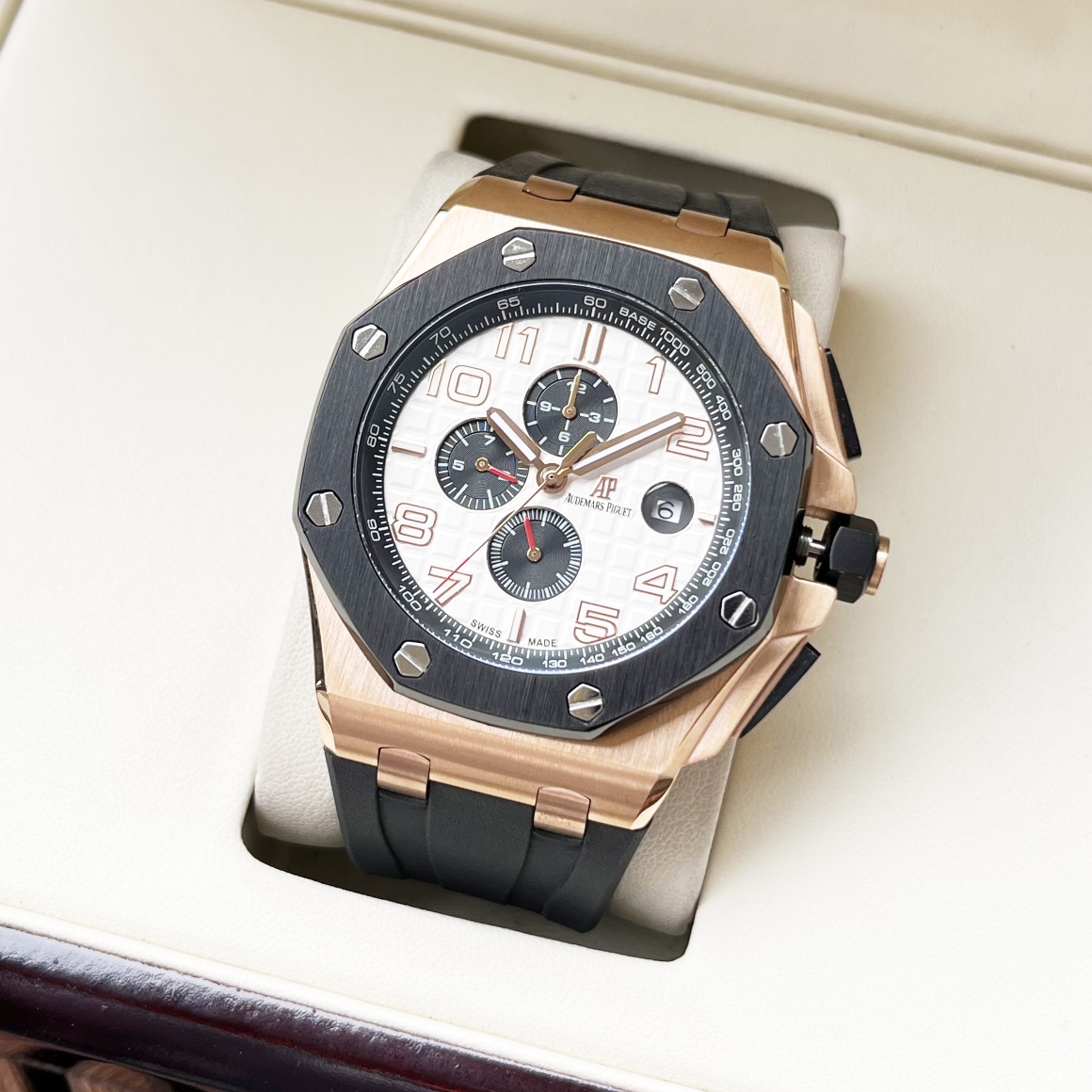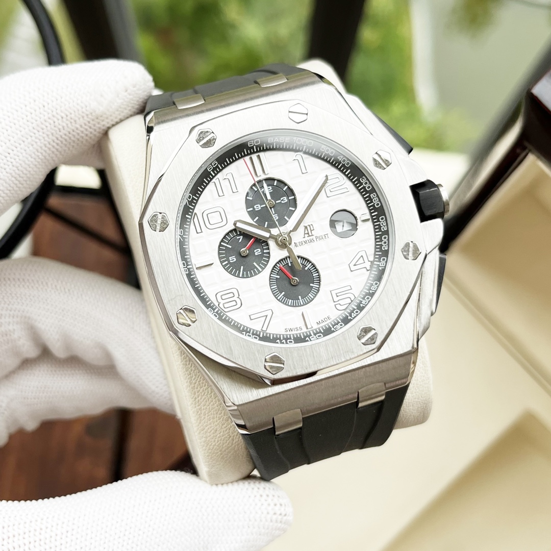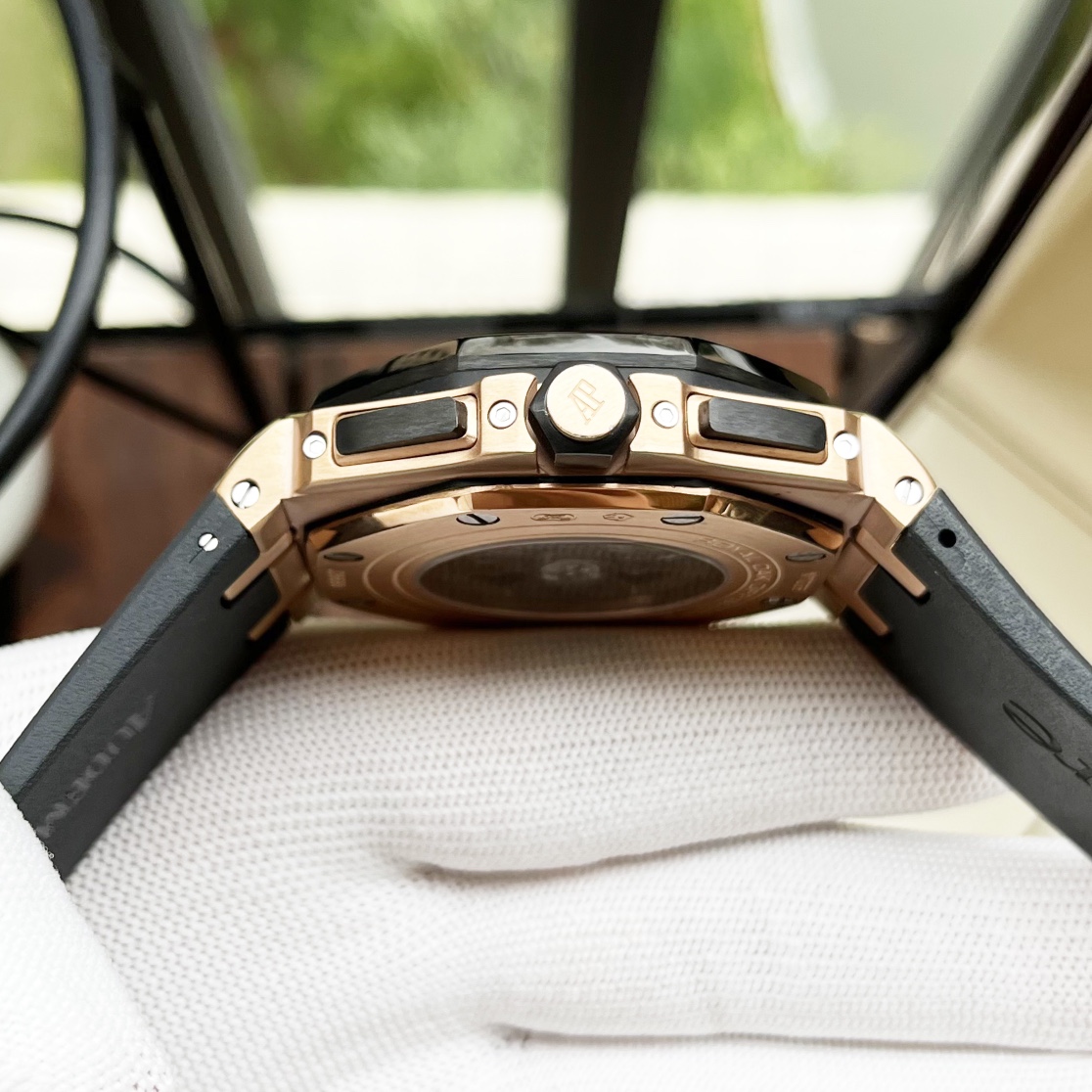 这款手表是AAAAA 1:1 质量 (非常棒). 使用了和原版一模一样的材料. 商标部分也保持了和爱彼/Audemars Piguet一样. 图片拍摄是实物手表拍摄, 您所收到的实物保证和我们图片一模一样.