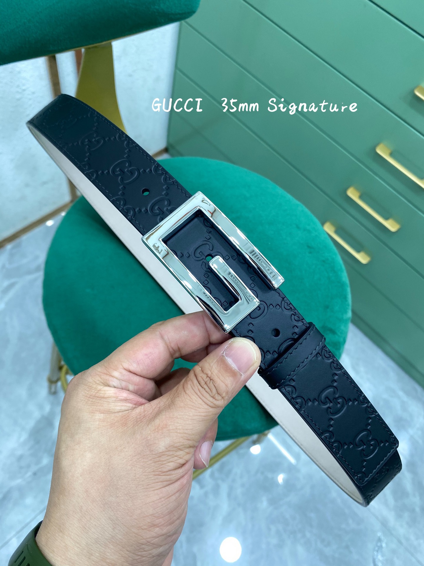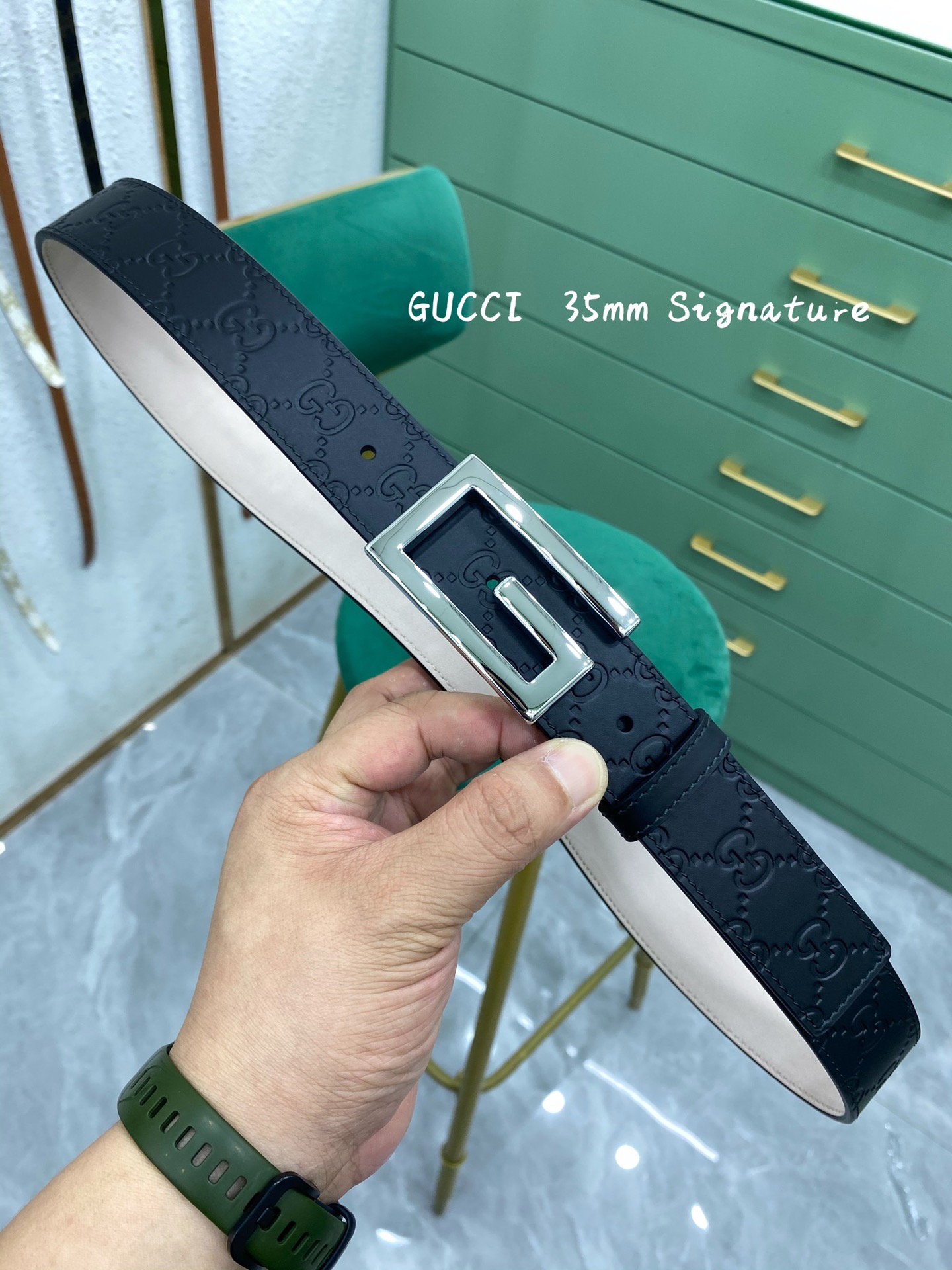 这款皮带是AAAAA 1:1 质量 (非常棒). 使用了和原版一模一样的材料. 商标部分也保持了和古奇/Gucci一样. 图片拍摄是实物皮带拍摄, 您所收到的实物保证和我们图片一模一样.
