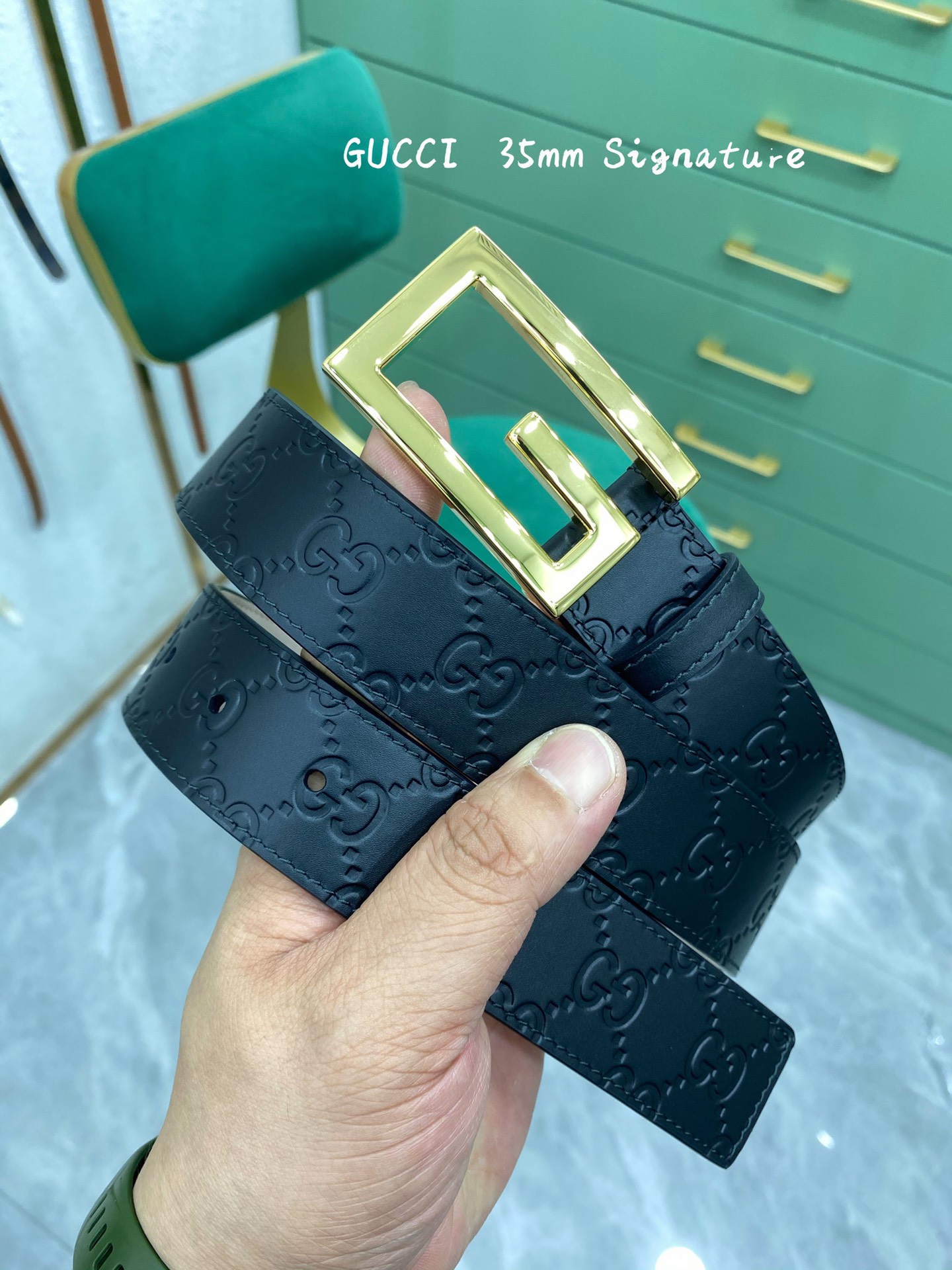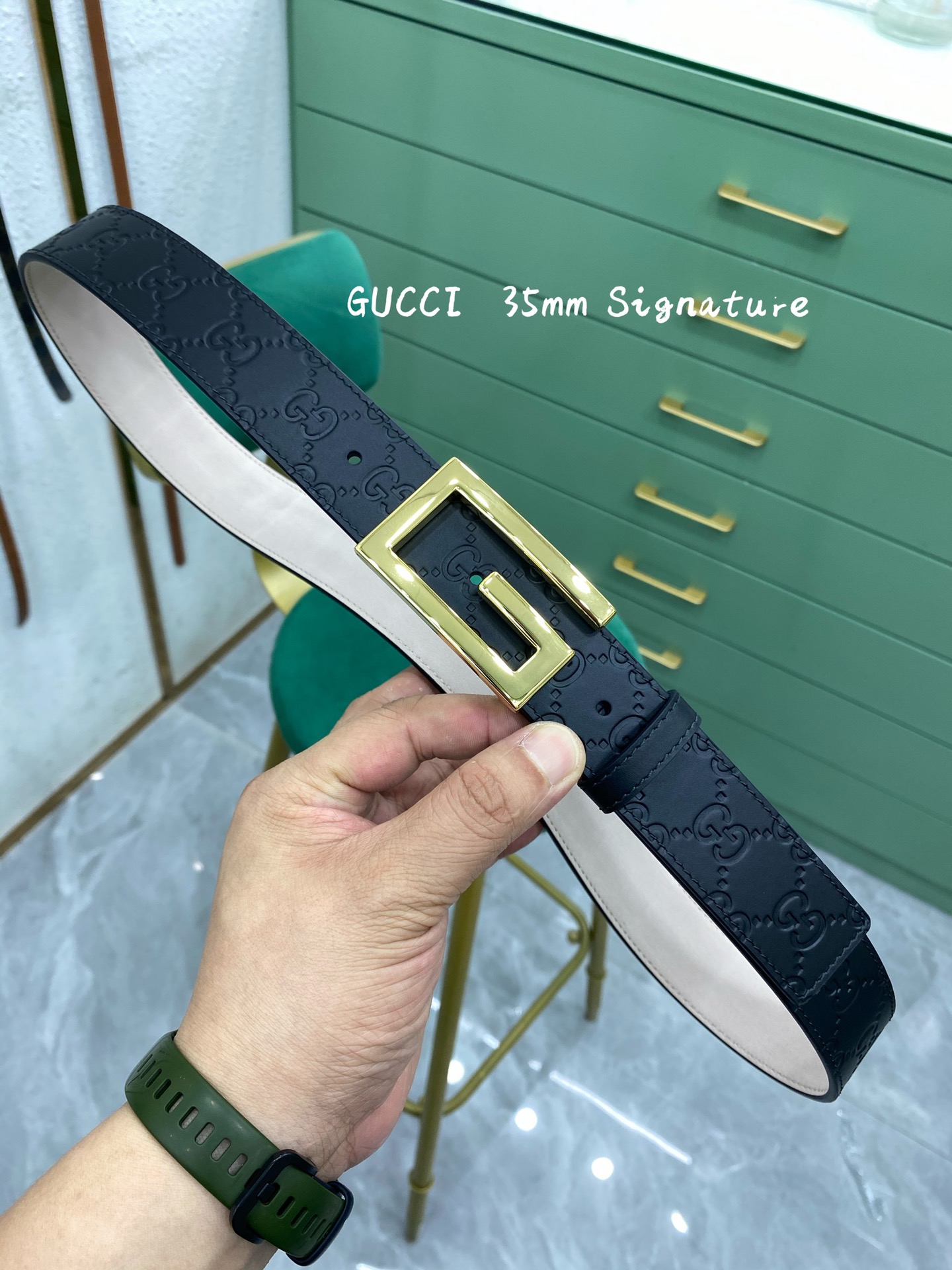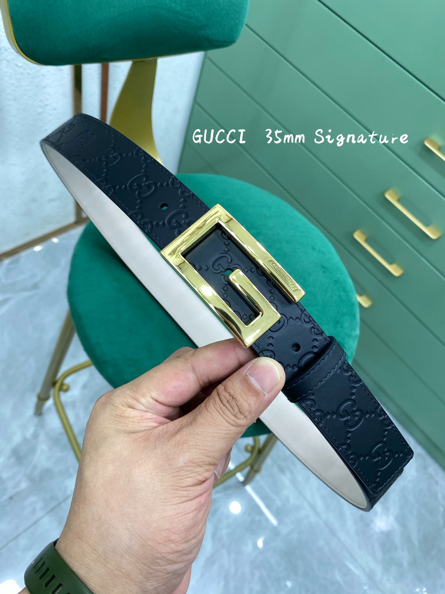 这款皮带是AAAAA 1:1 质量 (非常棒). 使用了和原版一模一样的材料. 商标部分也保持了和古奇/Gucci一样. 图片拍摄是实物皮带拍摄, 您所收到的实物保证和我们图片一模一样.