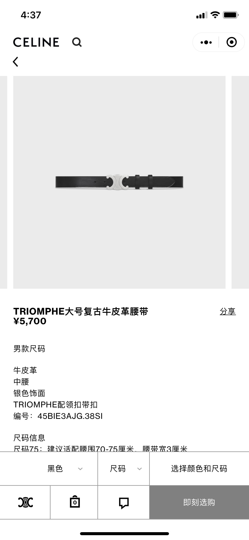 这款皮带是AAAAA 1:1 质量 (非常棒). 使用了和原版一模一样的材料. 商标部分也保持了和思琳/Celine一样. 图片拍摄是实物皮带拍摄, 您所收到的实物保证和我们图片一模一样.