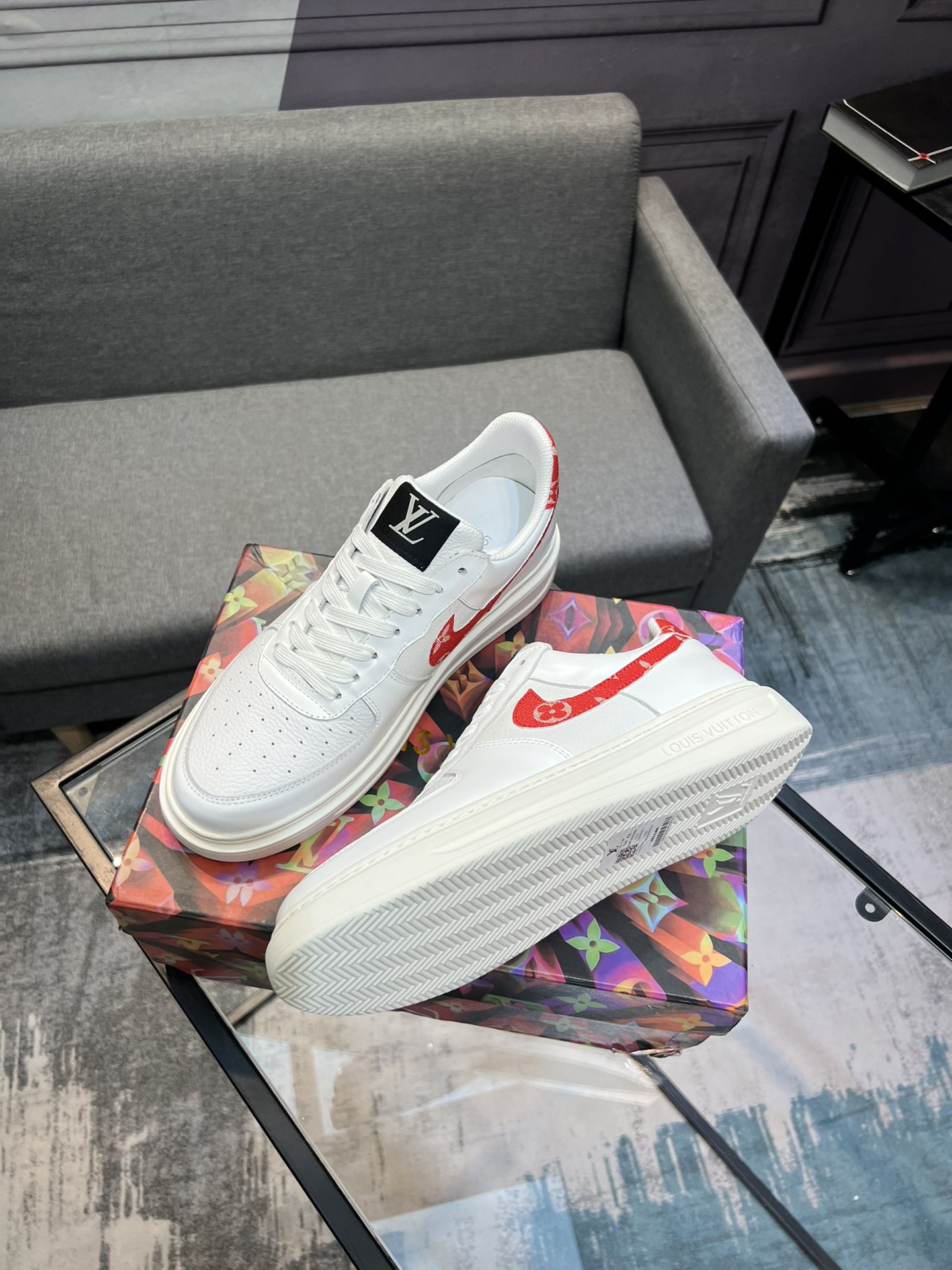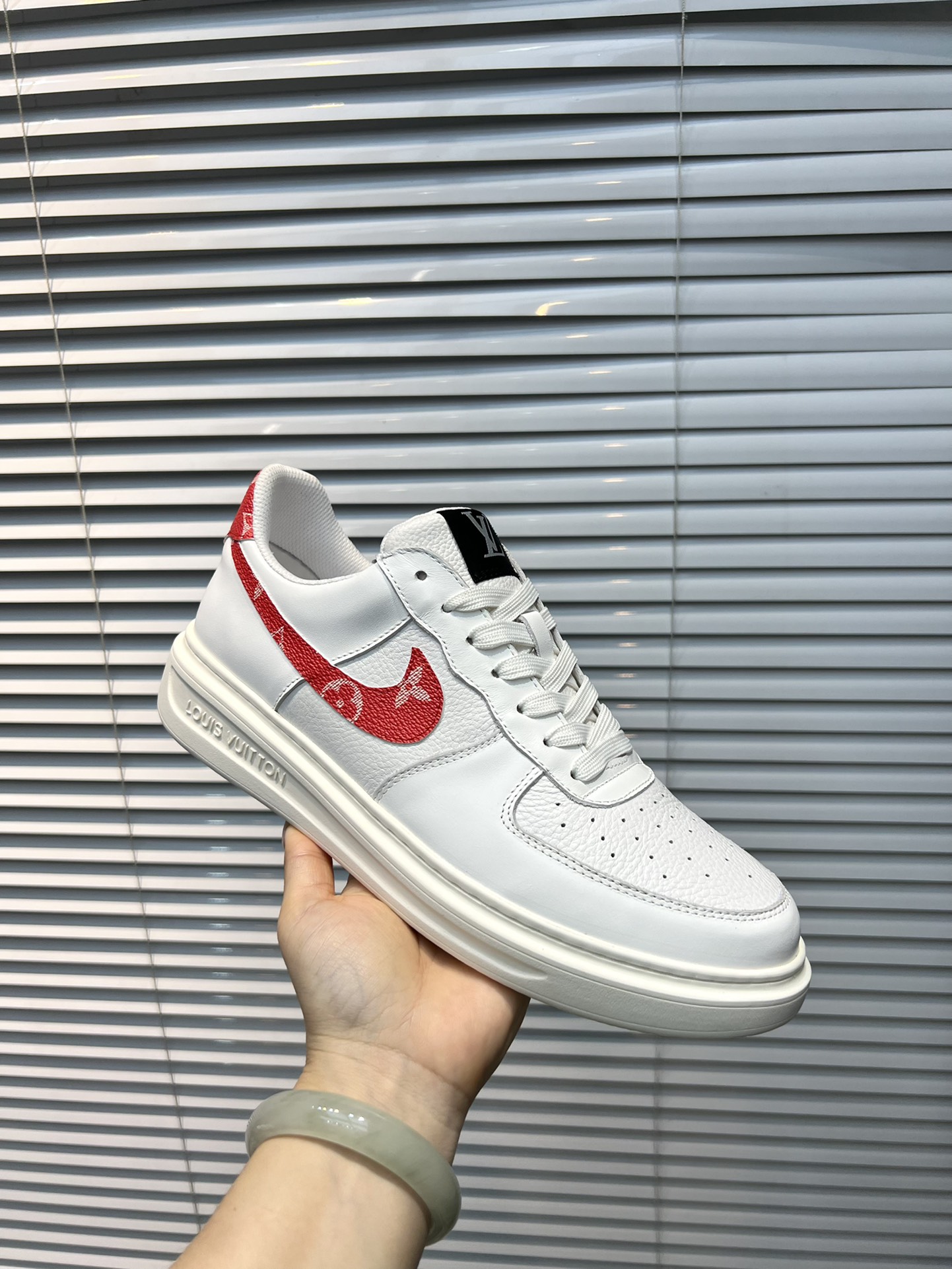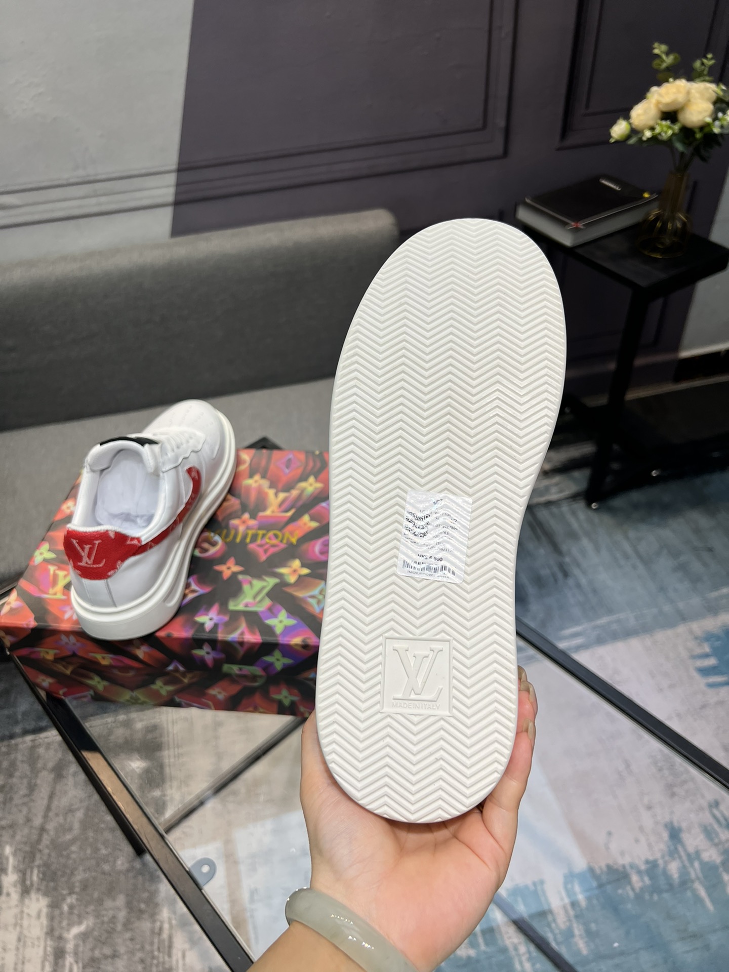 这款鞋子是AAAAA 1:1 质量 (非常棒). 使用了和原版一模一样的材料. 商标部分也保持了和路易威登/Louis Vuitton一样. 图片拍摄是实物鞋子拍摄, 您所收到的实物保证和我们图片一模一样.