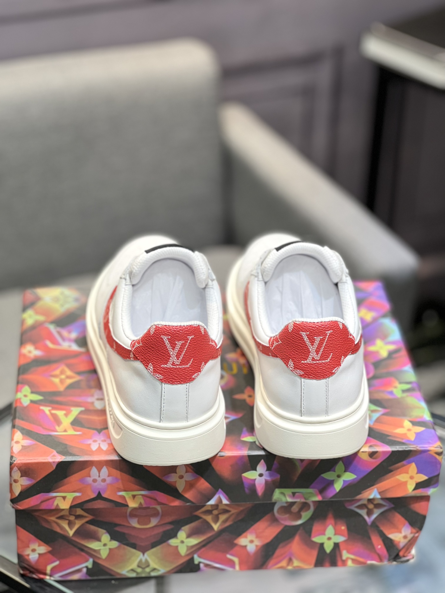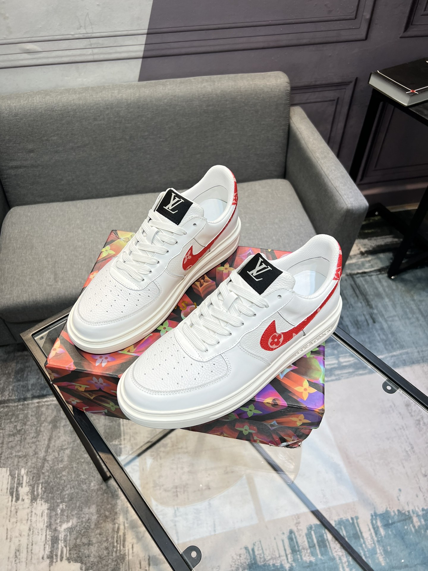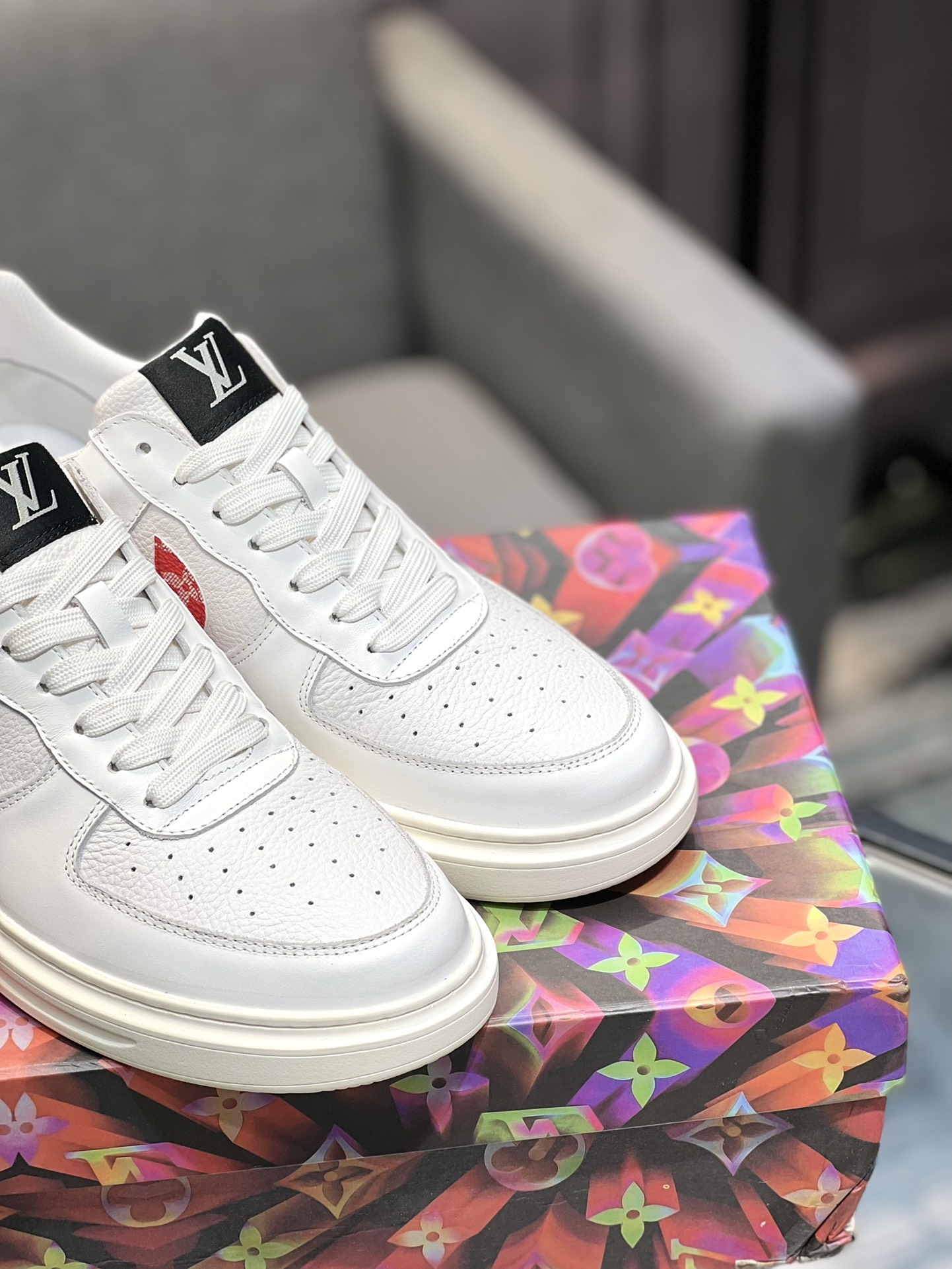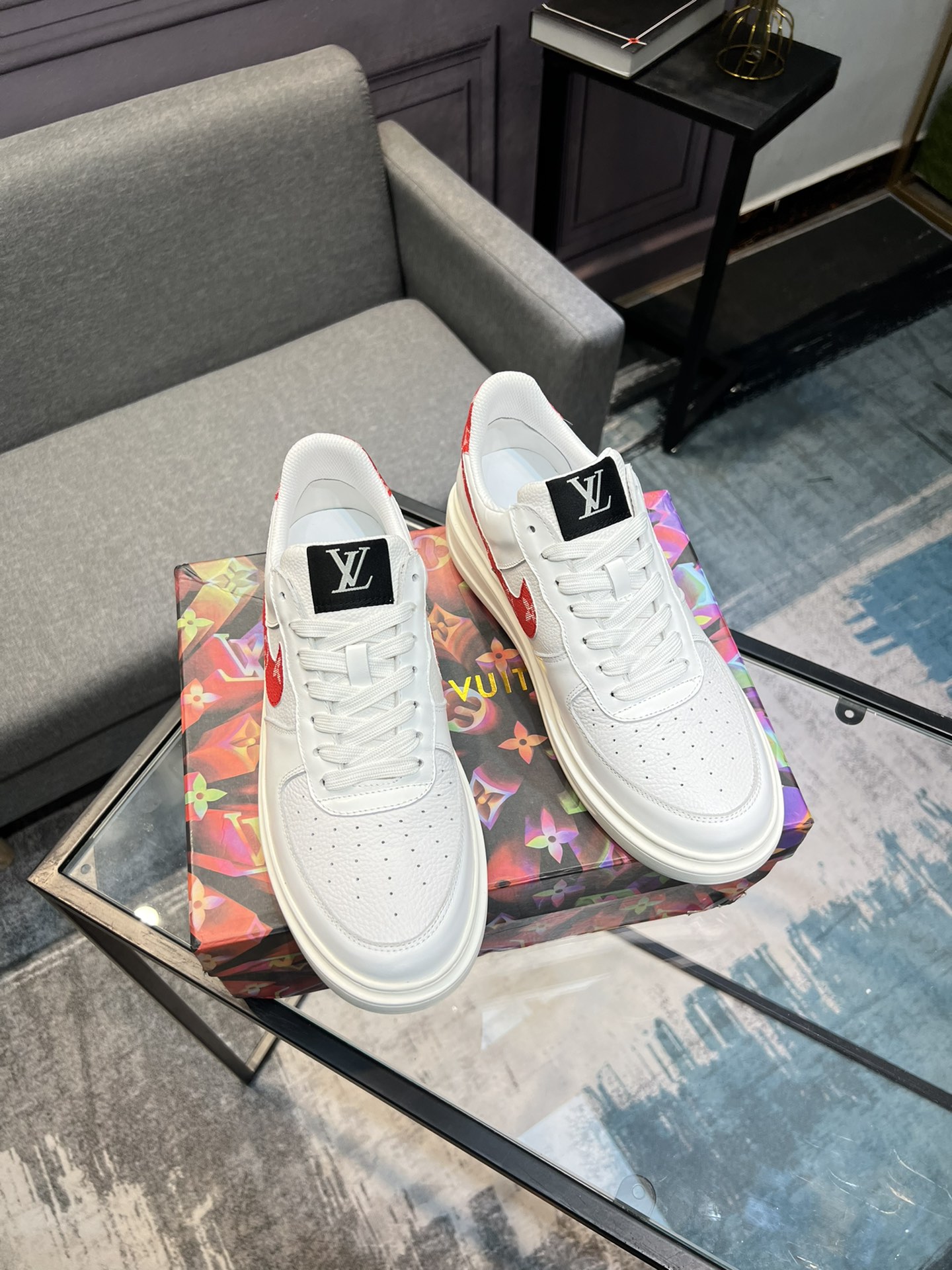 这款鞋子是AAAAA 1:1 质量 (非常棒). 使用了和原版一模一样的材料. 商标部分也保持了和路易威登/Louis Vuitton一样. 图片拍摄是实物鞋子拍摄, 您所收到的实物保证和我们图片一模一样.