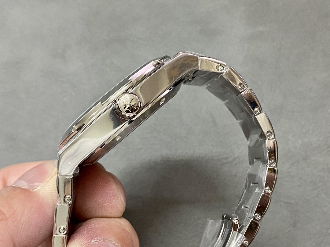 这款手表是AAAAA 1:1 质量 (非常棒). 使用了和原版一模一样的材料. 商标部分也保持了和江诗丹顿/Vacheron Constantin一样. 图片拍摄是实物手表拍摄, 您所收到的实物保证和我们图片一模一样.