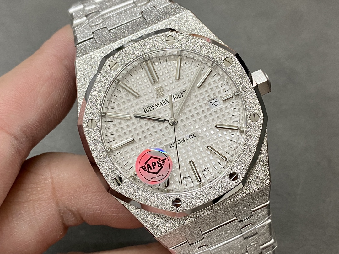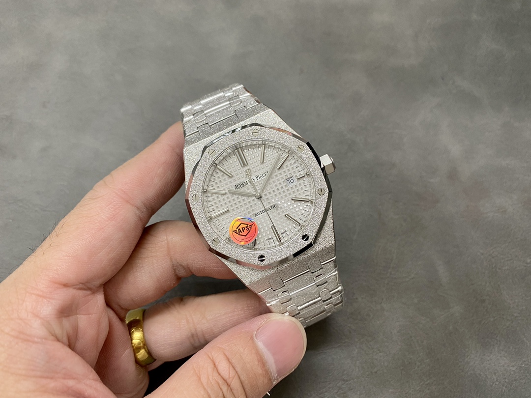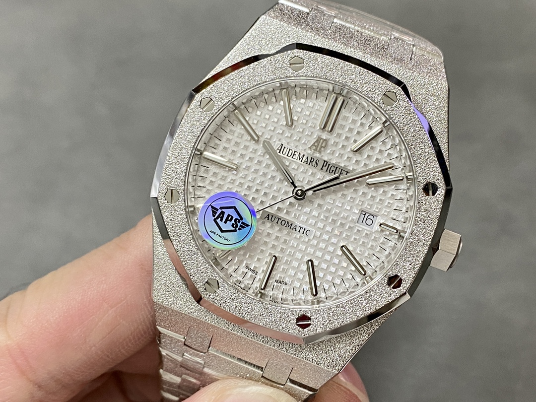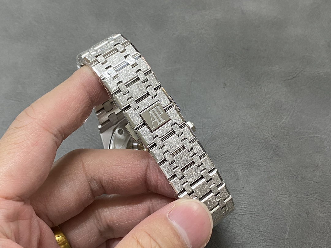 这款手表是AAAAA 1:1 质量 (非常棒). 使用了和原版一模一样的材料. 商标部分也保持了和爱彼/Audemars Piguet一样. 图片拍摄是实物手表拍摄, 您所收到的实物保证和我们图片一模一样.