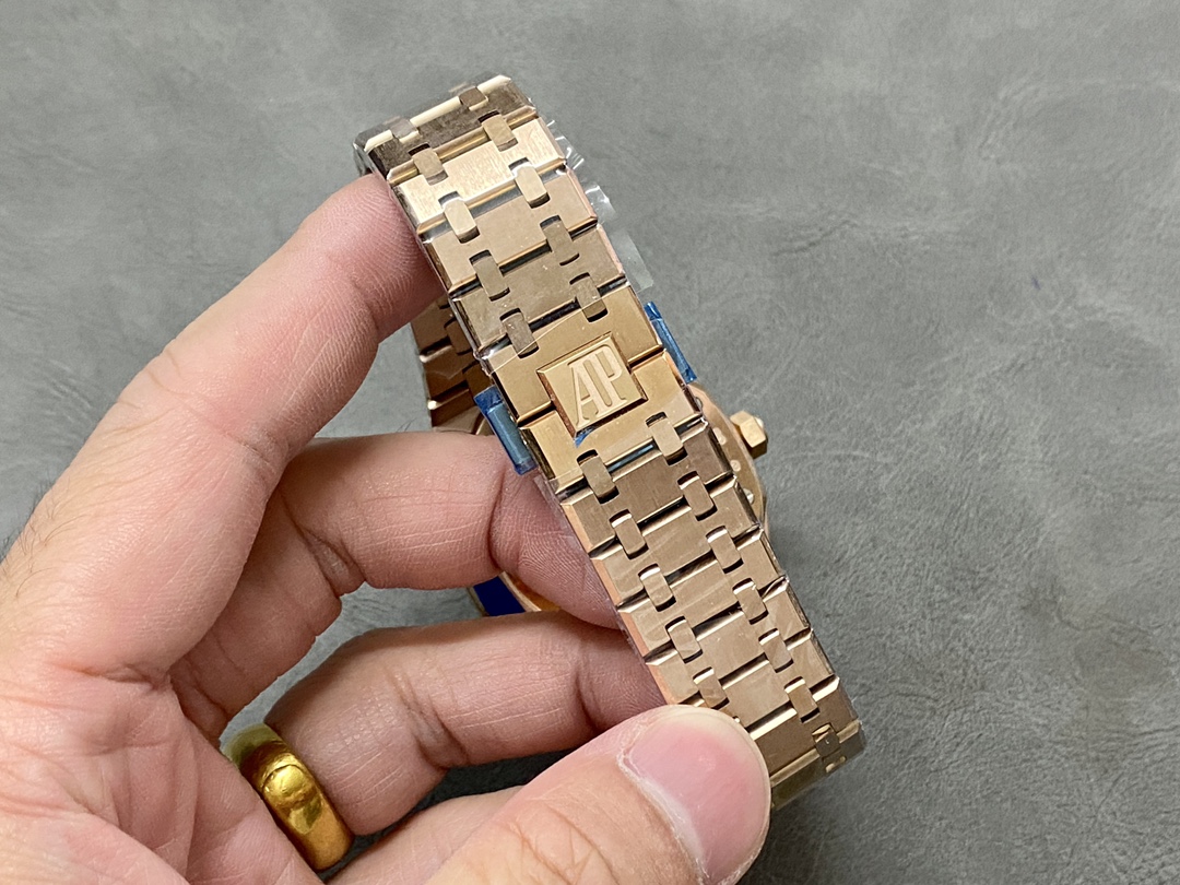 这款手表是AAAAA 1:1 质量 (非常棒). 使用了和原版一模一样的材料. 商标部分也保持了和爱彼/Audemars Piguet一样. 图片拍摄是实物手表拍摄, 您所收到的实物保证和我们图片一模一样.