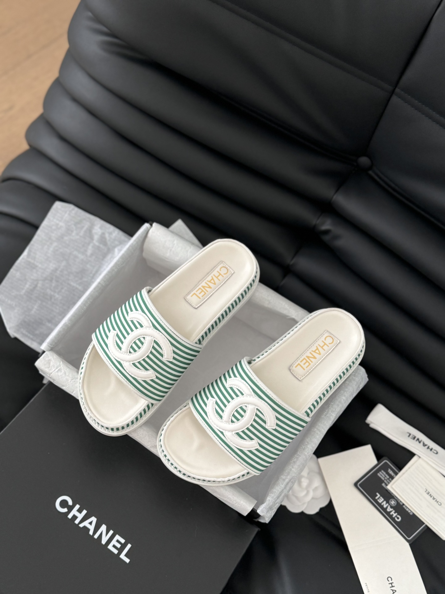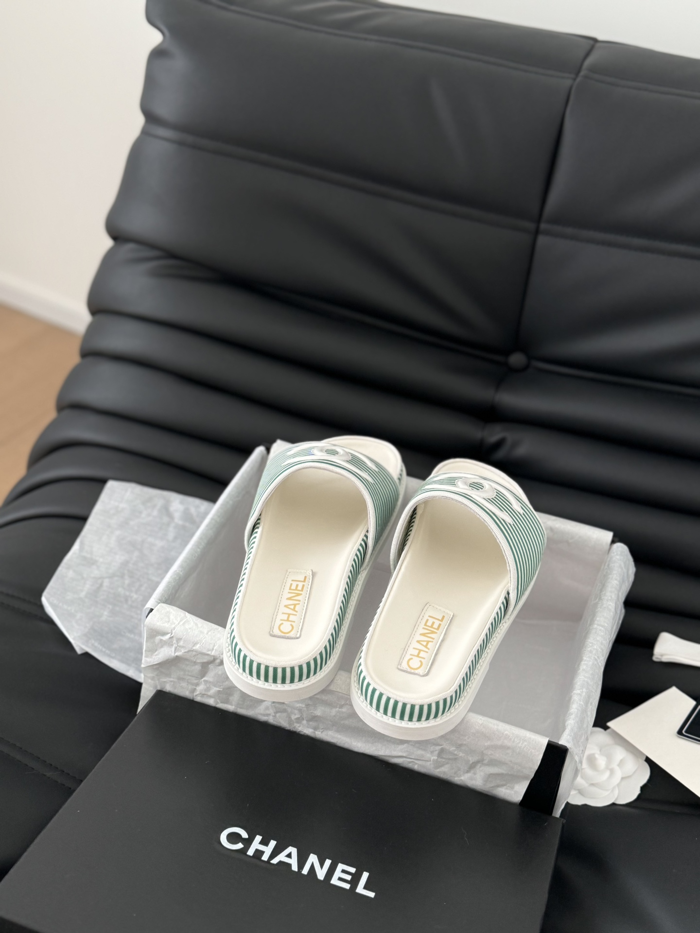 这款鞋子是AAAAA 1:1 质量 (非常棒). 使用了和原版一模一样的材料. 商标部分也保持了和香奈儿/Chanel一样. 图片拍摄是实物鞋子拍摄, 您所收到的实物保证和我们图片一模一样.