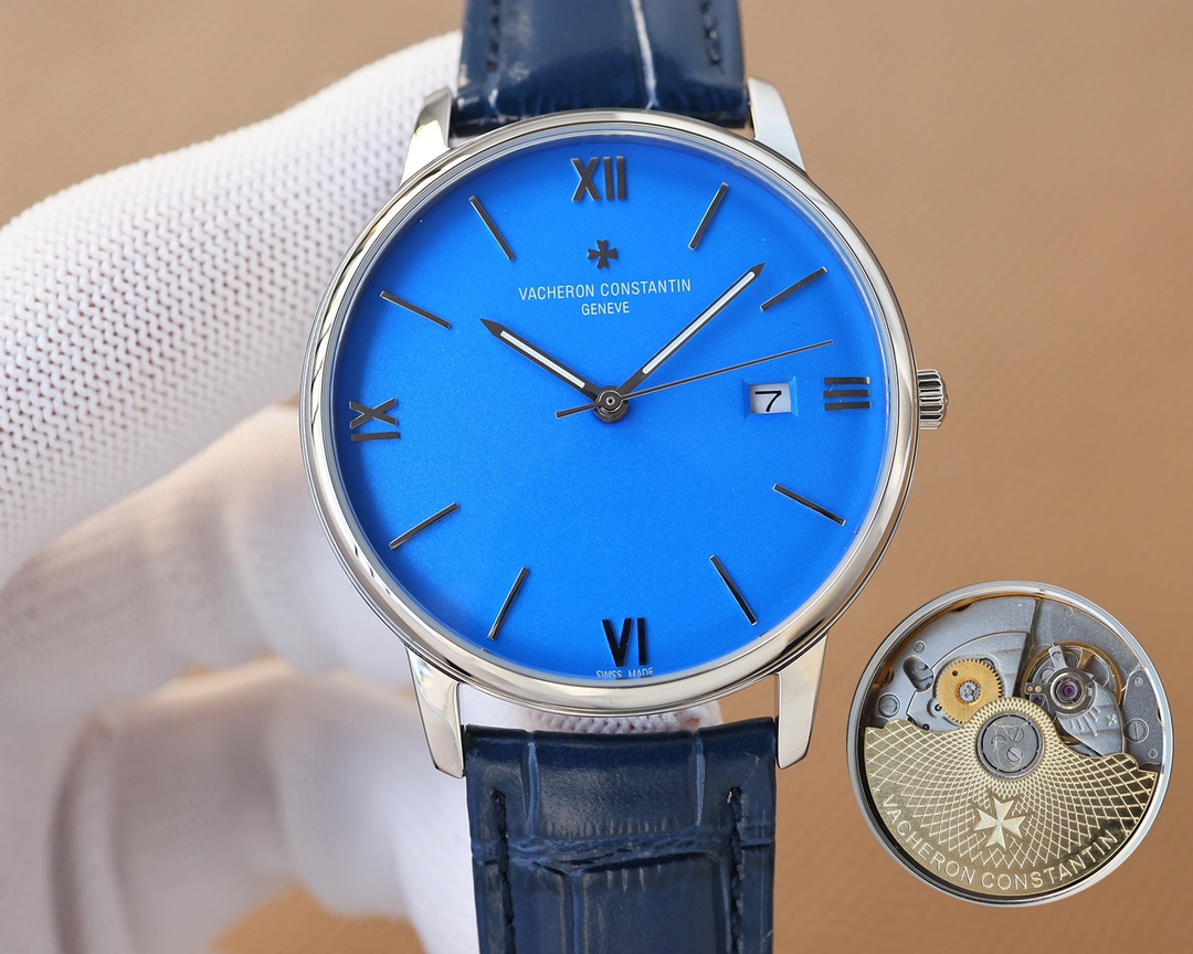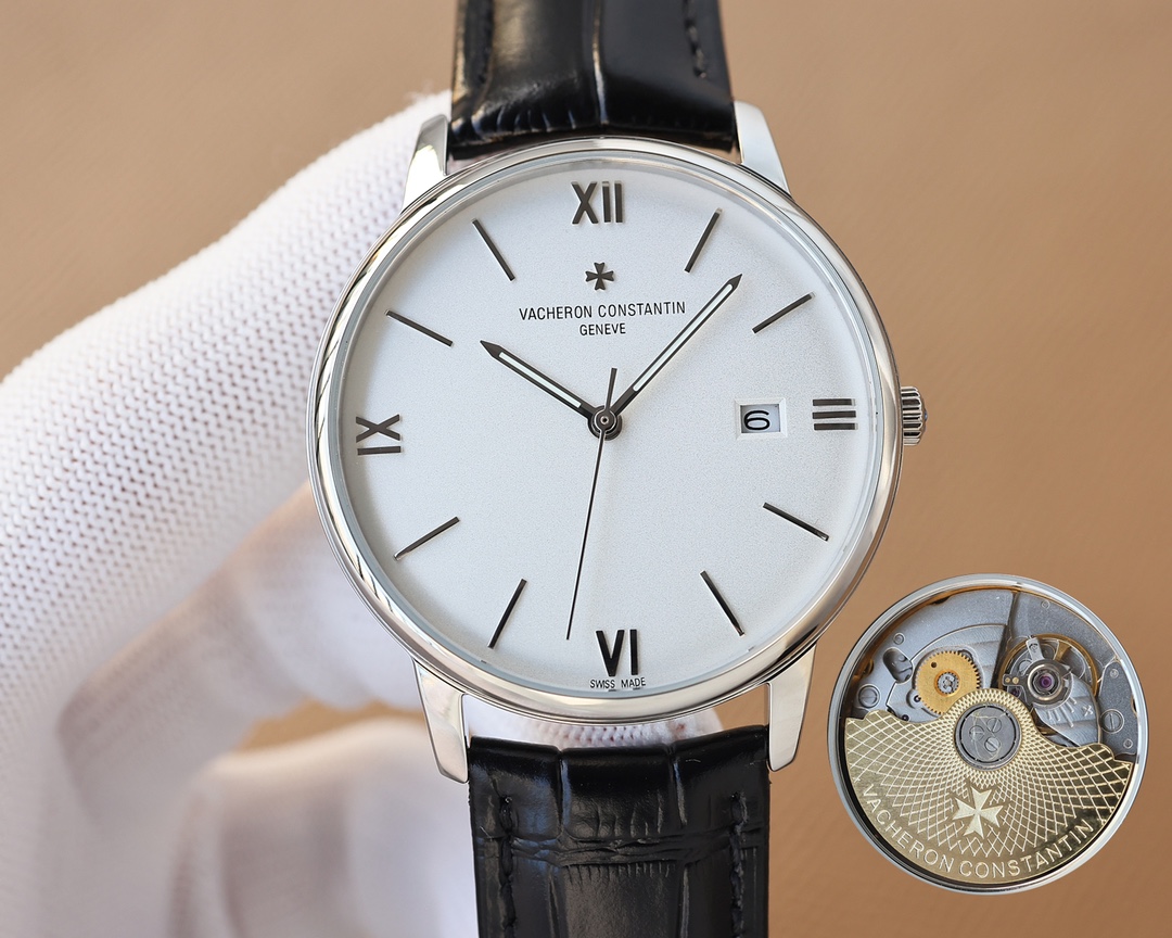 这款手表是AAAAA 1:1 质量 (非常棒). 使用了和原版一模一样的材料. 商标部分也保持了和江诗丹顿/Vacheron Constantin一样. 图片拍摄是实物手表拍摄, 您所收到的实物保证和我们图片一模一样.