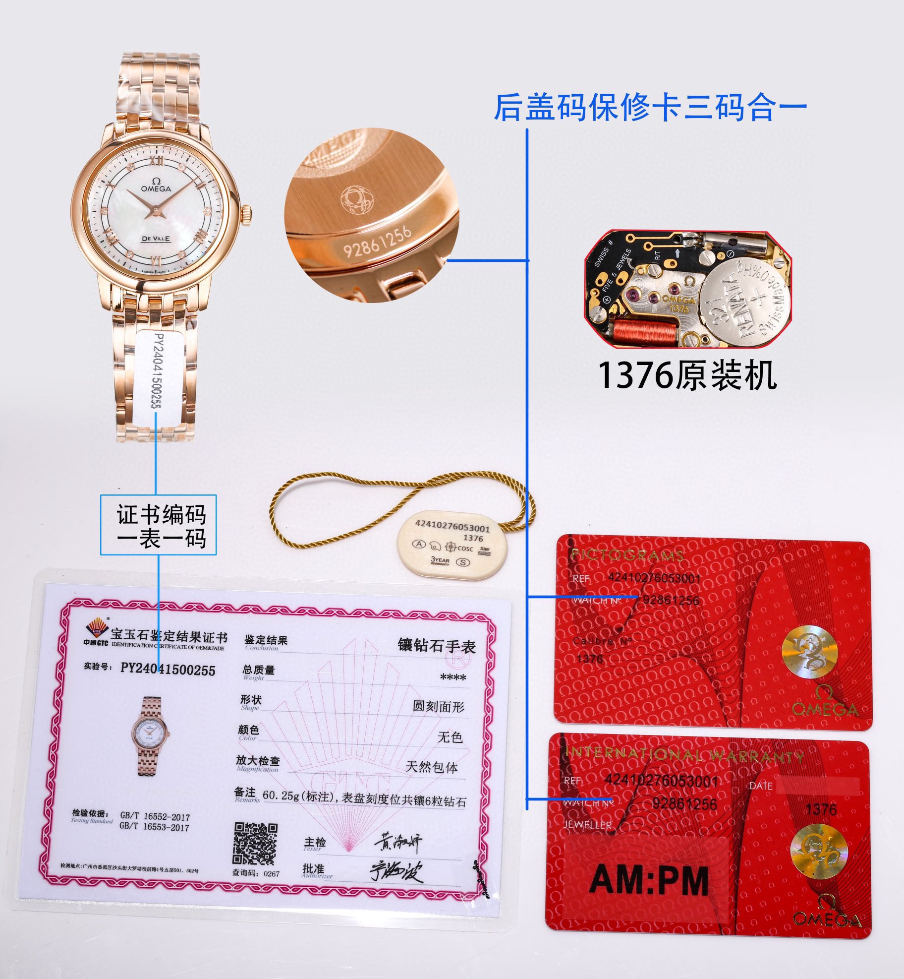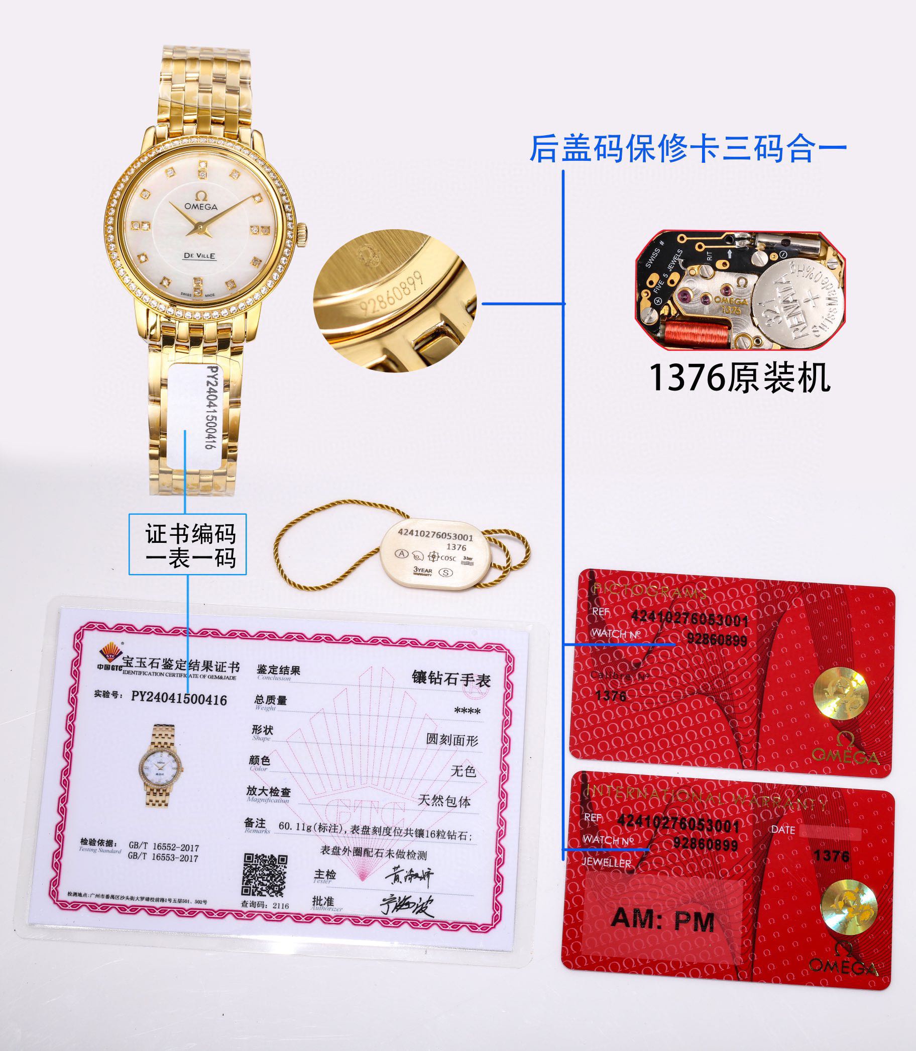 这款手表是AAAAA 1:1 质量 (非常棒). 使用了和原版一模一样的材料. 商标部分也保持了和欧米茄/Omega一样. 图片拍摄是实物手表拍摄, 您所收到的实物保证和我们图片一模一样.