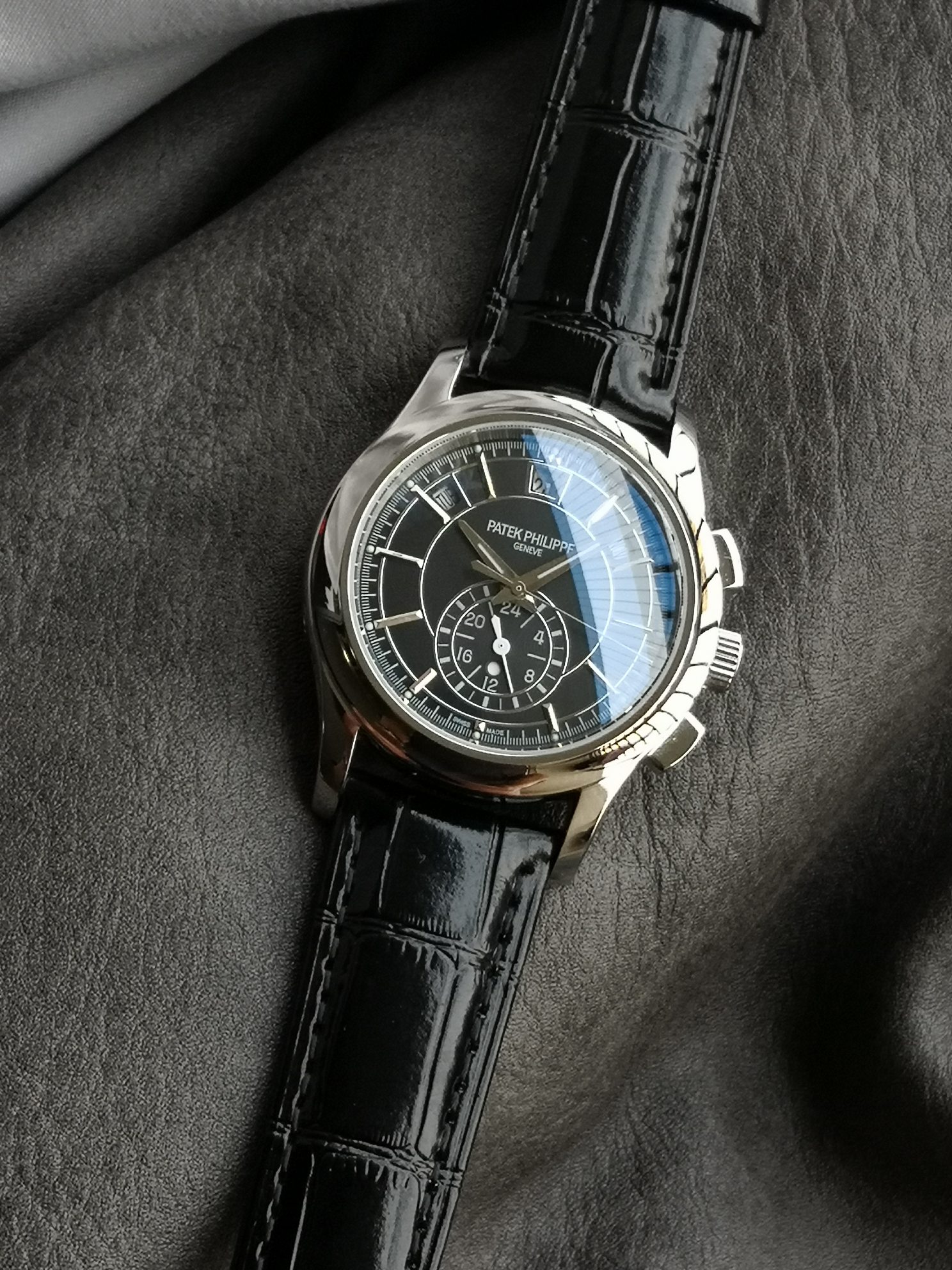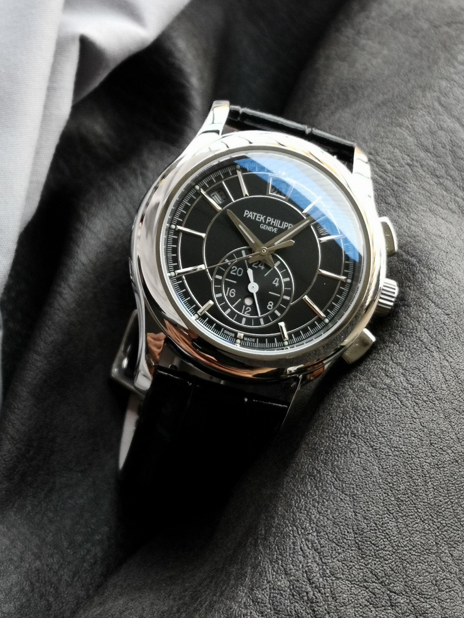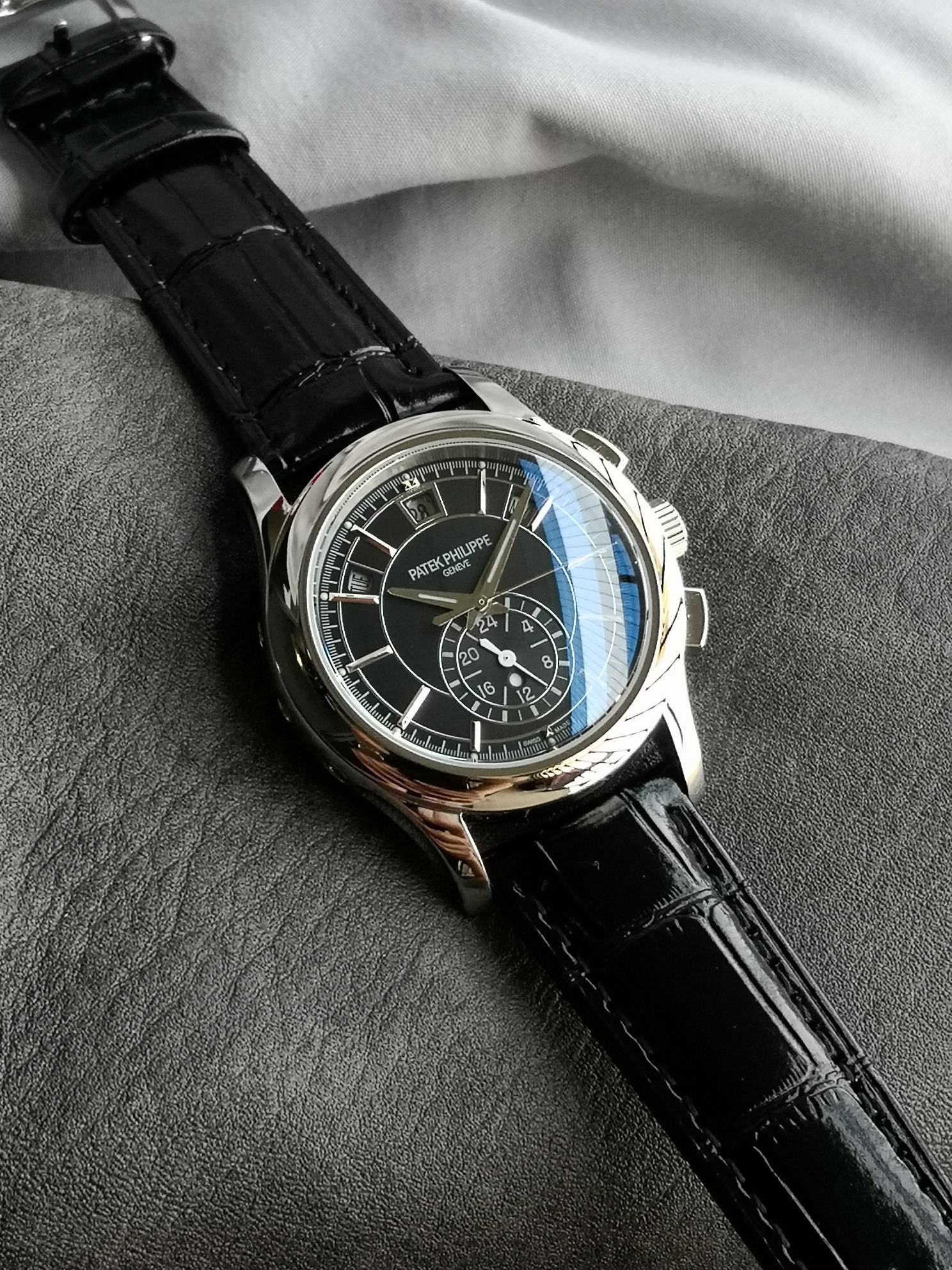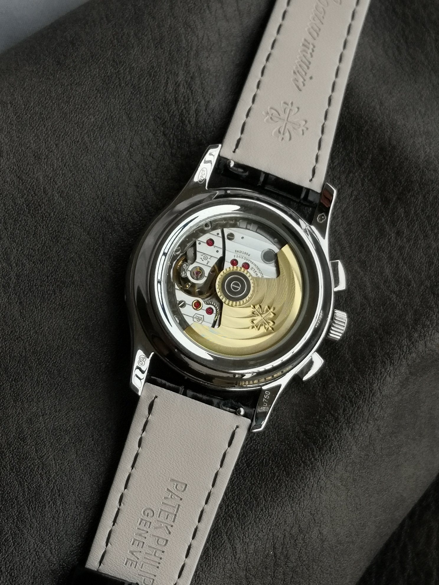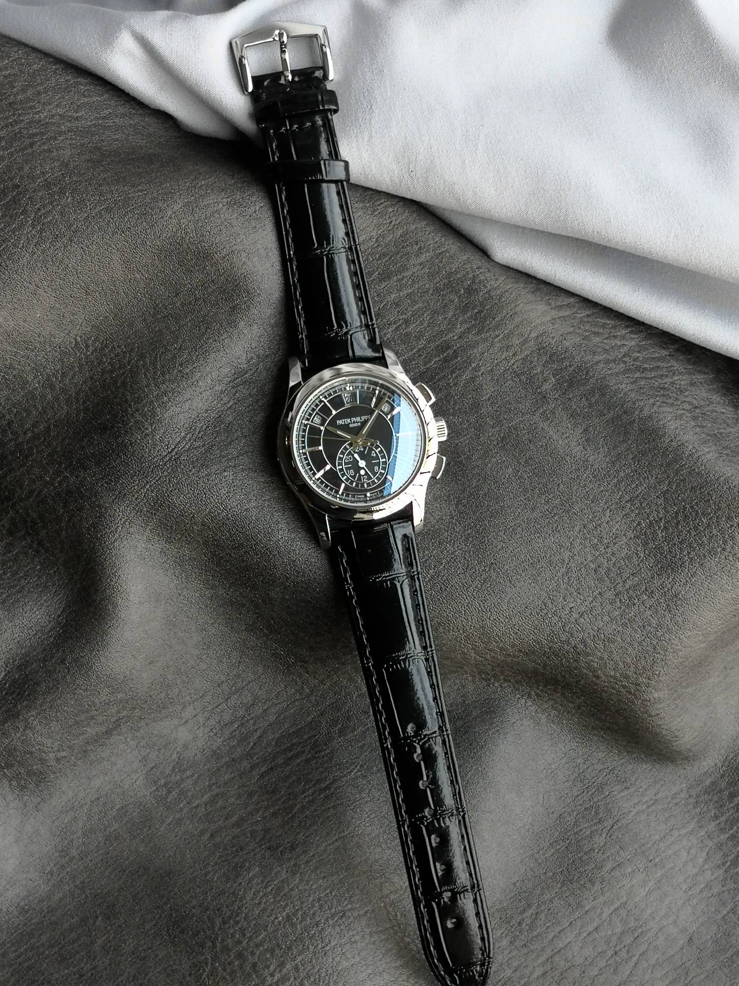 这款手表是AAAAA 1:1 质量 (非常棒). 使用了和原版一模一样的材料. 商标部分也保持了和百达翡丽/Patek Philippe一样. 图片拍摄是实物手表拍摄, 您所收到的实物保证和我们图片一模一样.