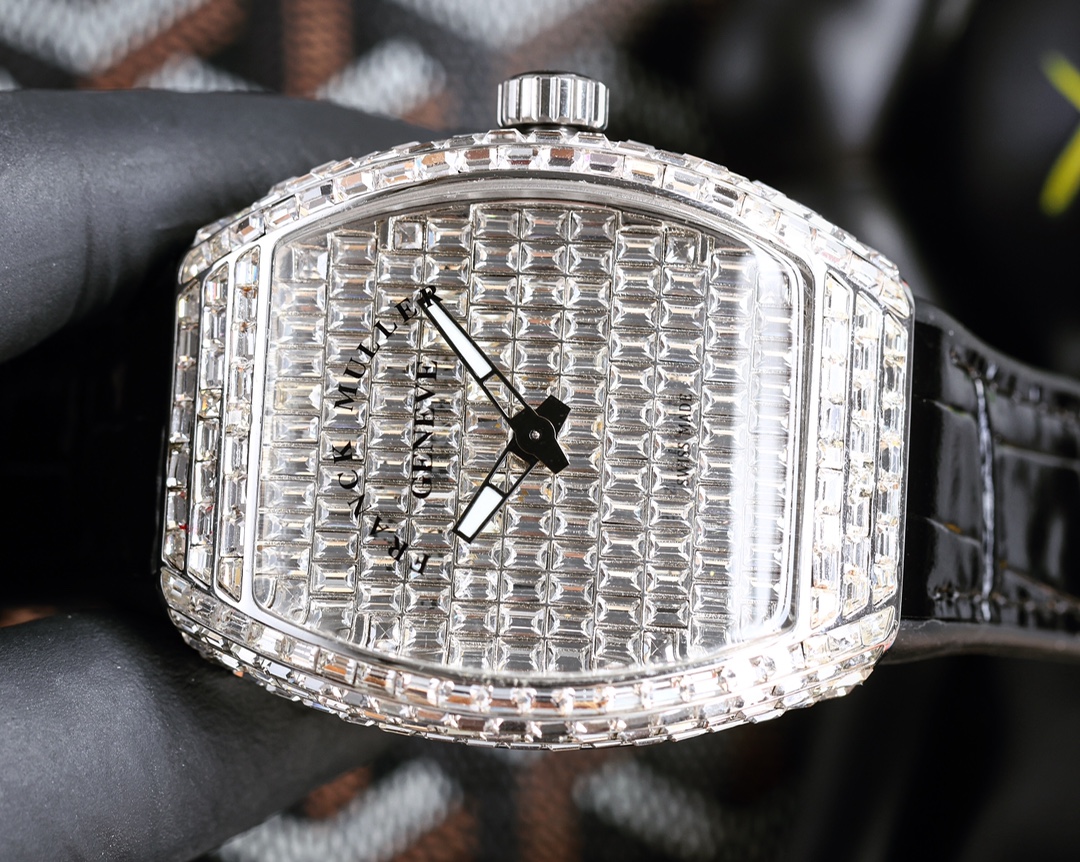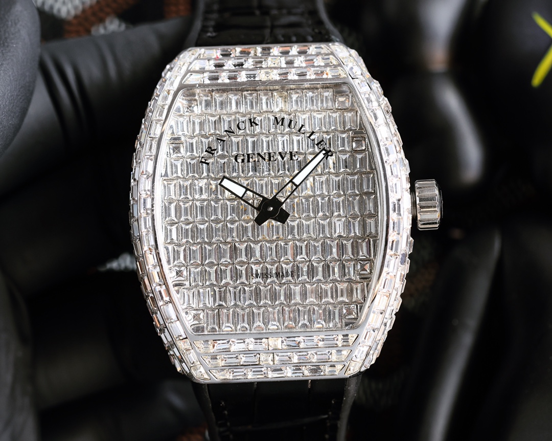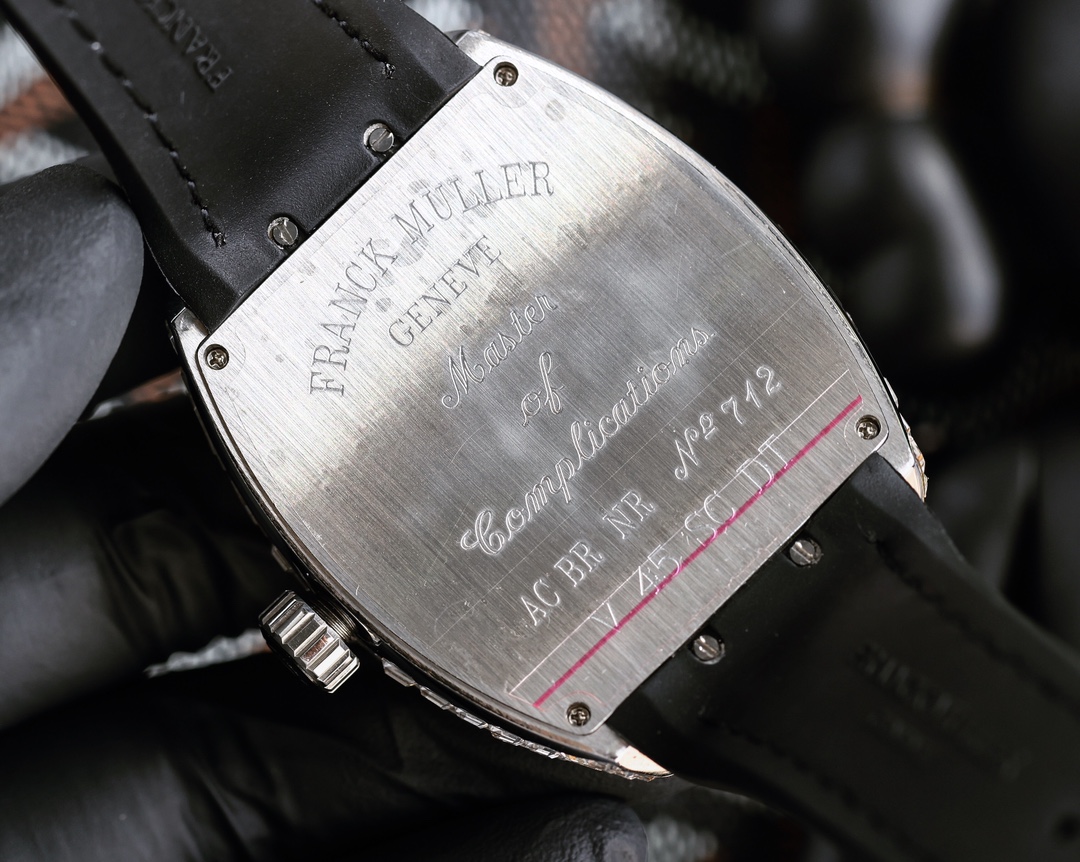 这款手表是AAAAA 1:1 质量 (非常棒). 使用了和原版一模一样的材料. 商标部分也保持了和Franck Mulle一样. 图片拍摄是实物手表拍摄, 您所收到的实物保证和我们图片一模一样.