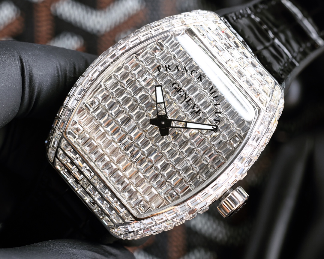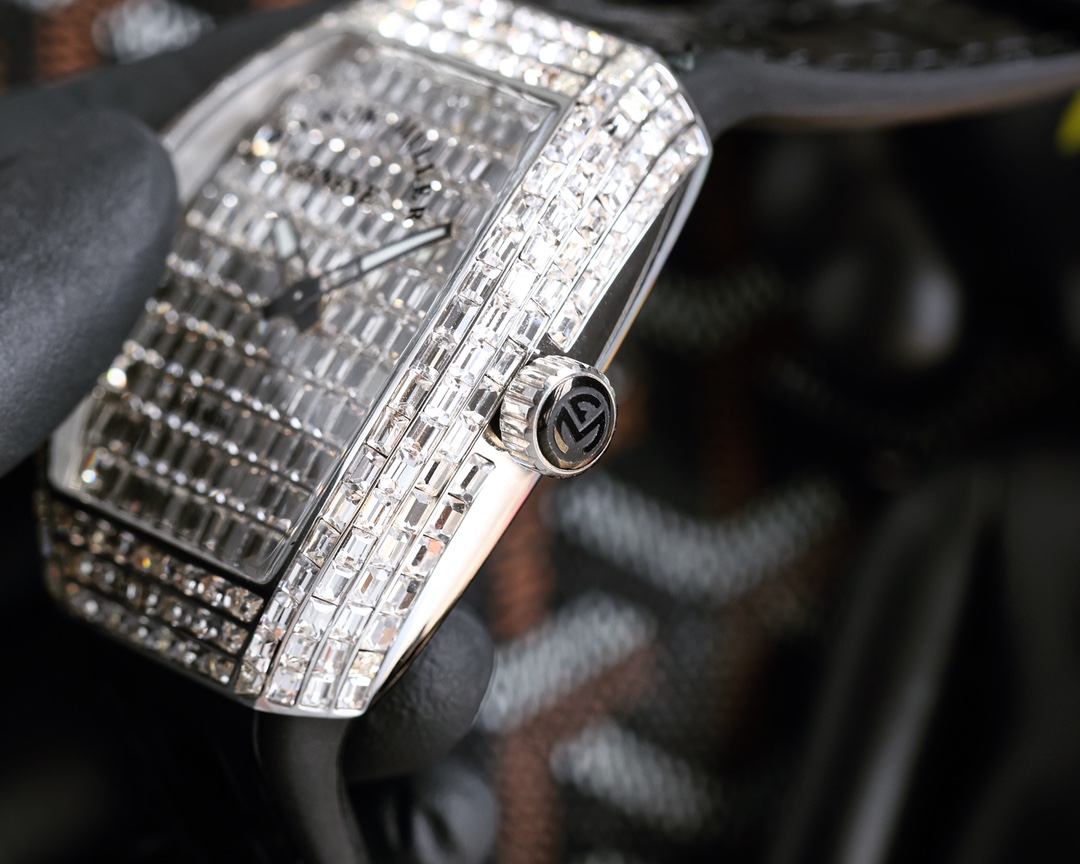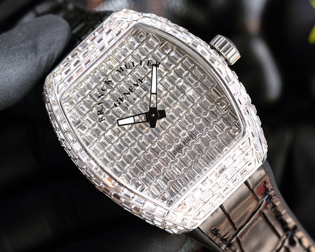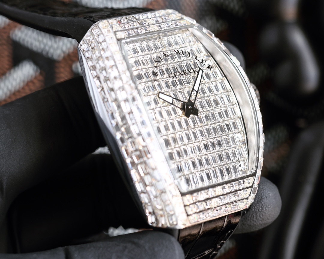 这款手表是AAAAA 1:1 质量 (非常棒). 使用了和原版一模一样的材料. 商标部分也保持了和Franck Mulle一样. 图片拍摄是实物手表拍摄, 您所收到的实物保证和我们图片一模一样.